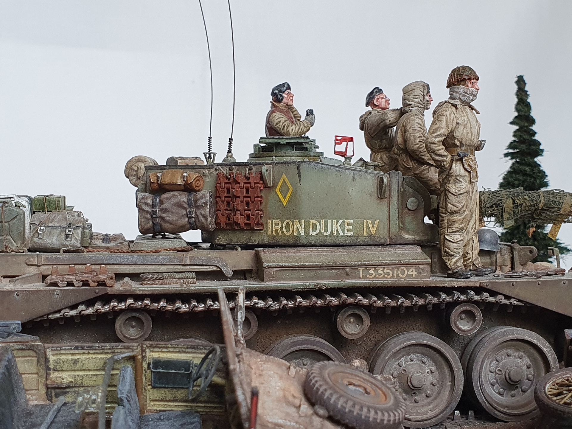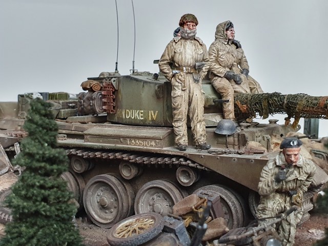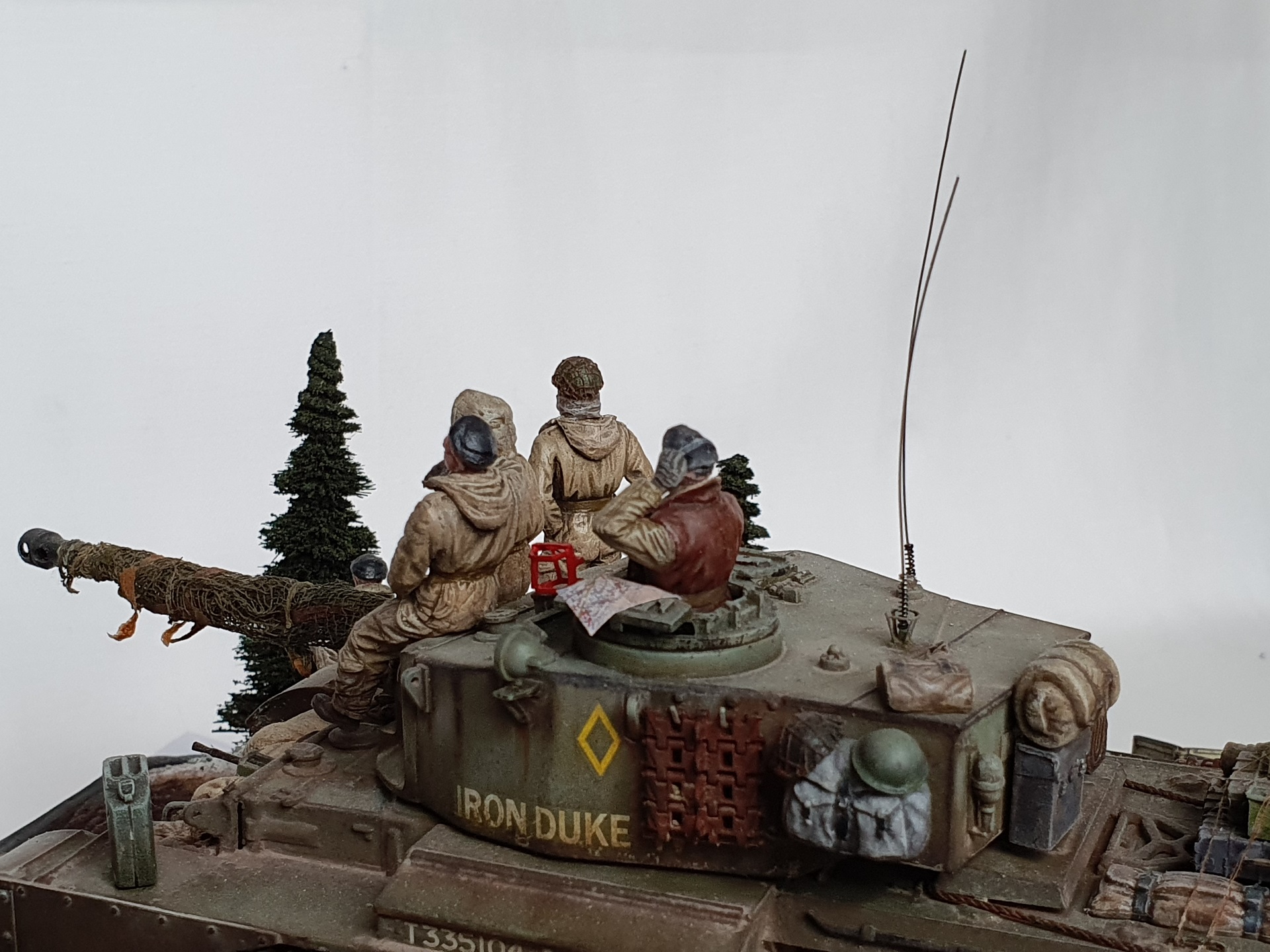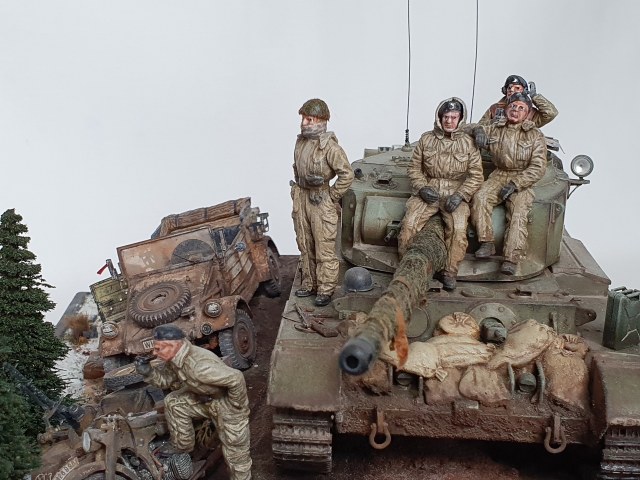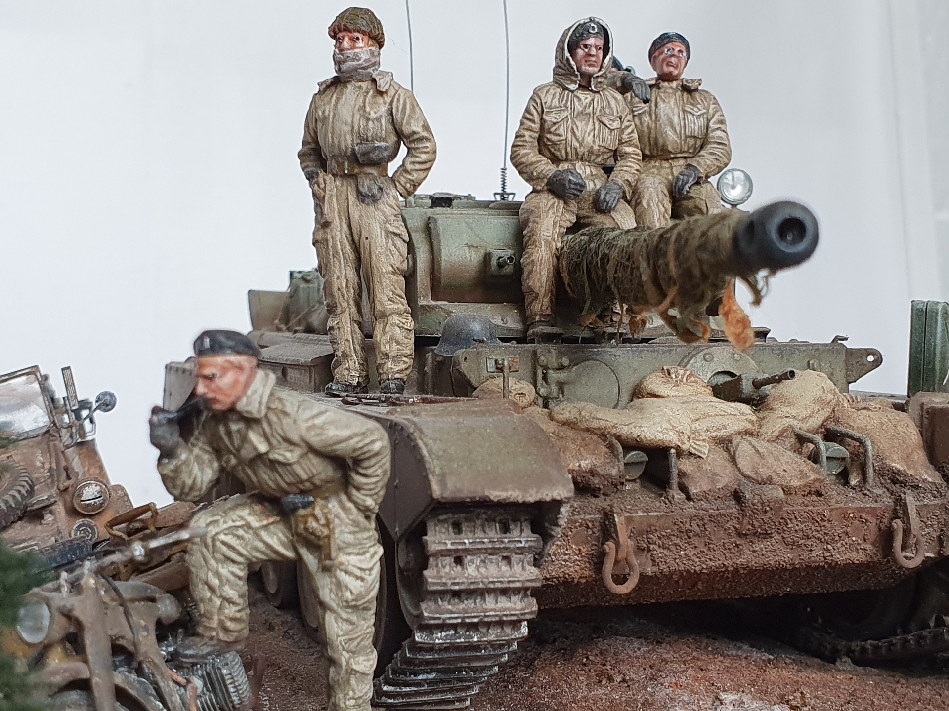 По сюжету, весна 1945 года. События происходят в Западной Европе в самом конце войны.Экипаж кометы ждет указаний от командования (за кадром немцев оформляет военная полиция) Модель Танка от Бронко, от того же производителя наборные траки (к сожалению найти чехол на маску орудия не удалось) Из дополнений ствол орудия и пулемета, а так же смоляные мешки (фирму производителя увы не помню) Кубель от Тамии, Мотоцикл от Звезды, экипаж ICM мелочевка из различных запасов.