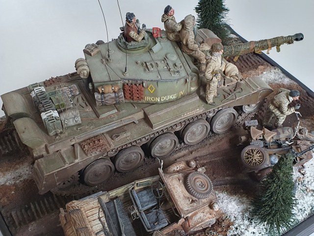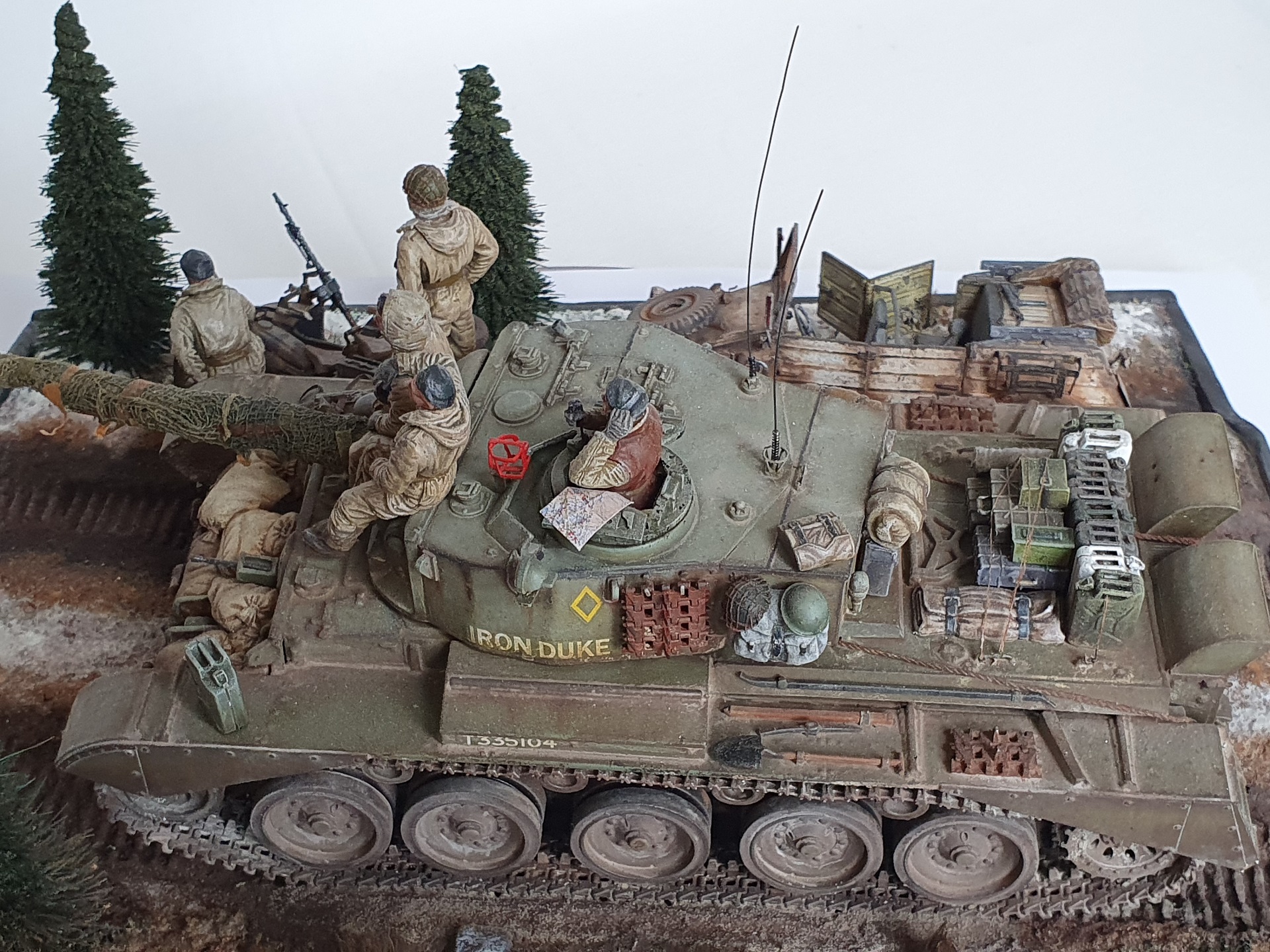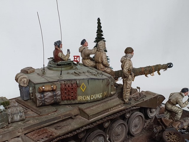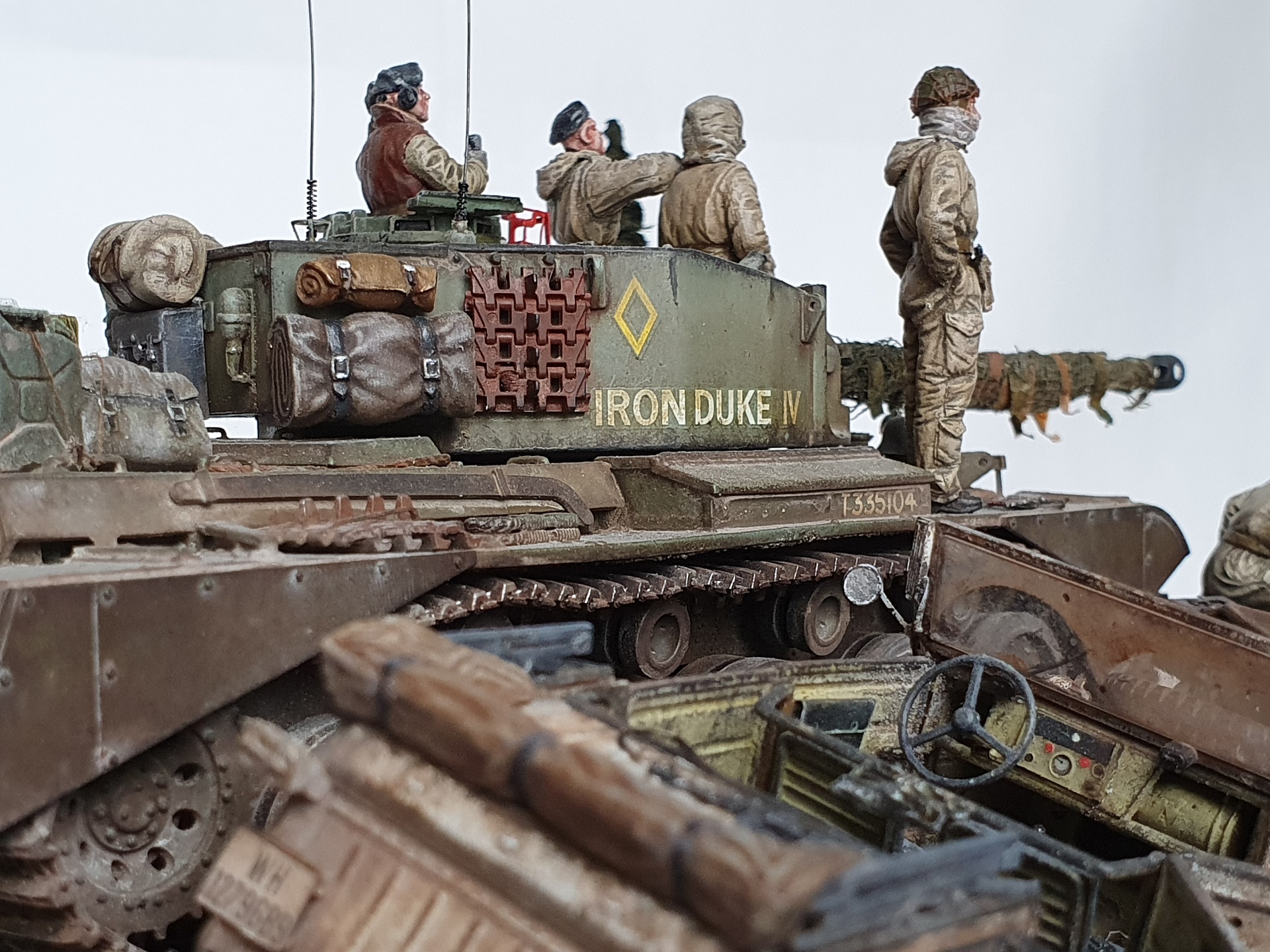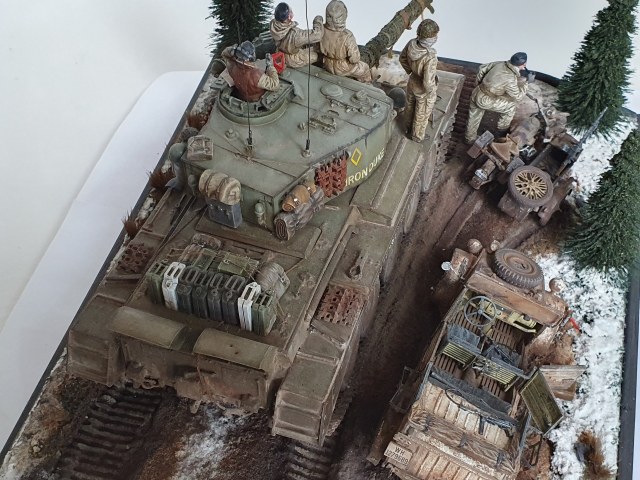 По сюжету, весна 1945 года. События происходят в Западной Европе в самом конце войны.Экипаж кометы ждет указаний от командования (за кадром немцев оформляет военная полиция) Модель Танка от Бронко, от того же производителя наборные траки (к сожалению найти чехол на маску орудия не удалось) Из дополнений ствол орудия и пулемета, а так же смоляные мешки (фирму производителя увы не помню) Кубель от Тамии, Мотоцикл от Звезды, экипаж ICM мелочевка из различных запасов.