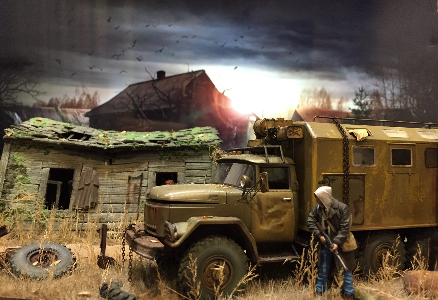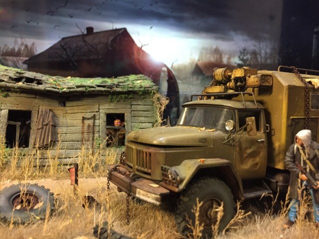 Доброго всем время суток! Предоставляю вашему вниманию новою свою диораму, на тему сталкер! Сперва у меня появилась фигурка ну сразу созрела идея сделать диорамку. Кроме зилона и фигурки остальное самодел из подручных материалов! У монстра глаза горят разными цветами ,надо только батарейку поменять. ПРИЯТНОГО ПРОСМОТРА!