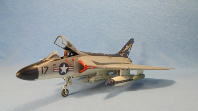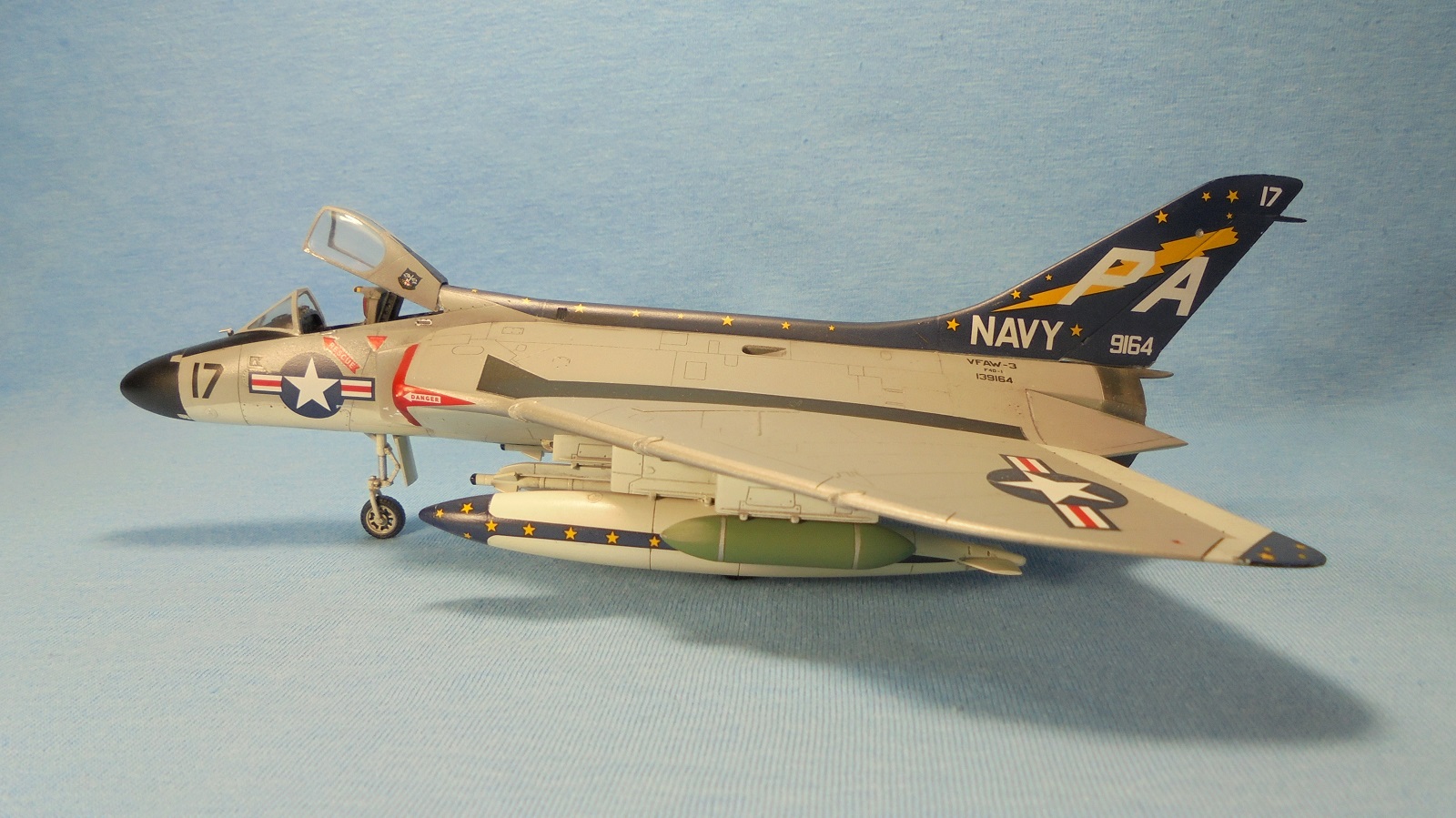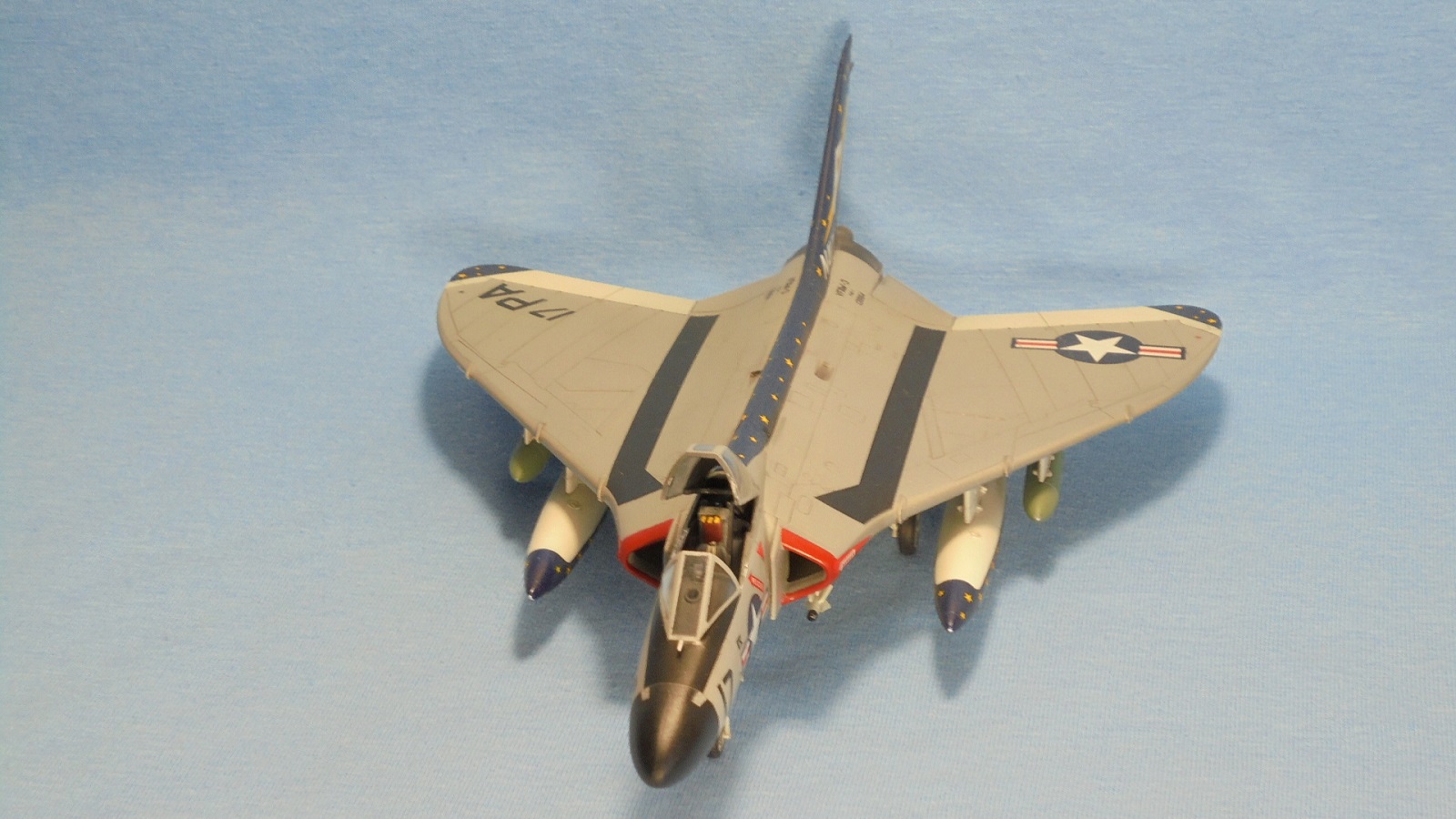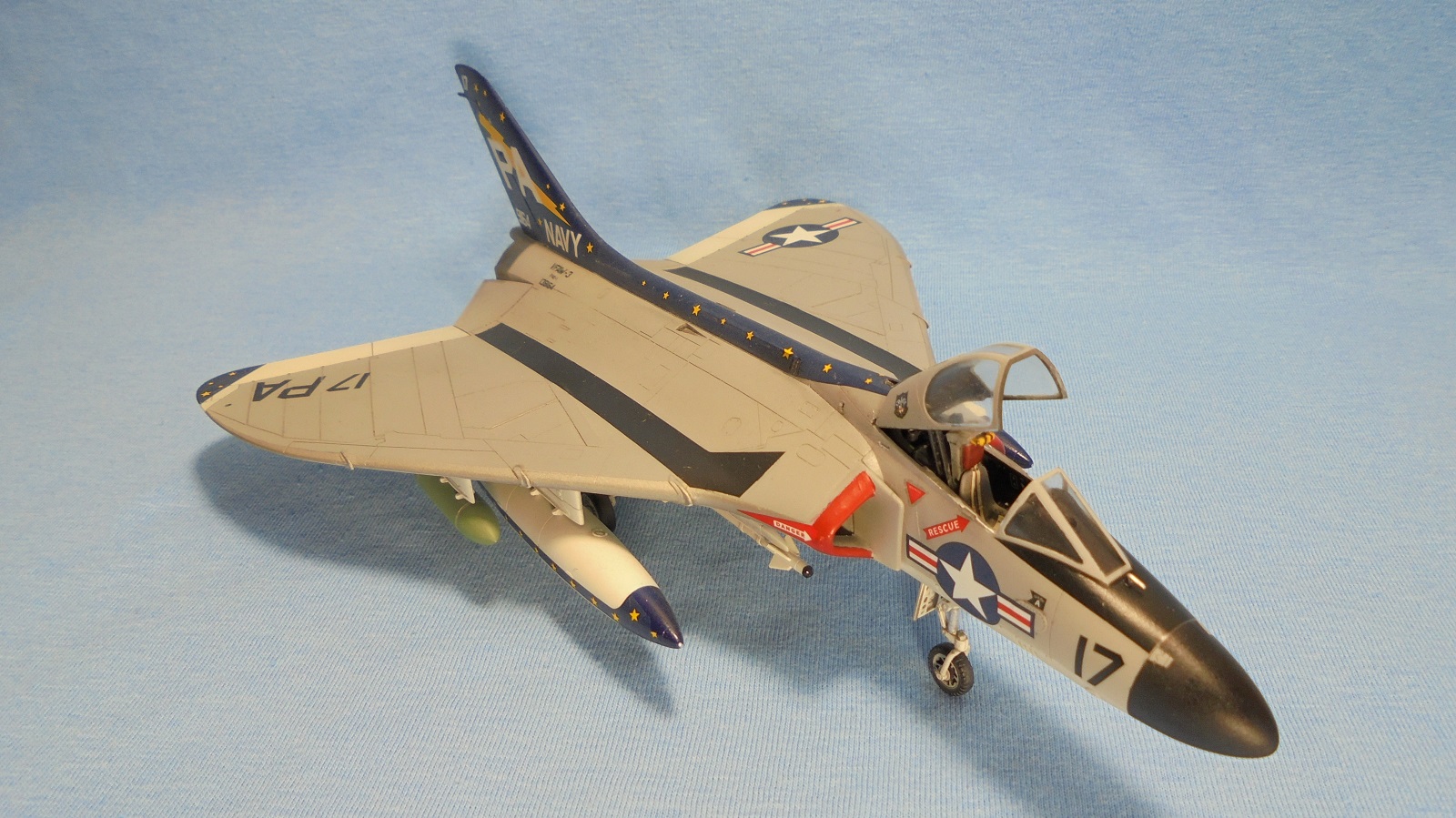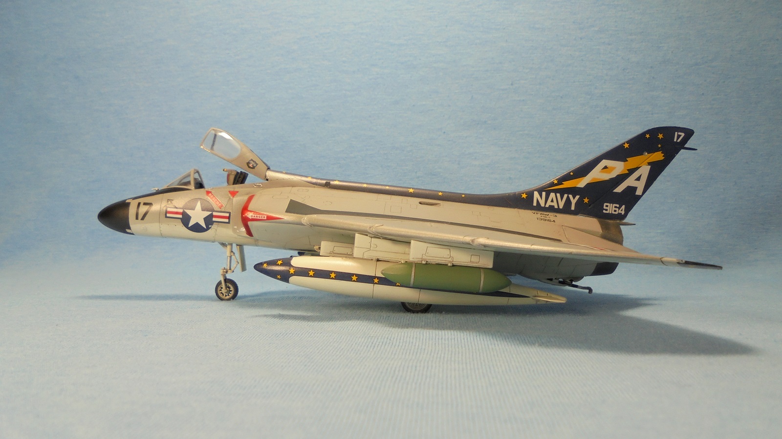 Добрый день коллеги!Представляю вам модель палубного самолёта с официальным наименованием "Скайрэй" в 1953 году начались поставки "Скайрэя" в ВМС США.Пилоты быстро адоптировались к аппарату благодаря сочетанию доведению до совершенства конструкции планера и надежности двигателя,летать на этом самолёте было легко и приятно,за что он и получил прозвище"форд".Модель собрана из коробки ,при сборки ни каких проблем просто модель выходного дня очень доволен,красил нитро красками с декой пришлось повозится! Смывка маслом..