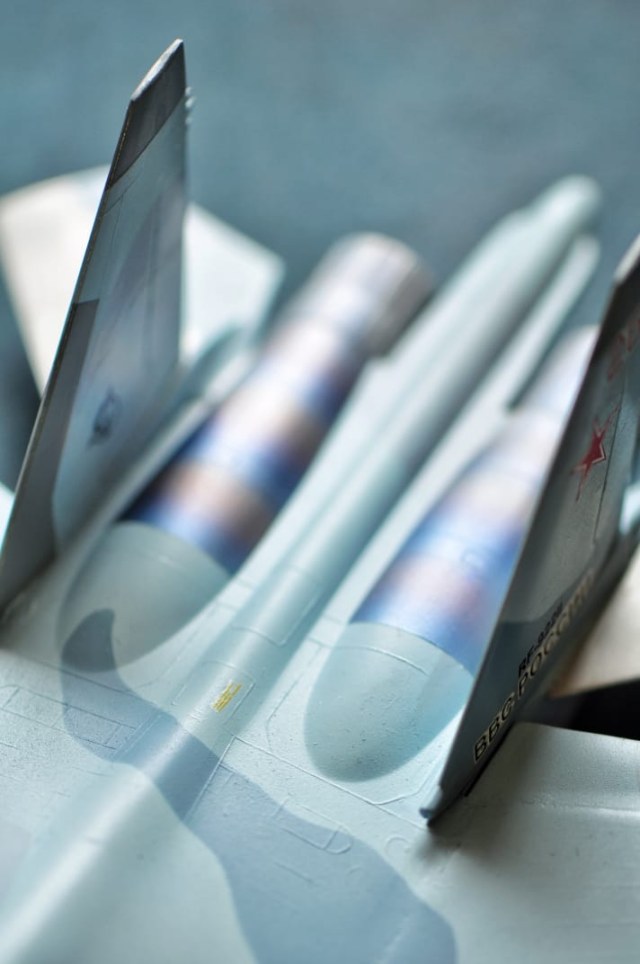 И побежалости на двигателях, хоть и сделаны, вроде, не плохо, но кажутся лишними, так как всё остальное выглядит просто покрашенной пластмассовой игрушкой.