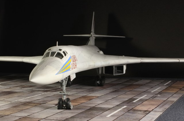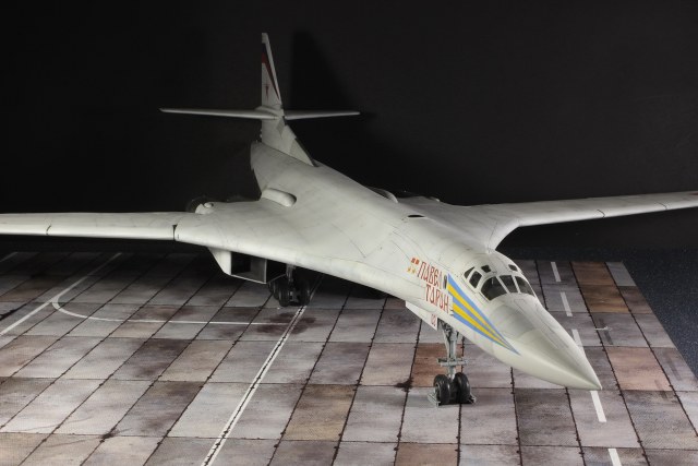 Сборка этой модели, не скажу, что была гладкой. Во сне полетать не удалось, но снится мне начал(Ту-160)). Достался он мне в немного собранном виде, были собраны намертво крылья, соответственно механизацию пришлось оставить, как есть (а хотелось распушить немного), стояла задача сделать изменяемую геометрию, по этому поворотные гребни сделал сьемными, с возможностью фиксации в разных положениях. Остальные детали фюзеляжа и других частей собирались не очень хорошо, не обошлось без шпатлевки и восстановления расшивки в некоторых местах( хотя признаю, что не везде мне это удалось..) Покраска и грунтовка требовала немалого количества химии, а в связи с тем, что сделал легенький предшейд, белой краски ушло больше, чем планировалось. В результате, и без того неглубокая расшивка стала еще менее глубокой, по этому пришлось рисовать во многих местах карандашом. Декаль бегемотовская, возможно где то мною допущены некоторые ошибки в нанесении, но старался применять фото реального борта.