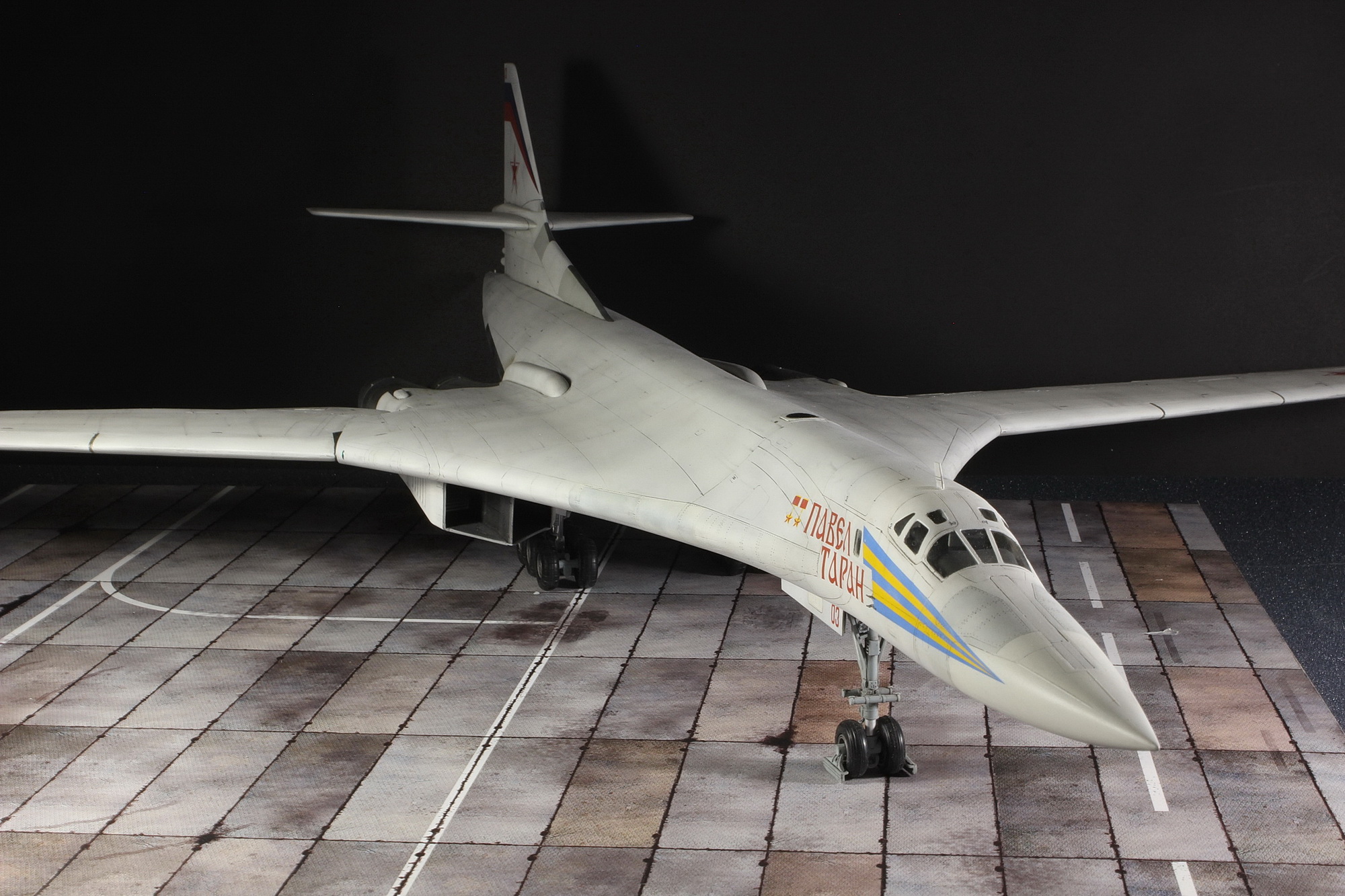 Доброго времени суток, коллеги! Хочу представить на ваш суд свою крайнюю работу, самый самый из стратегов. Ту-160, что носит имя Павла Андреевича Тарана, героя Советского Союза, генерал-лейтенанта авиации. Этот борт примечателен еще и тем, что в 2005 году его посетил, и даже совершил полет в составе группы нескольких Ту-160 наш верховный главнокомандующий. Вот некоторые цитаты из тогдашних новостей: