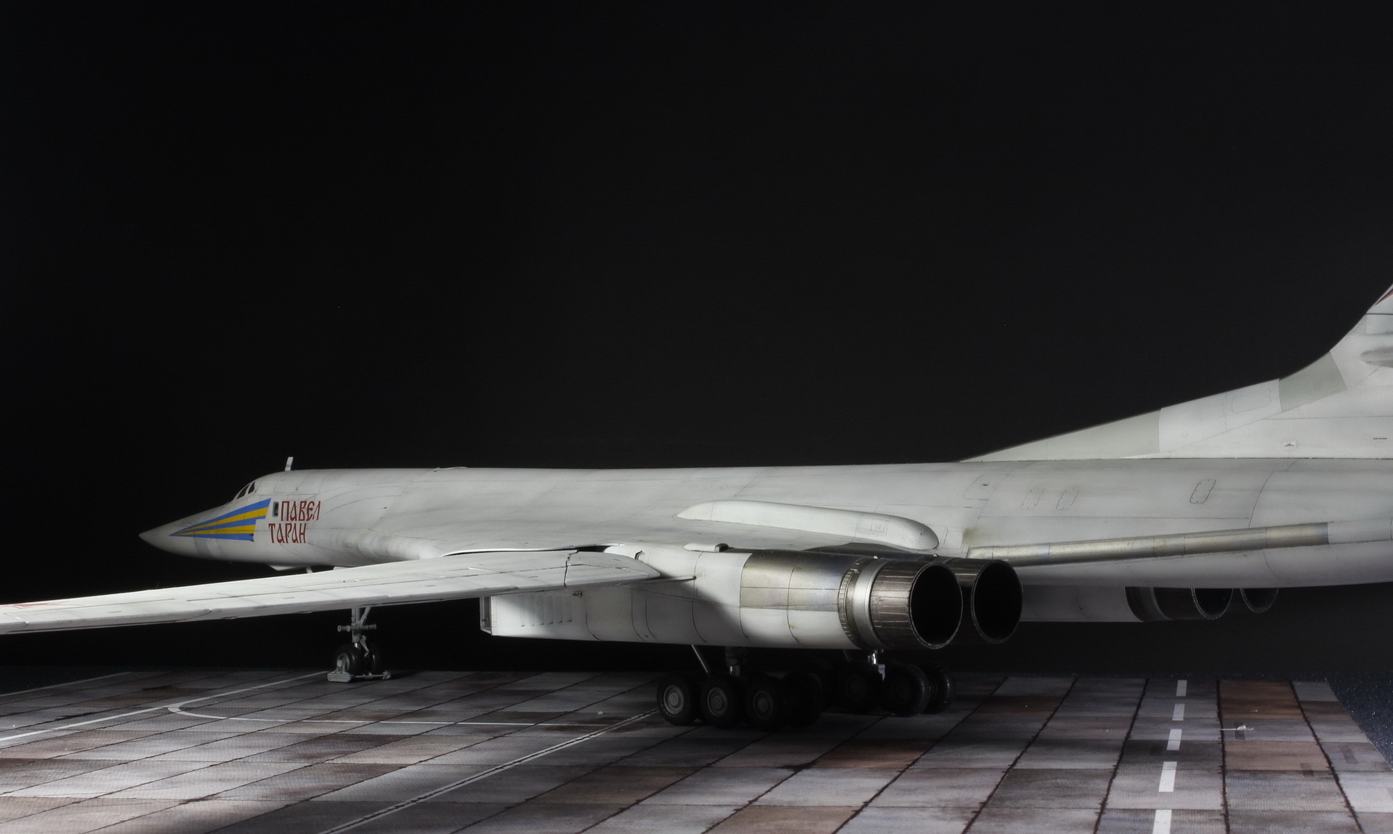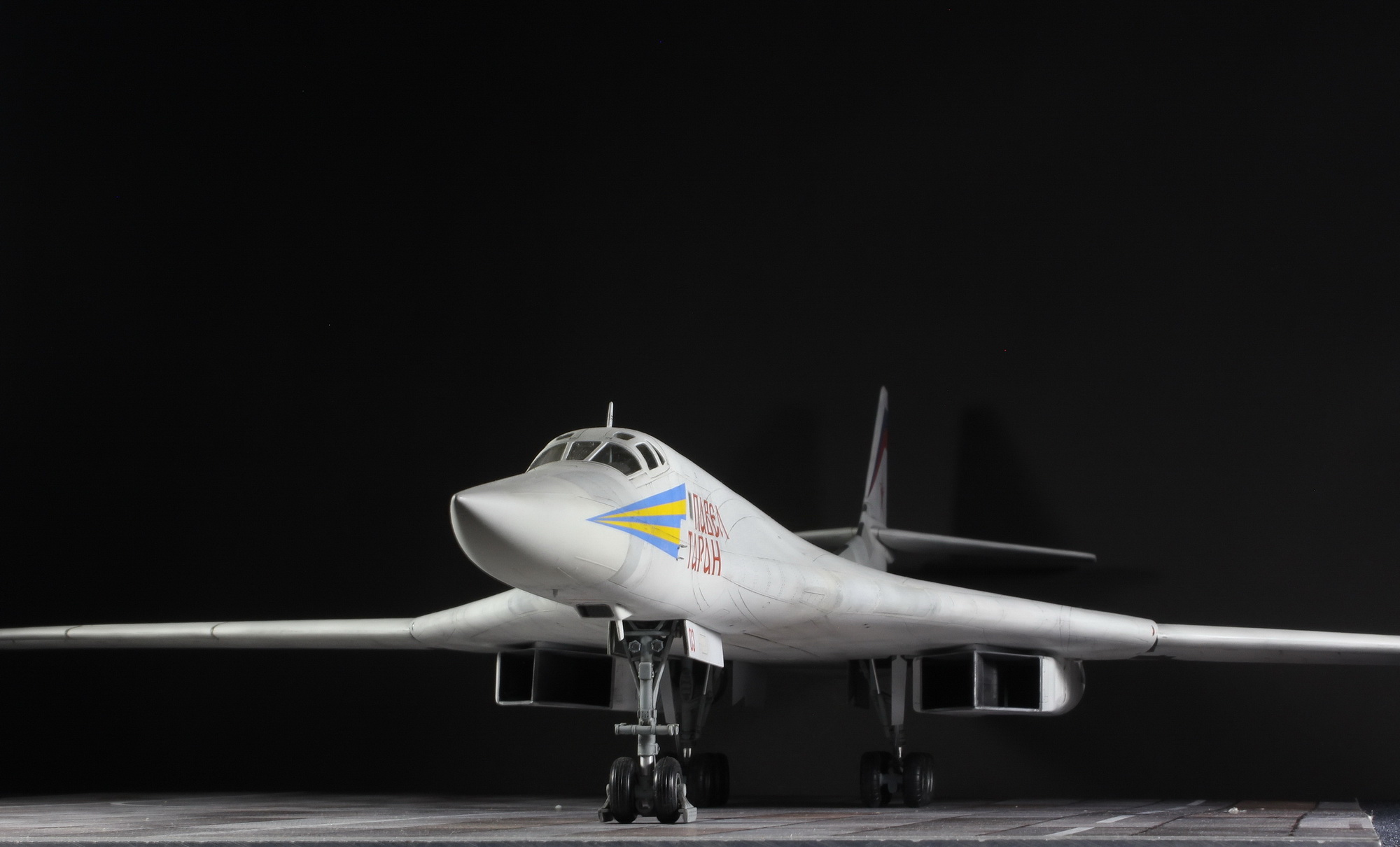 Смотрится неплохо, но есть ряд существенных НО: колеса надо выкинуть - они как от игрушечного трактора. В смоле их продает Colibri decals, он же Игорь Злобин. Он заказывал 3D печать комплекта колес на Ту-160 и сейчас их продает. Также очень уныло смотрятся сопла - Amigo models их выпустили, ну и толстые задние кромки стабилизаторов и киля бросаются в глаза.