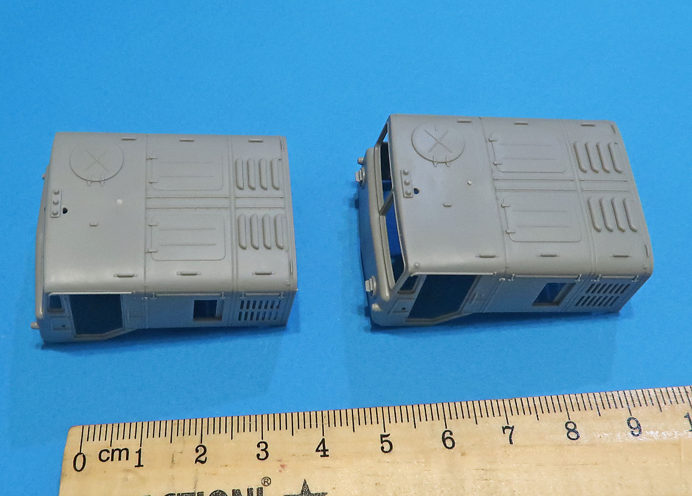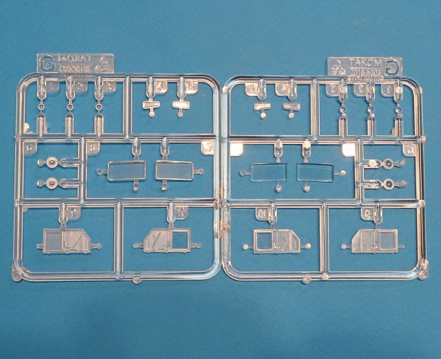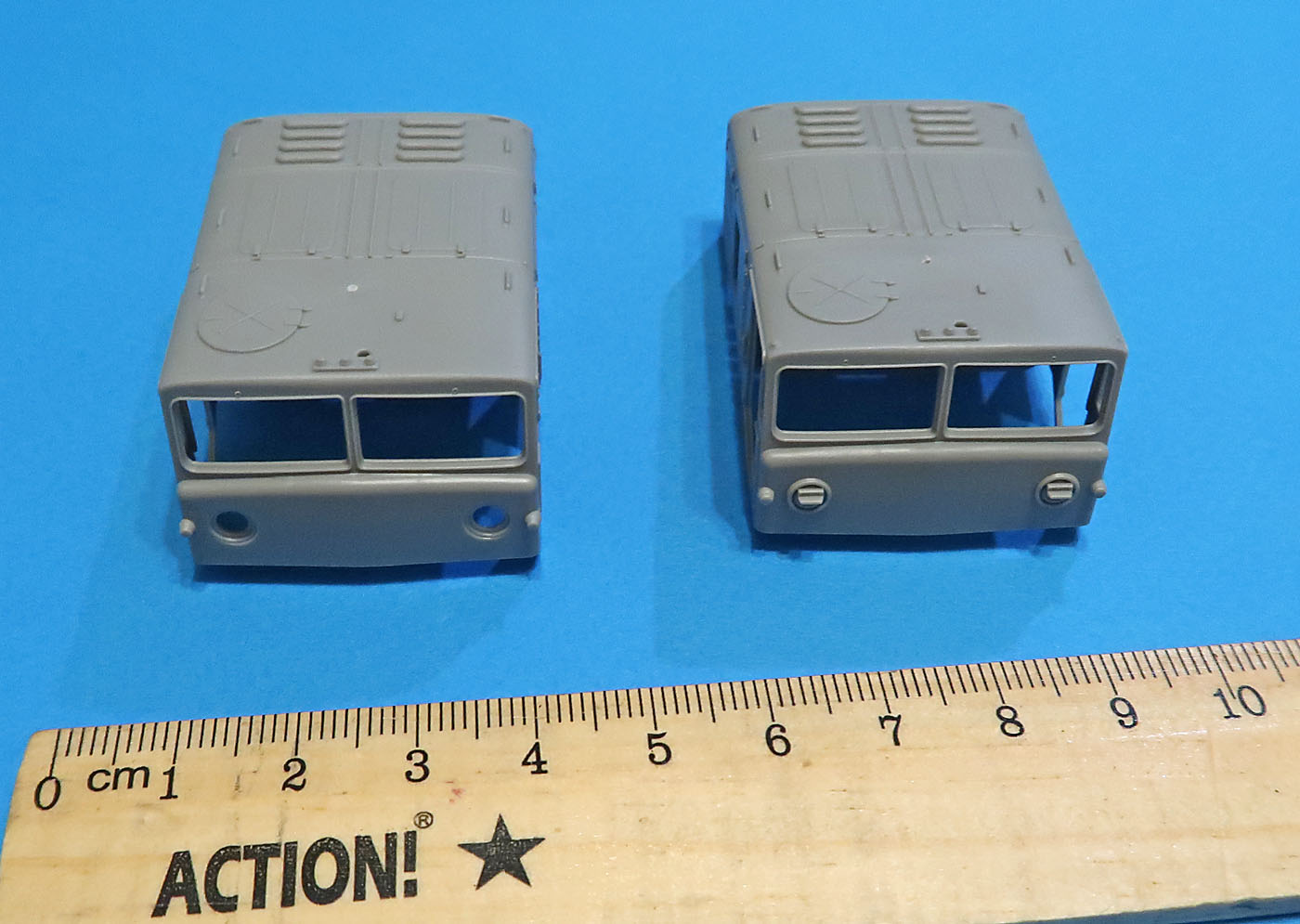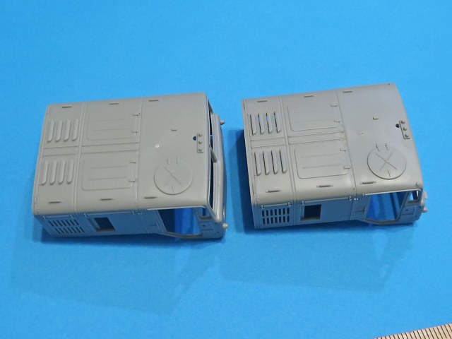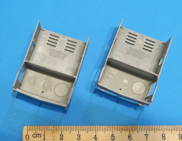 Выполнены цельнолитыми в многоразъемной форме. Отличаются кажется только фарами (точнее козырькамит на них).