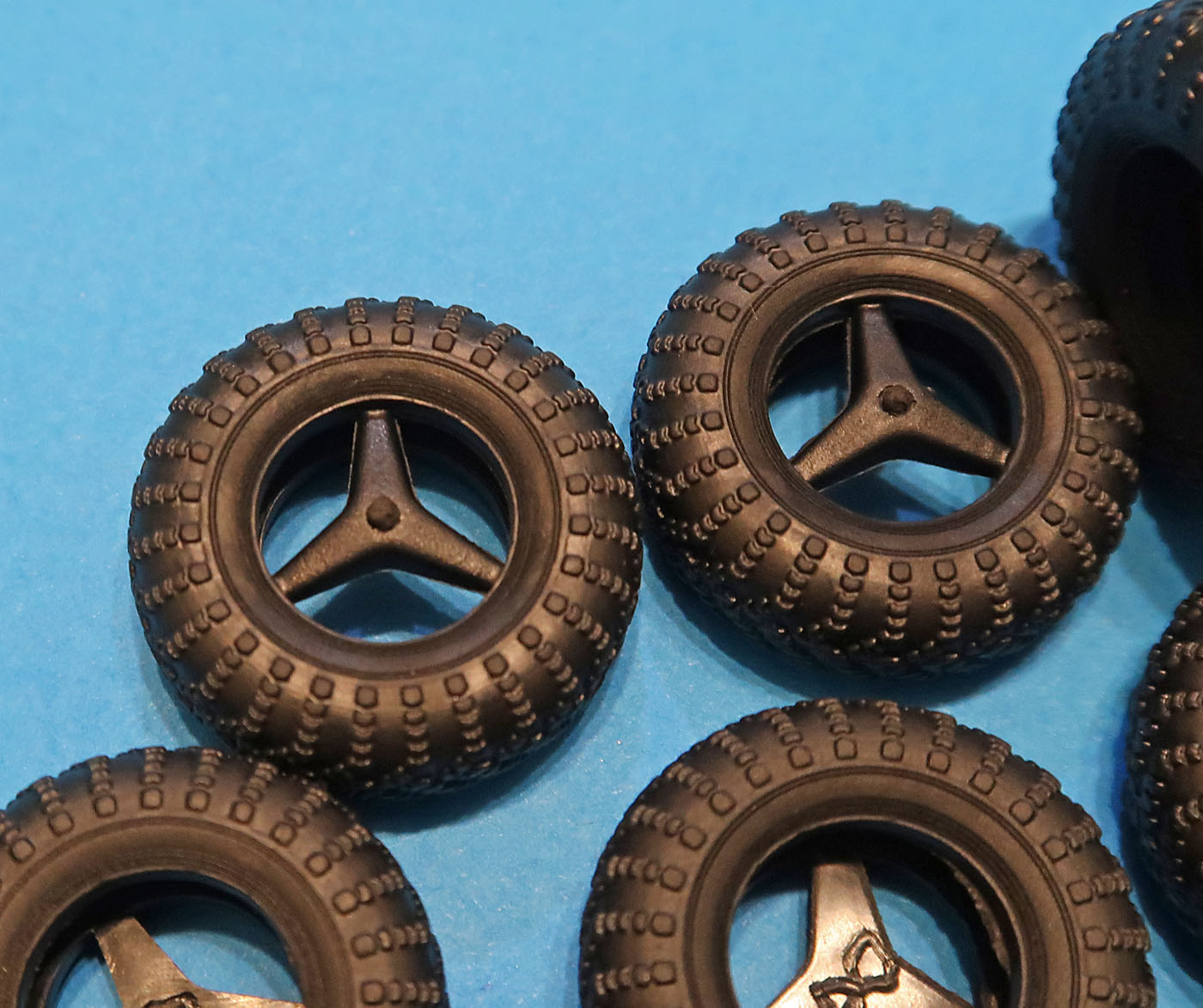 Отлиты не побоюсь этого слова великолепно! Полноценный четкий протектор с фактурными ламелями, боковины проработаны. Мизерный стык пресс-форм в глубине не помешает совершенно.