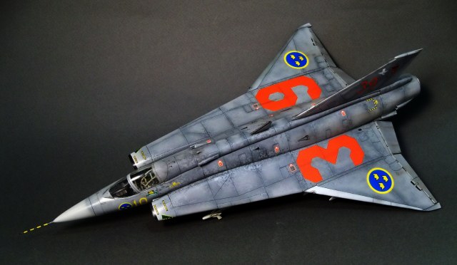 Хорошая работа! По прешейдингу согласен, есть легкий перебор, ИМХО. Также некоторый диссонанс возникает от очень ярких декалей и загрязненностью верхней части самолета.