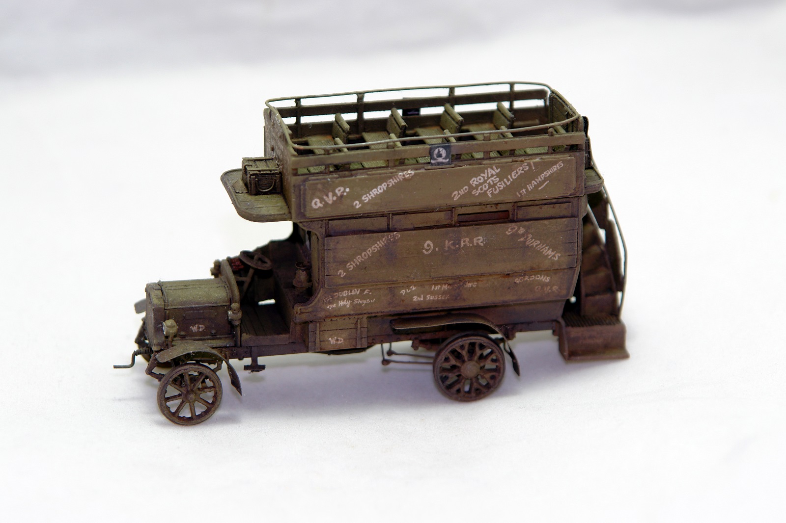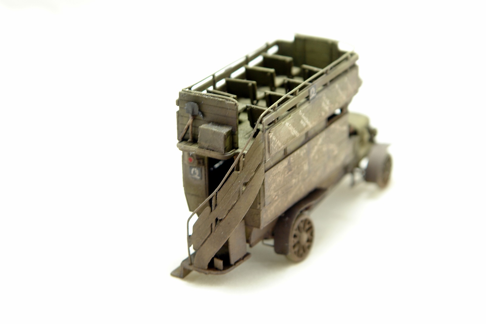 На этот раз предлагаю вам посмотреть на модель автобуса LGOC тип Б. Прототип использовался для перевозки личного состава Британских сил во Франции вовремя ПМВ. Автобусы были реквизированы в Лондонской городской компании Омнибусов. Так как стекла разбивались оружием и амуницией их вскоре заменили фанерой. Так же использовался для перевозки голубей военной голубиной почты. Голубые тут не причем. (Организация, запрещенная в РФ). Автобус так же примечателен тем, что такие же, но 2 двигателя использовался на первом «скоростном» танке Уипетт. А именно АЕГ Тейлор, вследствие чего у нас в РККА трофейные Борзые назывались по имени двигателя Тейлор.