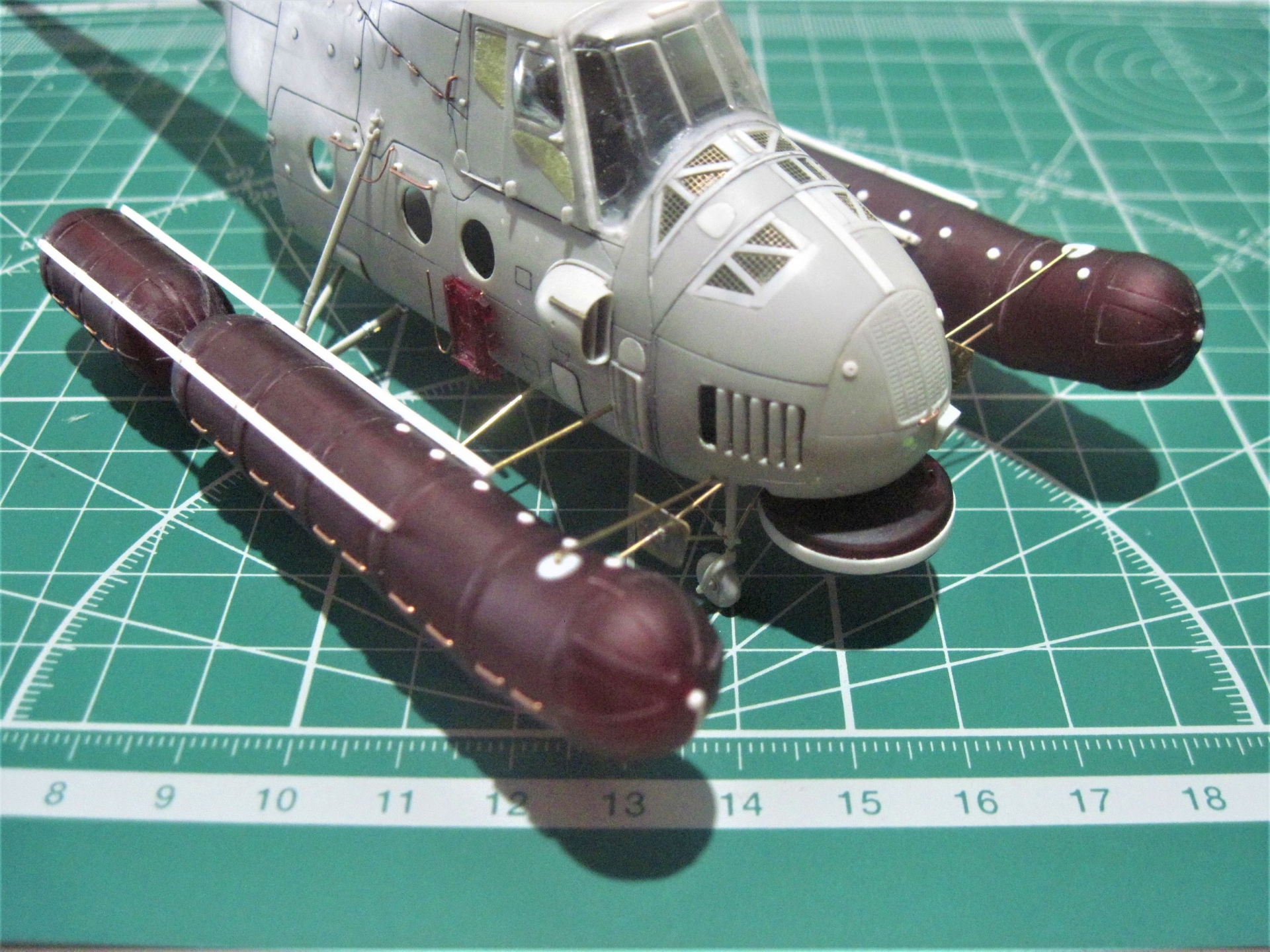 По бортам смонтировали кассетный держатель КД3-353 для световых маяков и авиабомб-красителей водной поверхности.