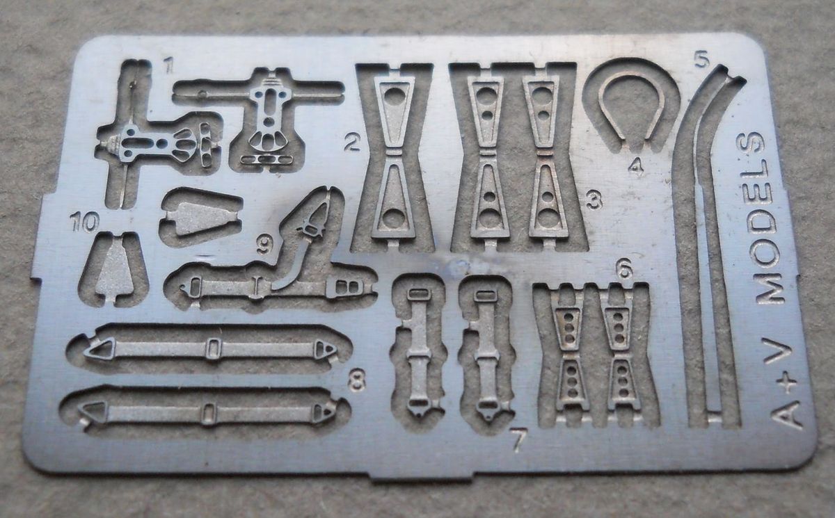 Модель из смолы от фирмы A+V models в масштабе 1/72 упакована в картонную коробку с верхним открытием. Литьё посредственного качества – присутствуют мелкие дефекты и плохо выполнены мелкие детали. Расшивка выглядит грубовато. Проработка интерьера минимальна. Ваку-фонарь смотрится неплохо. Присутствуют детали из белого металла, плата фототравления и несколько кусков проволоки. Декали немного пожелтели от времени и, возможно, потребуют замены. Инструкция минималистична.