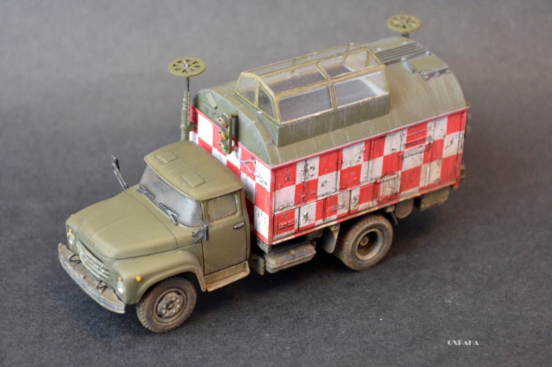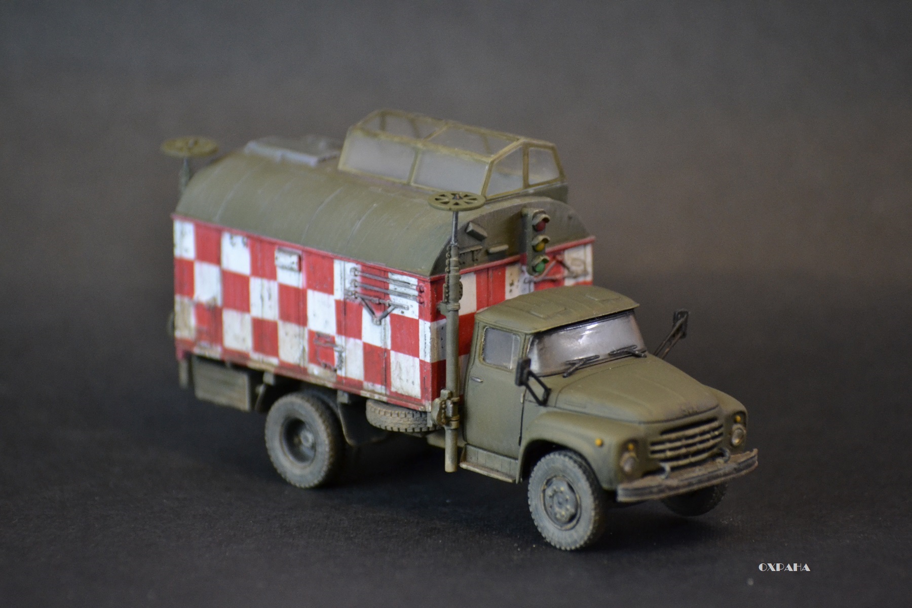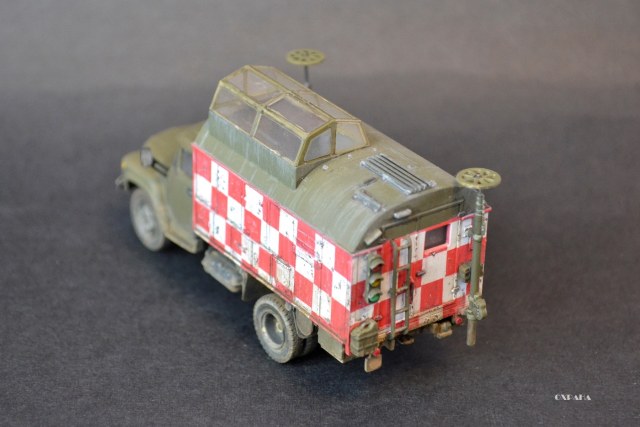На самом деле есть ошибки, но не критические - на поворотниках забыл обозначить черным цветом уплотнитель, задний светофор закреплён не ровно (заметил когда фотографировал, чтоб отдать модель), усадка супер клея привела к перекосу антен, нет гос номеров или борт номеров. Вот как-то так :-)