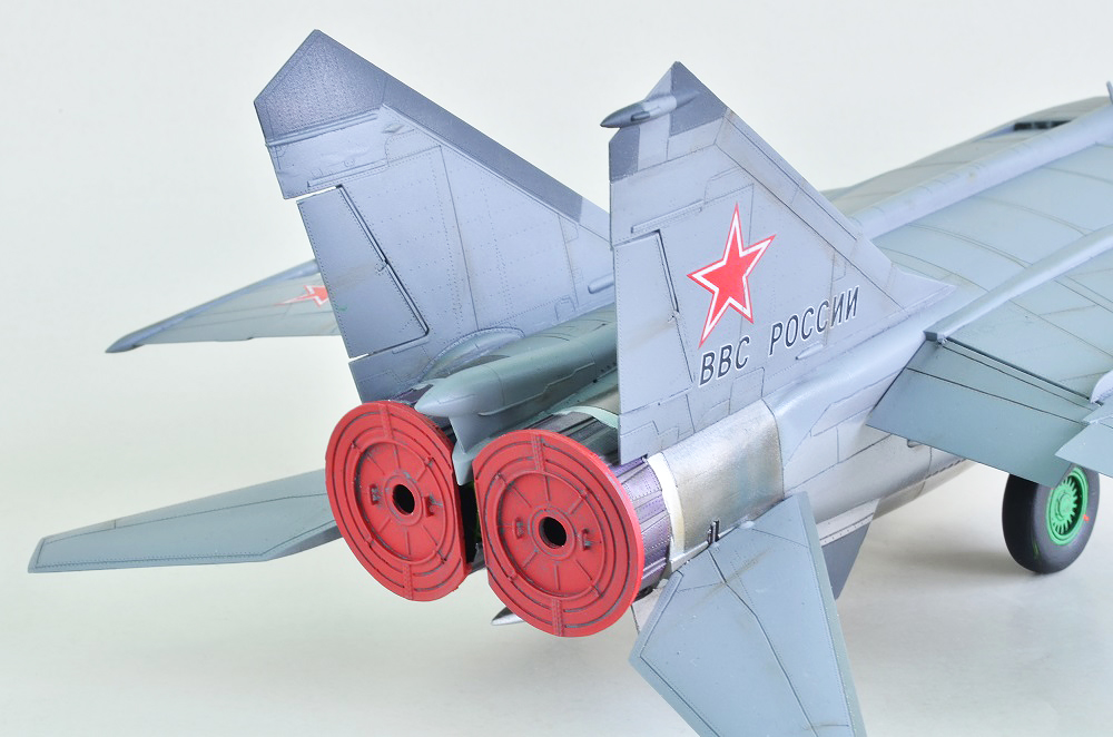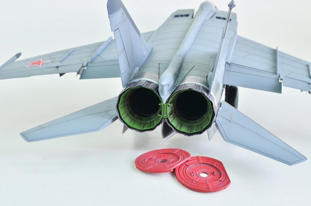 Сопла и мотогондолы окрашены при помощи сцеженной краски из баллона Тамии AS-12 Bare Metal Silver тонировочных пигментов АКАН и пудреницей от ТАМИИ.