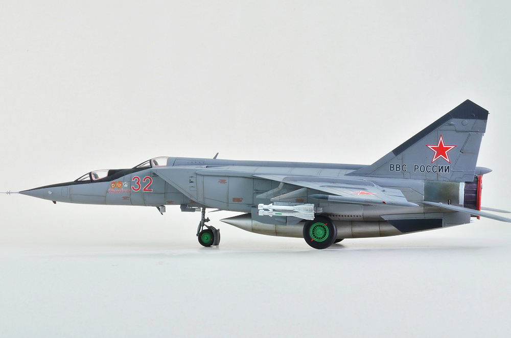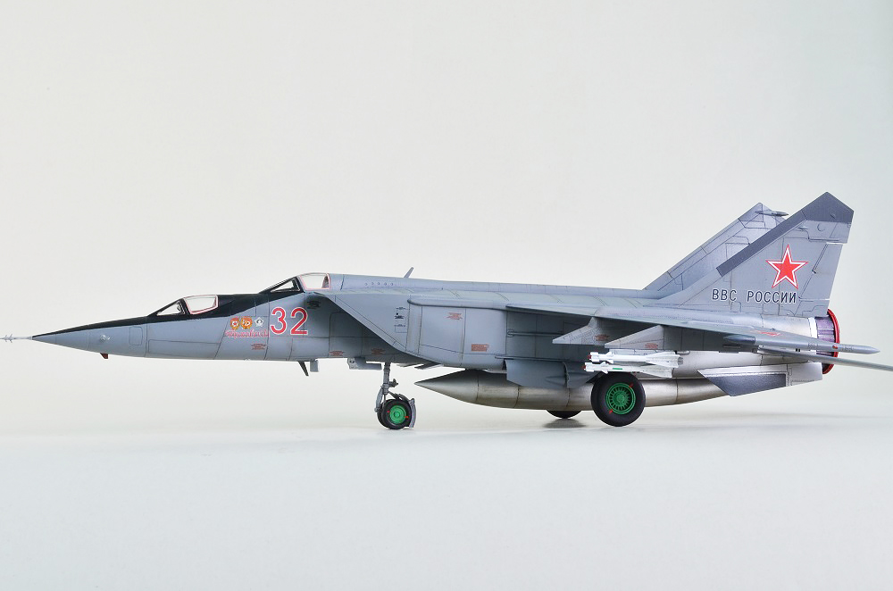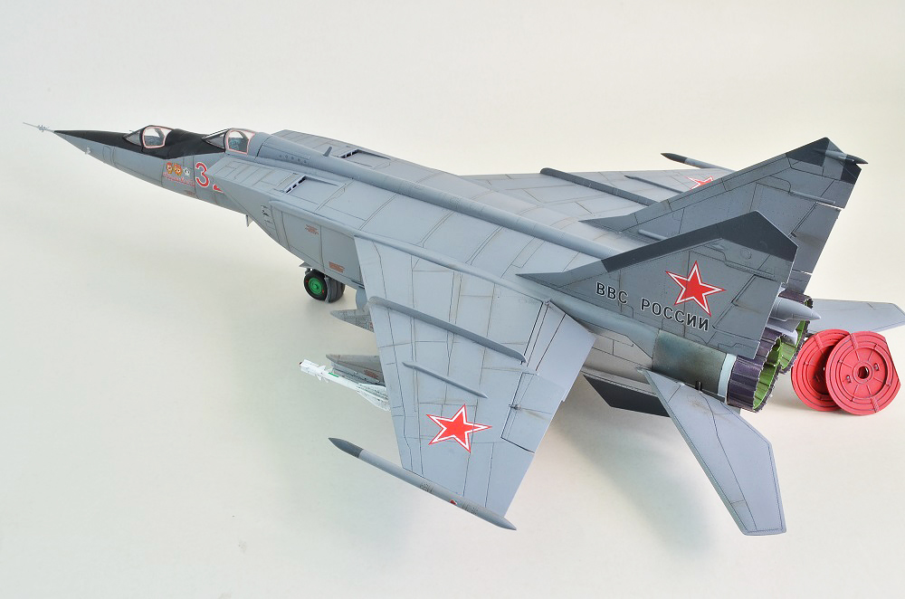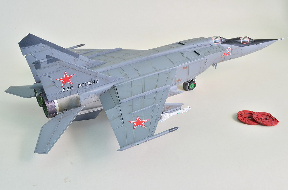 На фоне общих восторженных отзывов напишу то, что я увидел. Работы было проделано много, но есть просчеты по матчасти. Неверно подобрана краска для сопел, контейнер тормозного парашюта нуждается в доработке, не хватает более скрупулезной проработки ниш шасси, левое колесо поставлено неровно, небрежно приклеены пилоны, решетки воздухозаборников установлены неверно. Модель смотрится максимум на 72 масштаб, уровень проработки слабый. Не хочу обижать автора, но это не лучшая его модель.