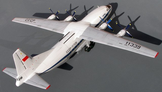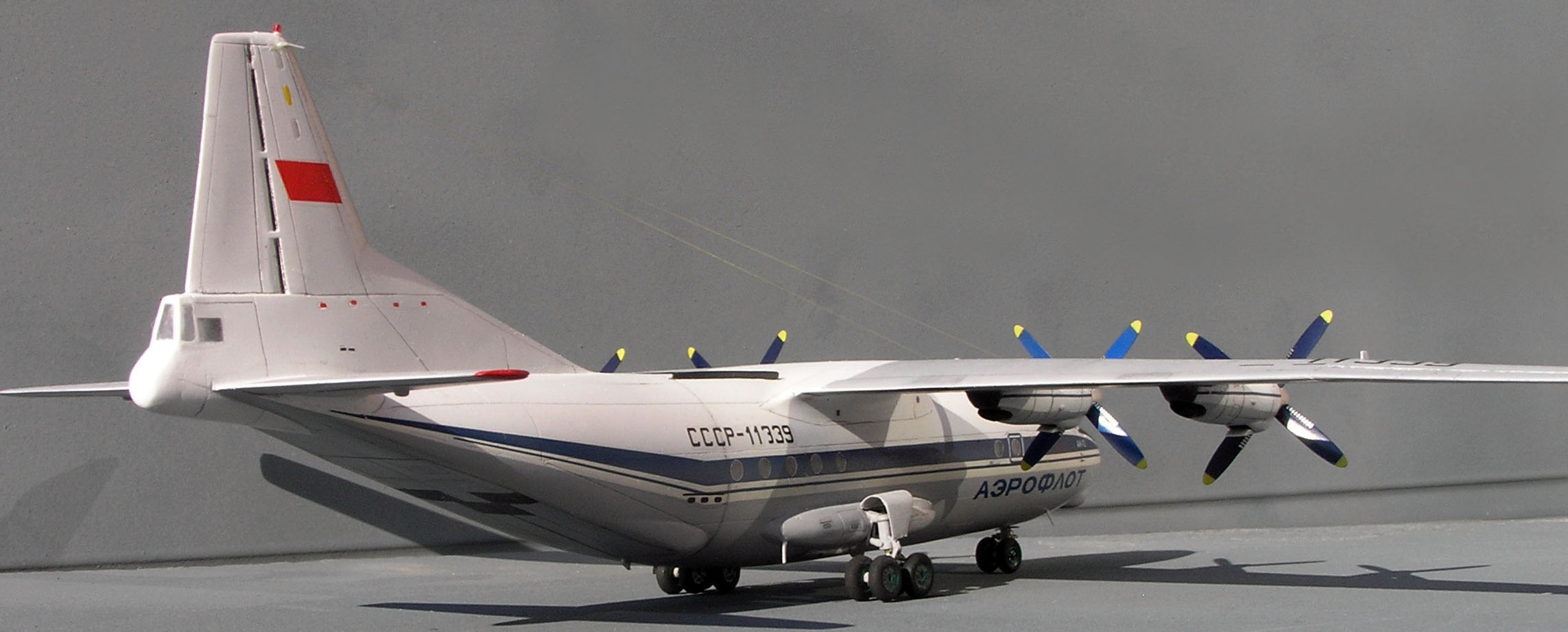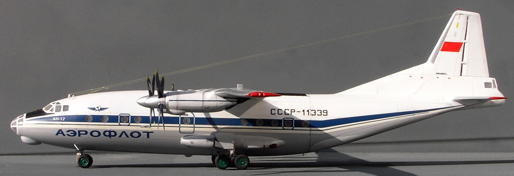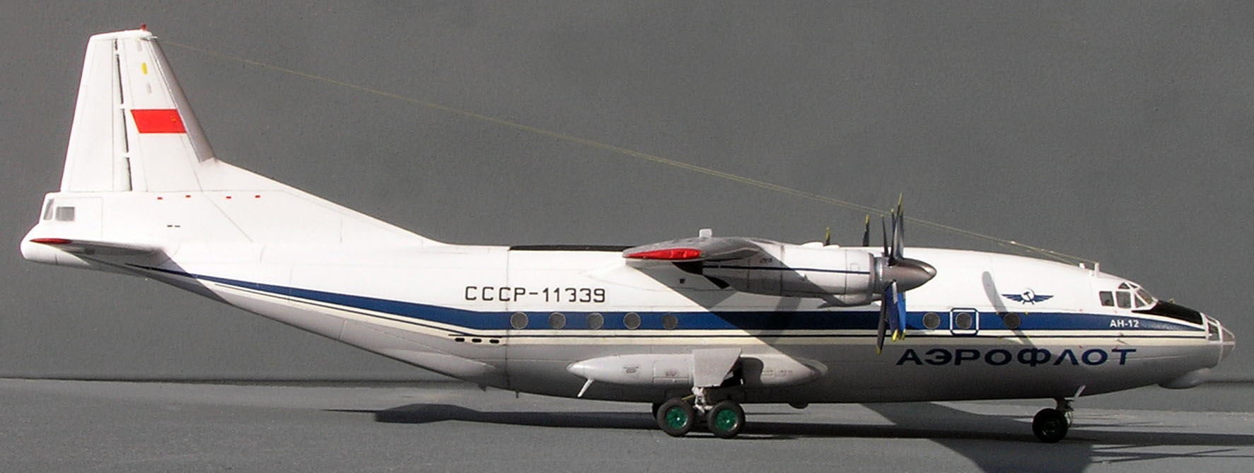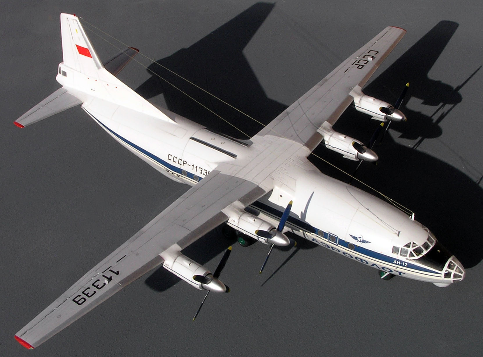 Ан-12 турбовинтовой транспортный самолет, прежде всего, военный, но также использовался и для гражданских транспортных перевозок. У нас, в Таганроге, они начали появляться в конце 80-х годов, когда перебазировался полк ВТА. Там, в основном, были Ил-76, но также появлялись и Ан-12, и Ан-22. Проезжая на дачу, дорога проходила мимо аэродрома, я часто видел эти самолеты и мне хотелось сделать их модели.