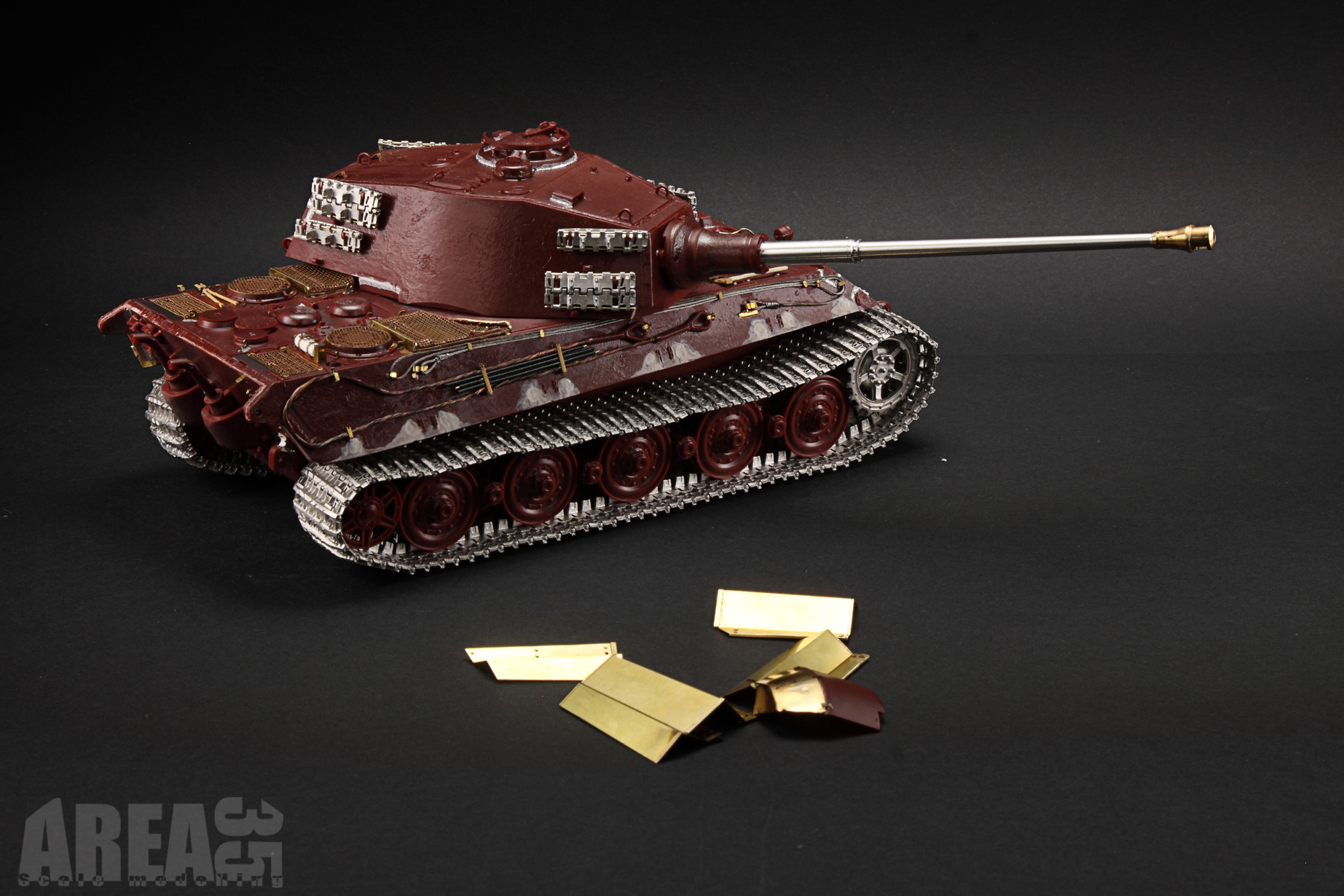 Из допов, травление, точенный ствол пушки и всех пулеметов, ручки инструмента деревянные сделал, фриул траки позднего тигра, тросы из провода (не нравятся), фендеры все на магнитах можно играться снимать одевать, перископы отражают красивый закат (типа))) )