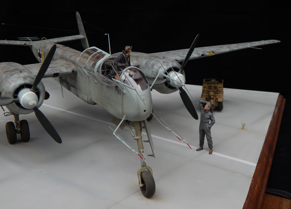 Началось все с анонса Ревелл выхода модели He-219 A-7 1/32. Конечно же, мне захотелось получить эту модель в коллекцию, коею я и заполучил году этак в 2014. Не смотря на то, что Ревелл выпускает неплохие модели, они требуют хотя бы минимума афтермаркета. И, с этой моделью, приобретение различных дополнений стало у меня нарастать по возрастающей. Для начала я приобрел ремни от HGW, затем новые сидения экипажа от CMK, набор фототравления BiEd и смоляные шасси BigSin, точеные антенны локатора от Profimodel. Так же было решено приобрести точеные стволы пушек, чтоб не зияли пустотой отверстия в корне крыла и подфюзеляжной пушечной установке. Долго думал о том – стоит ли делать двигатели раскапотированными. Но тут мне помогли два события – первое, это то, что вышел смоляной набор от Barracudaс открытыми створками юбки радиаторов, а так же набор пилотов от SwS (она же Зокей-Мура). Именно два последних дополнения помогли «сложить» картинку того, что я хотел увидеть на выходе: Истребитель после вылета, с покидающим машину экипажем и техником на земле.