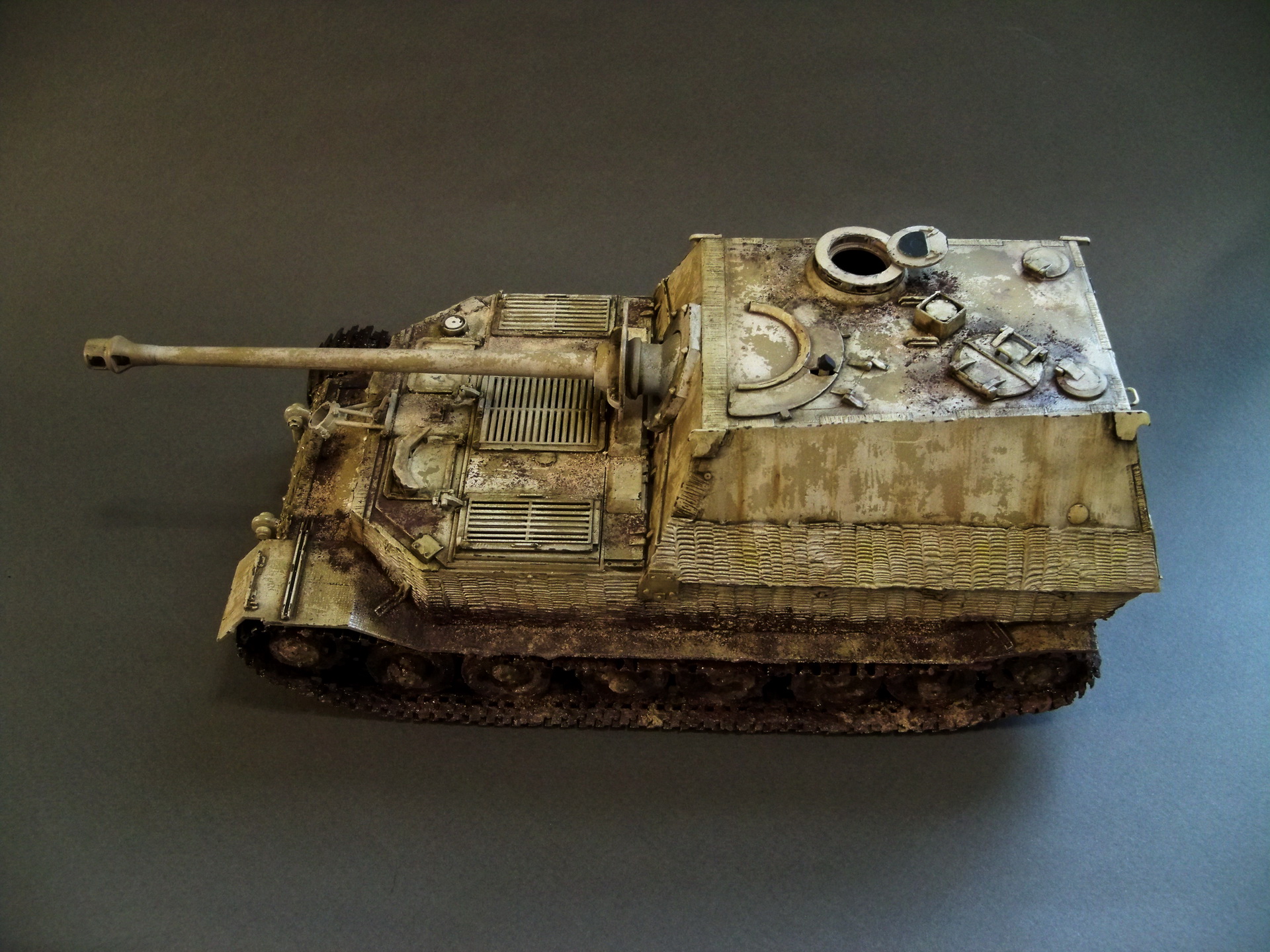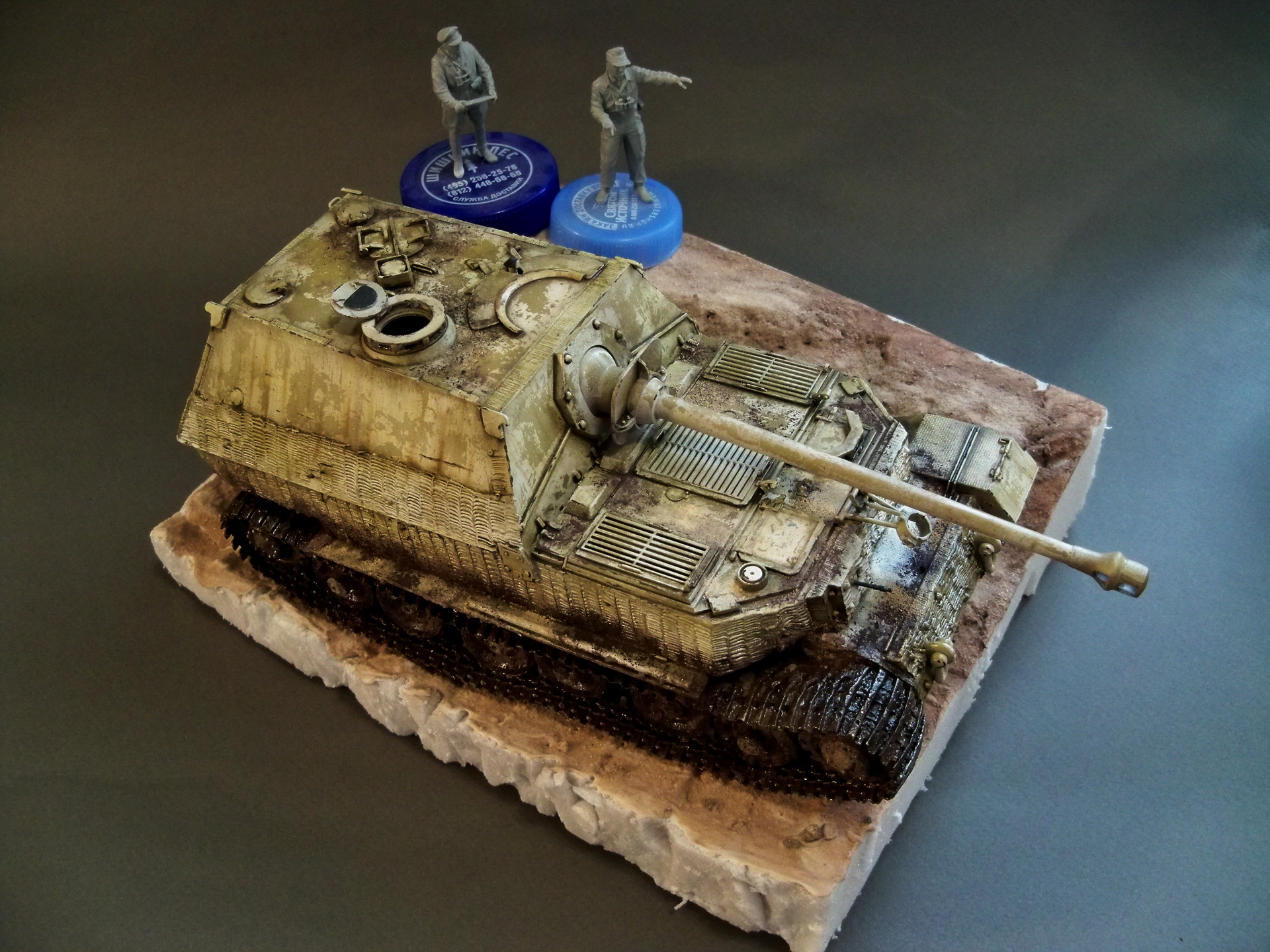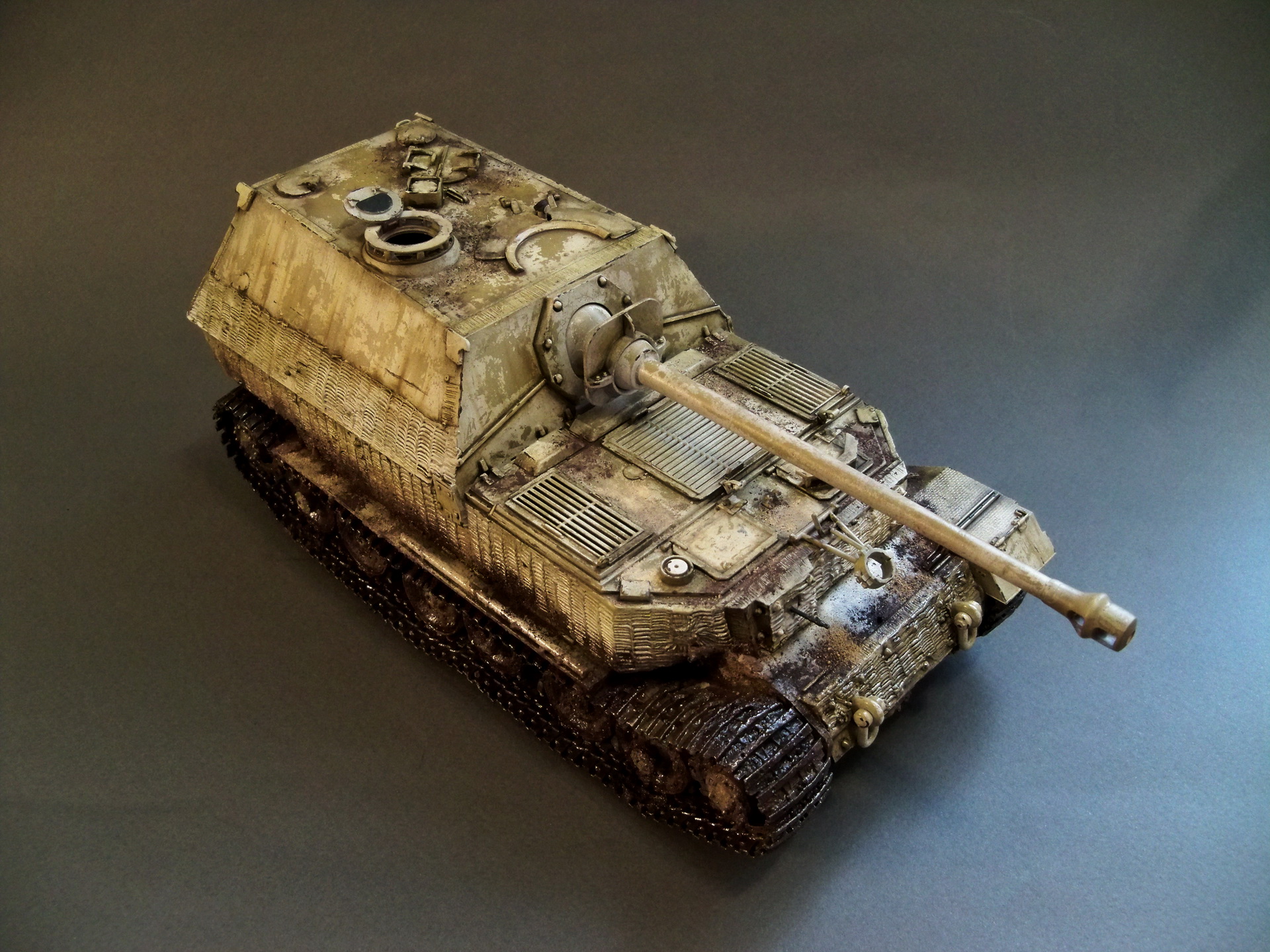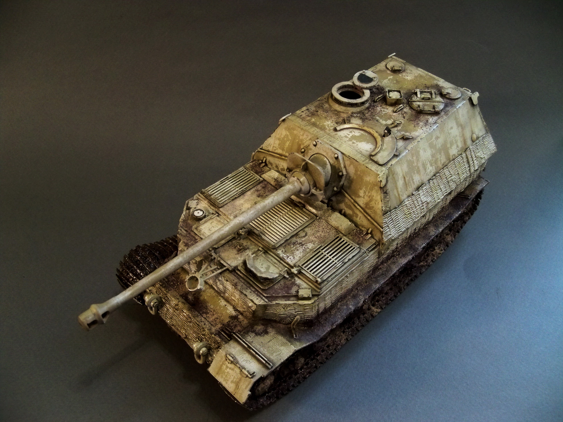 Модель без привязки ,просто элефант ,просто собран для отдыха :) Была задача попробовать сделать очень грязную зимнюю модель .Из дополнений только траки от хобби босс.В дальнейшем модель обзаведется подставкой ,пока готова только заготовка .