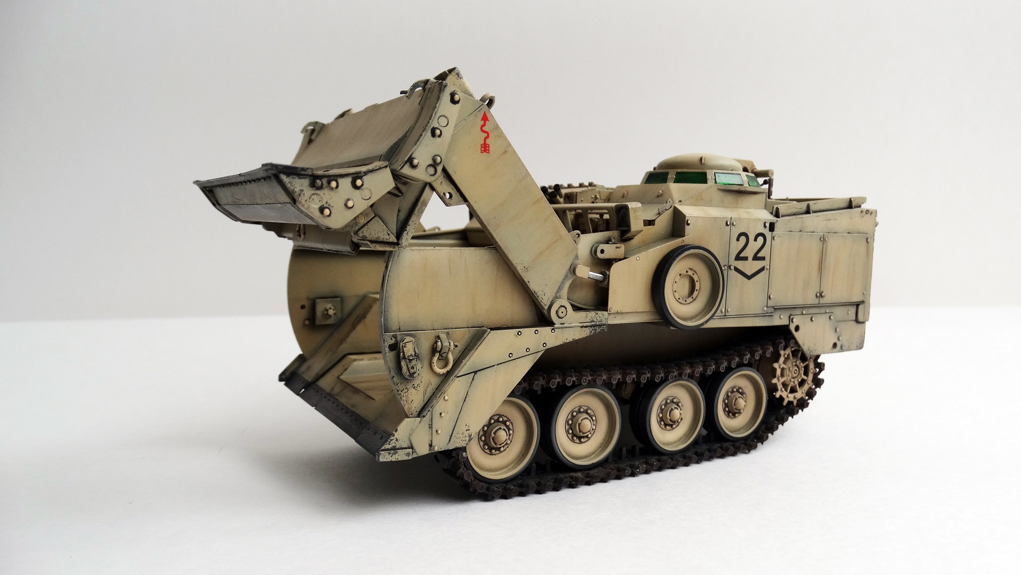 О модели. Модель от фирмы "TAKOM". Сборка "изкоробчатая" особых проблем не составила. Собирал методом подсборок. Особое внимание хочу обратить на тот момент, что в инструкции траки собираются на "щелчок", но эта система оказалась ненадежной, практически сразу траки начали разваливаться, так, что их пришлось попросту фиксировать жестко.