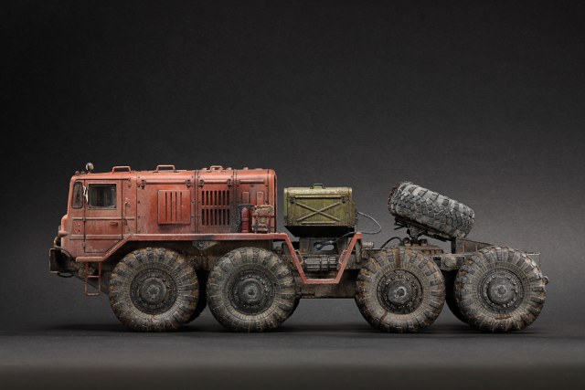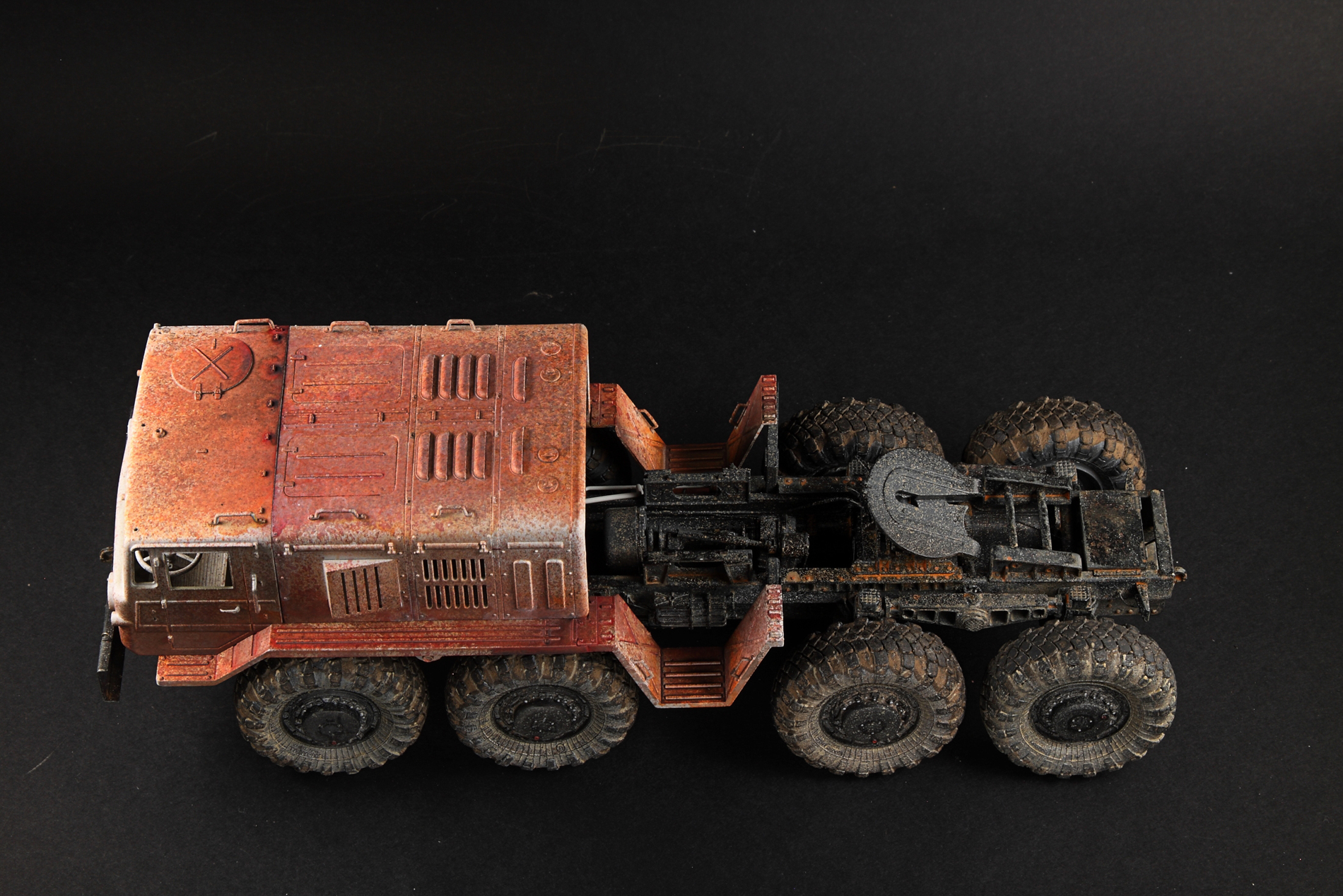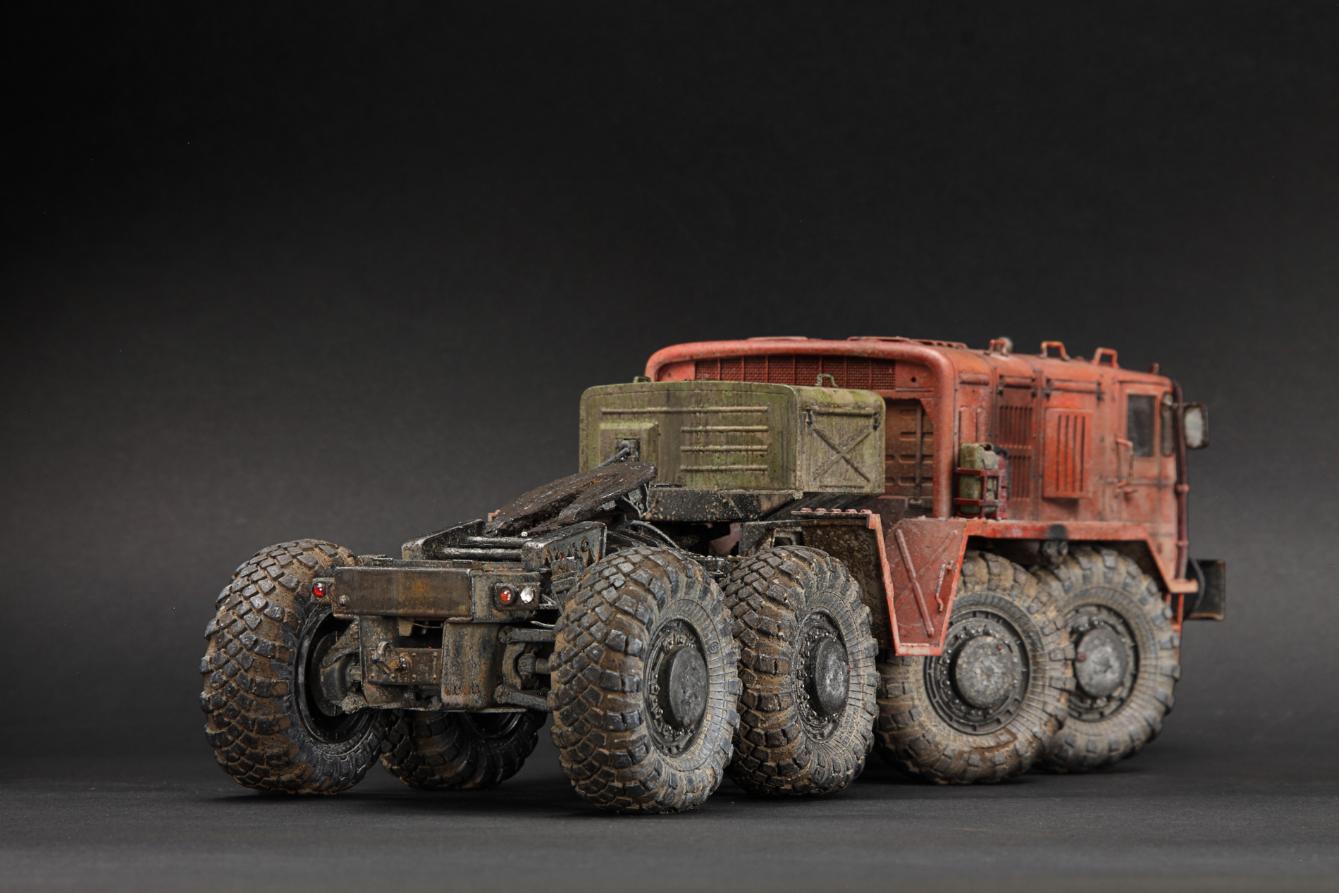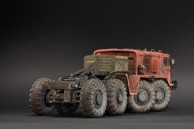 Если честно, подсматривал на прототипы тут и там, но задачей сделать 1 в 1 не ставил. Немного доработал раму и проводку, сделал рабочей подвеску. Заменил колеса из коробки на трамповские с другого маза, вкрутил в них шурупы чтоб осели. Ну вроде все, передняя фара запил, тросы и все, вроде. :)