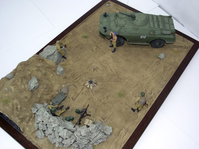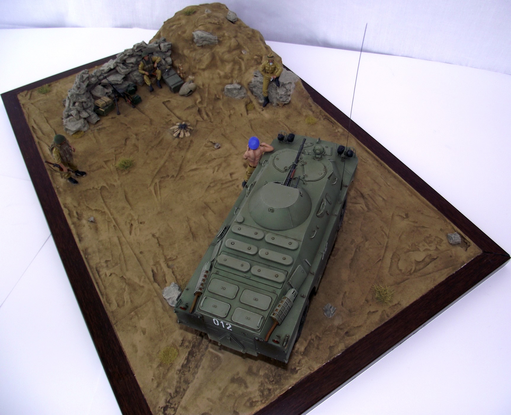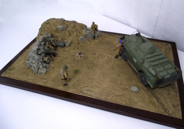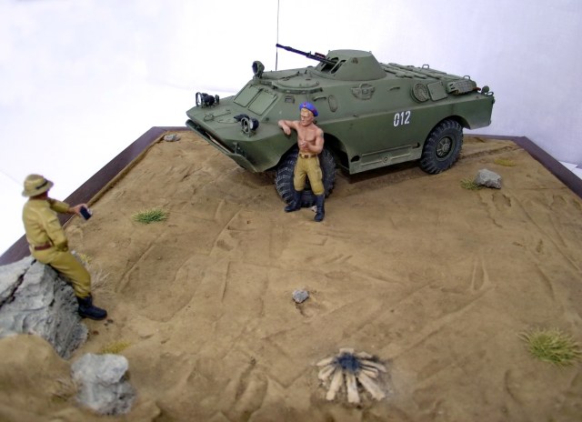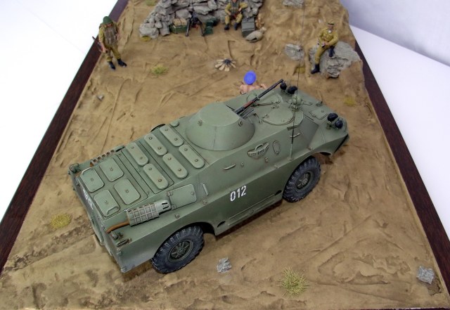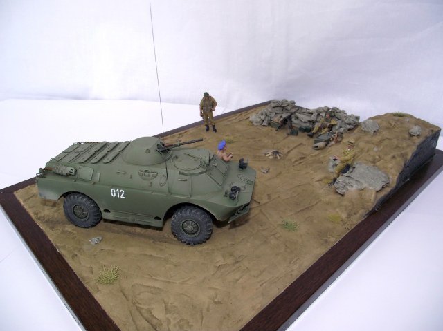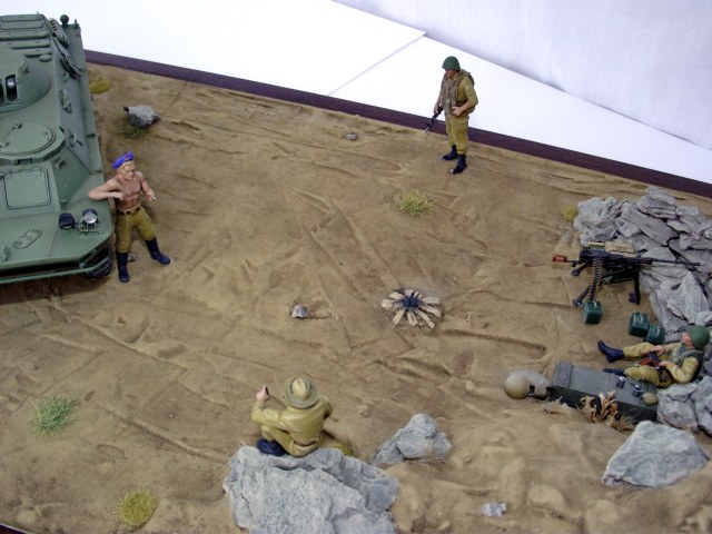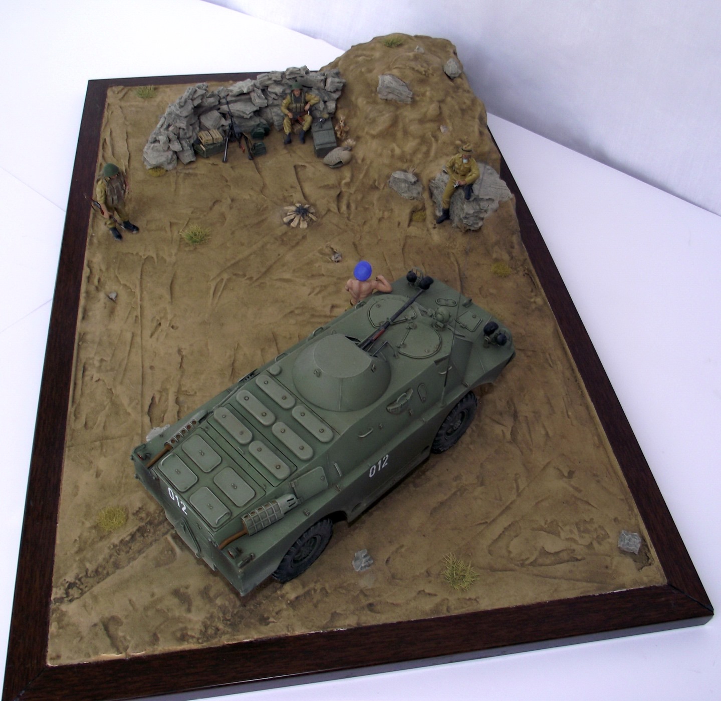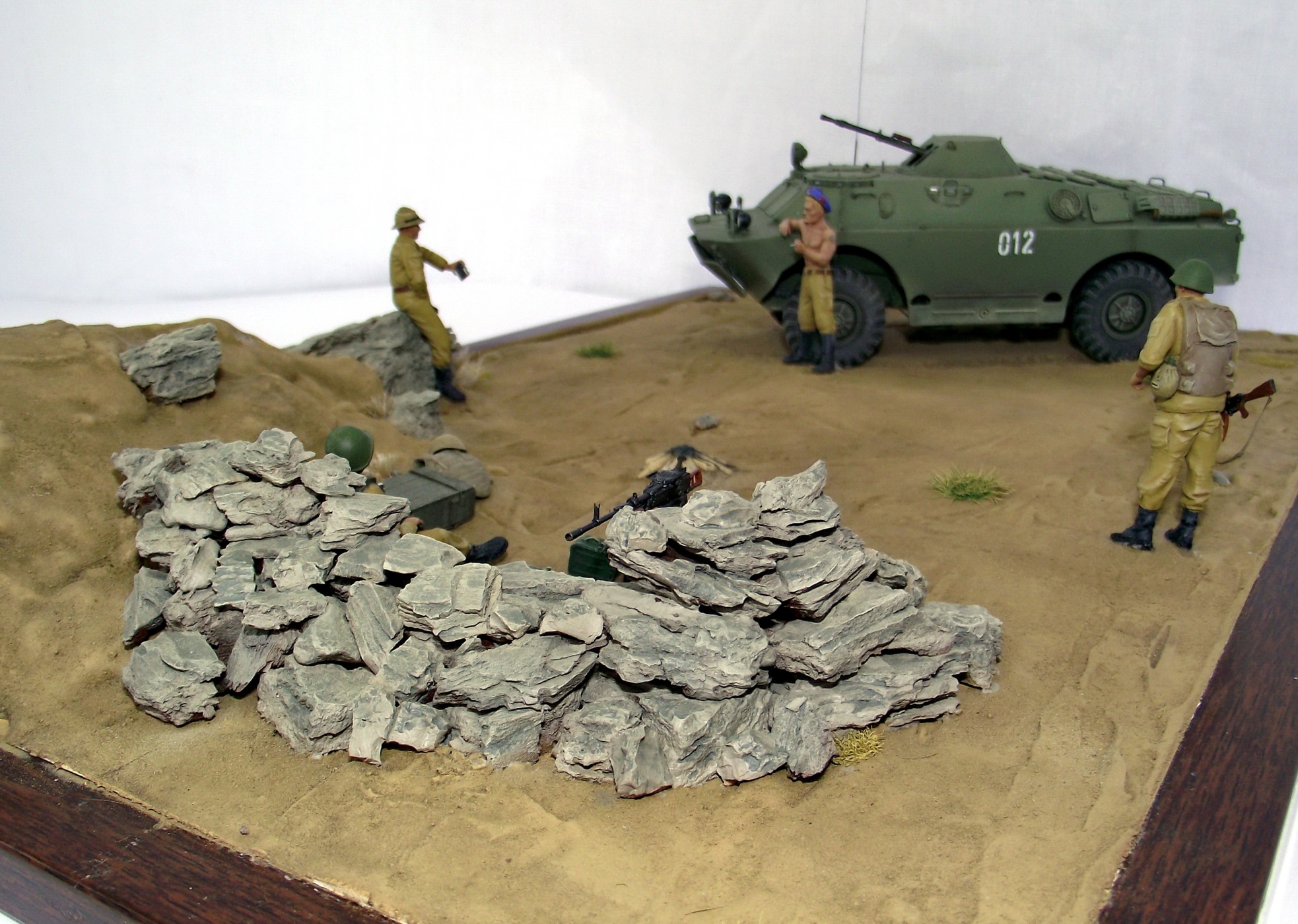 В целом - красиво! Каждый элемент по отдельности выполнен хорошо. Но в целом неколько не бьется, уже указали почему. Судя по воспоминаниям ветеранов- афганская пыль это нечто, она буквально покрывает и забивает все, что можно. А БРДМка словно только что из боксов Хименеса например)
