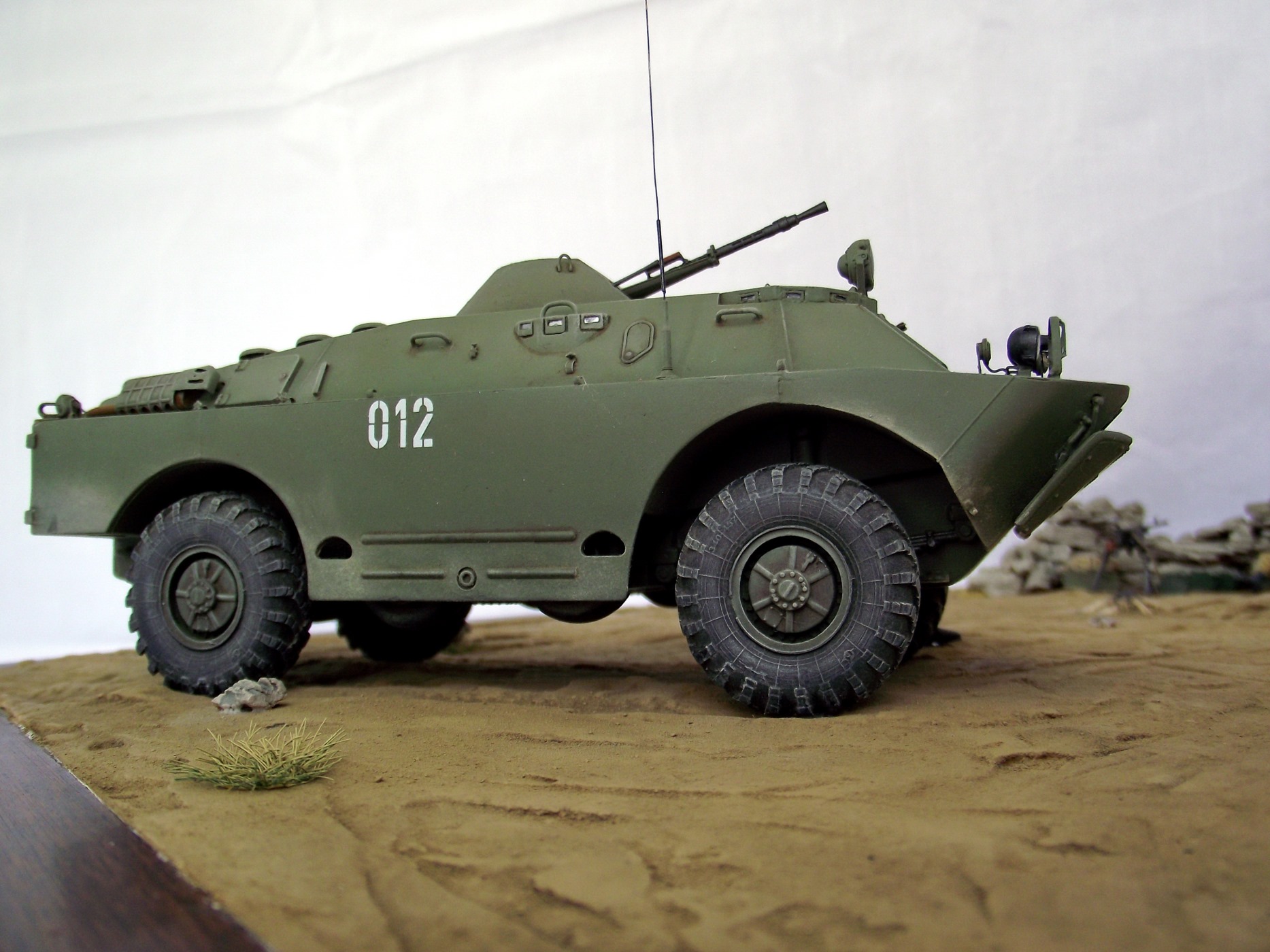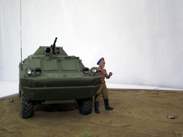 1) На БРДМке совсем мало пыли, так как она находится на ППД и была вымыта бойцами, об этом, кстати, указано в описании. Вот, для примера фото чистенькой бронетехники в Афганистане.