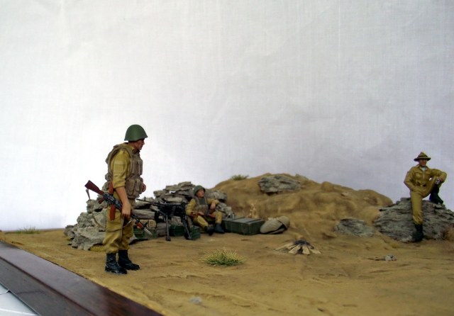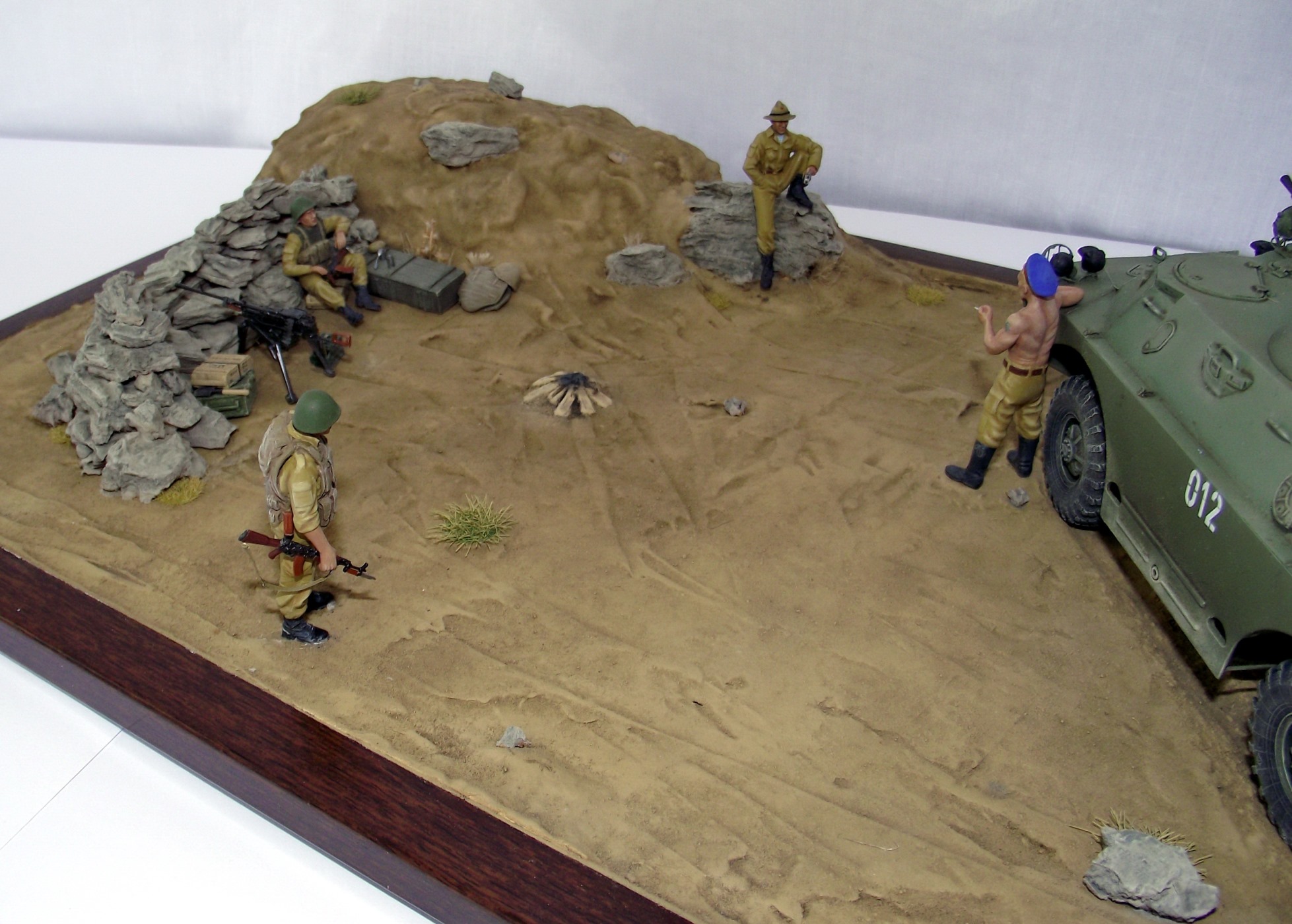 Афган Афган. Глеб, спасибо(ташакор) тебе что у тебя есть интерес, желание, ну и конечно сама подача тех давних событий(диорама). Работа отличная, по дембелю да, береты такие и были и так носили. Единственное замечание(имхо), ХБэшки бойцов ярковаты, за три недели они выгорали полностью, а так повторюсь, диорамка класс! Успехов! #СИДИМДОМА!