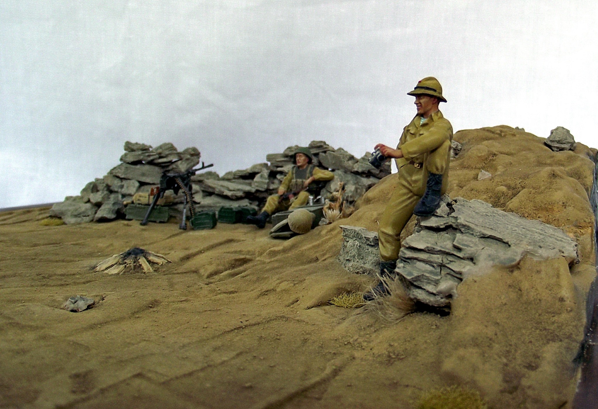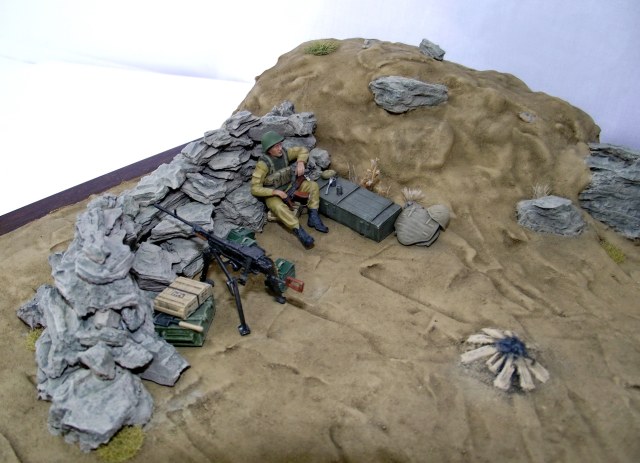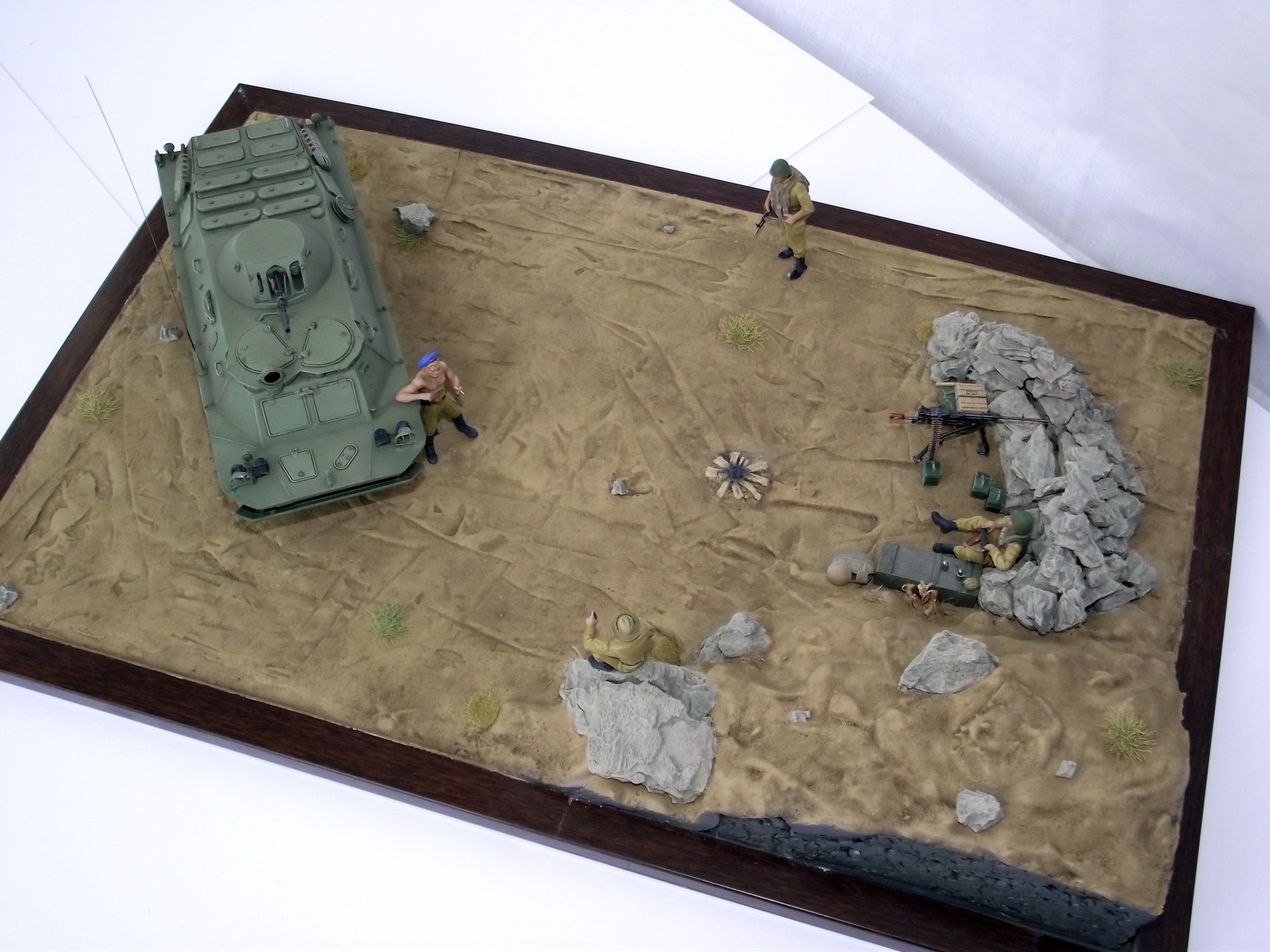 3) Основание - фоторамка, гипс, пенопласт, молотая земля, сосновая кора, сантехлён. Окрашено акрилами Tamiya и Gunze, тонировка маслом.