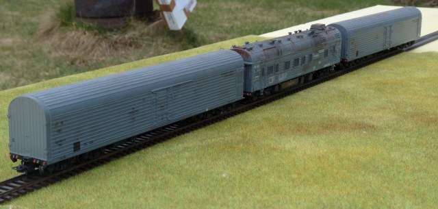 Изотермическая секция 15Т285 состоящяя из 15Т286 - 8 осного изотермический транспортный вагон (ВГ-110),15Т288 - вагон сопровождения (ВС-200), 15Т287 - транспортный вагон для транспортировки комплектующих элементов МБР 15Ж60 шахтного базирования, 15Ж61 мобильного БЖРК, разработаная в 3Д для выращивания на принтере
