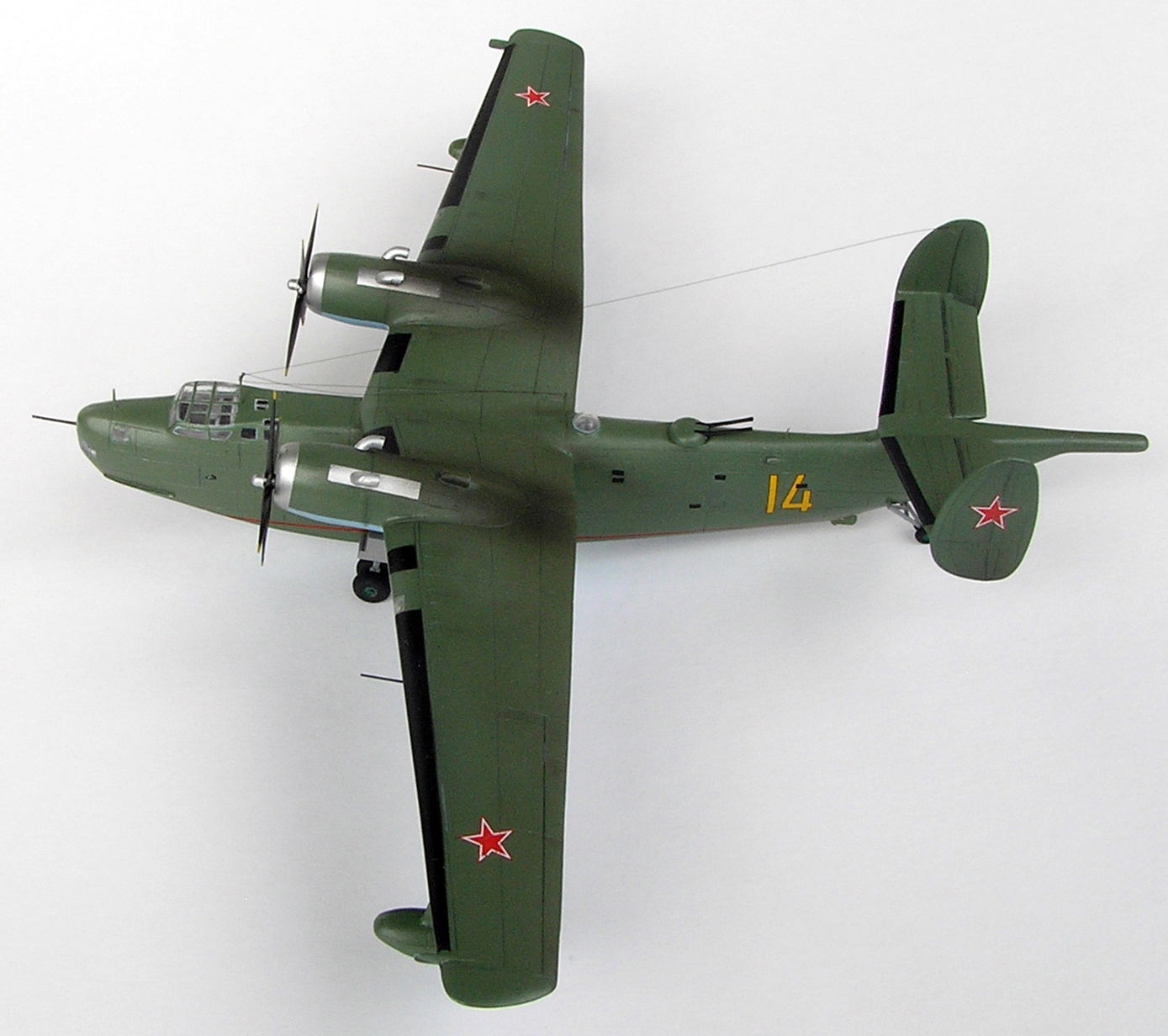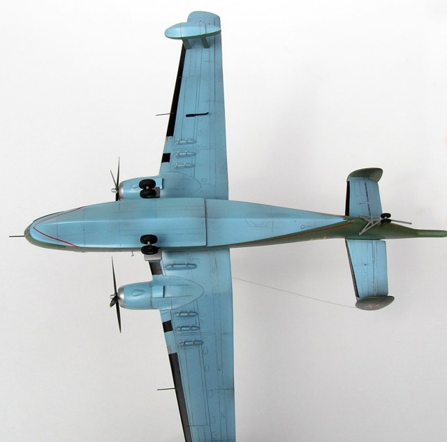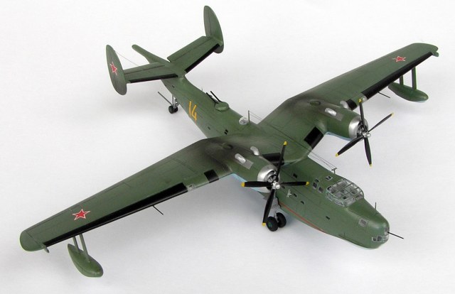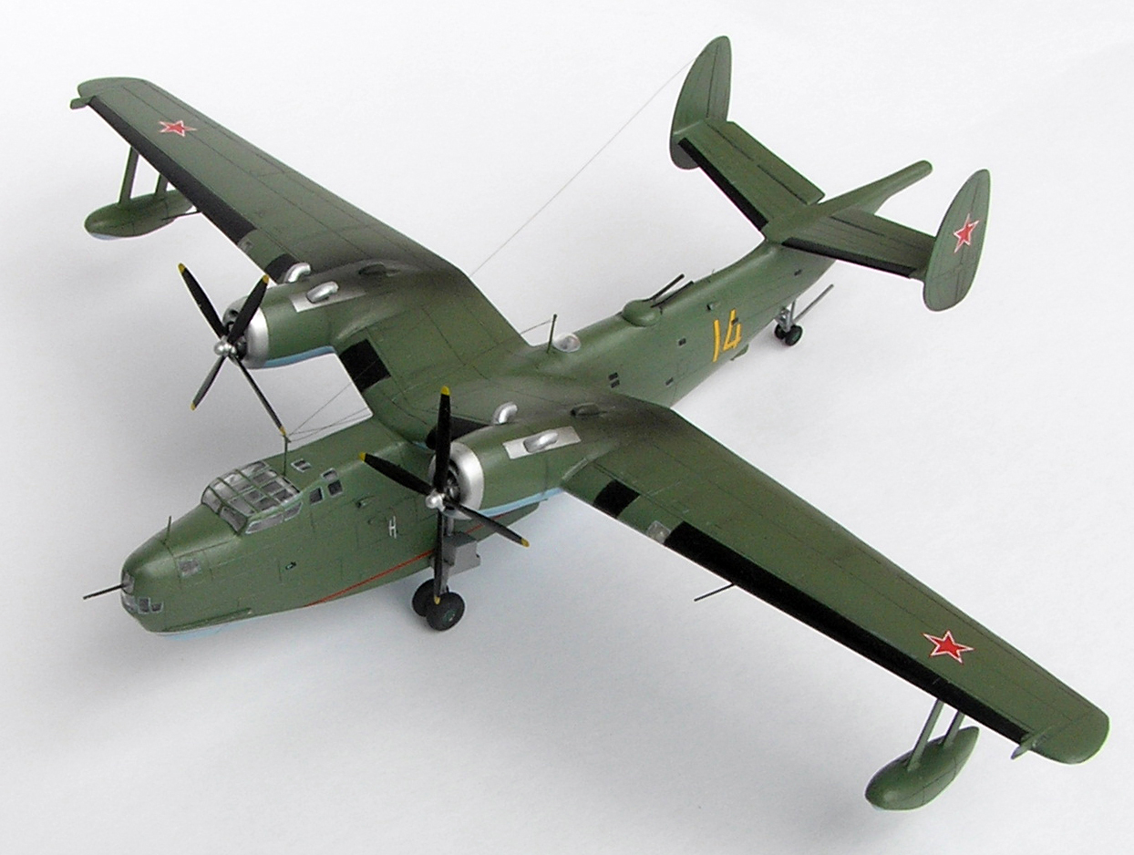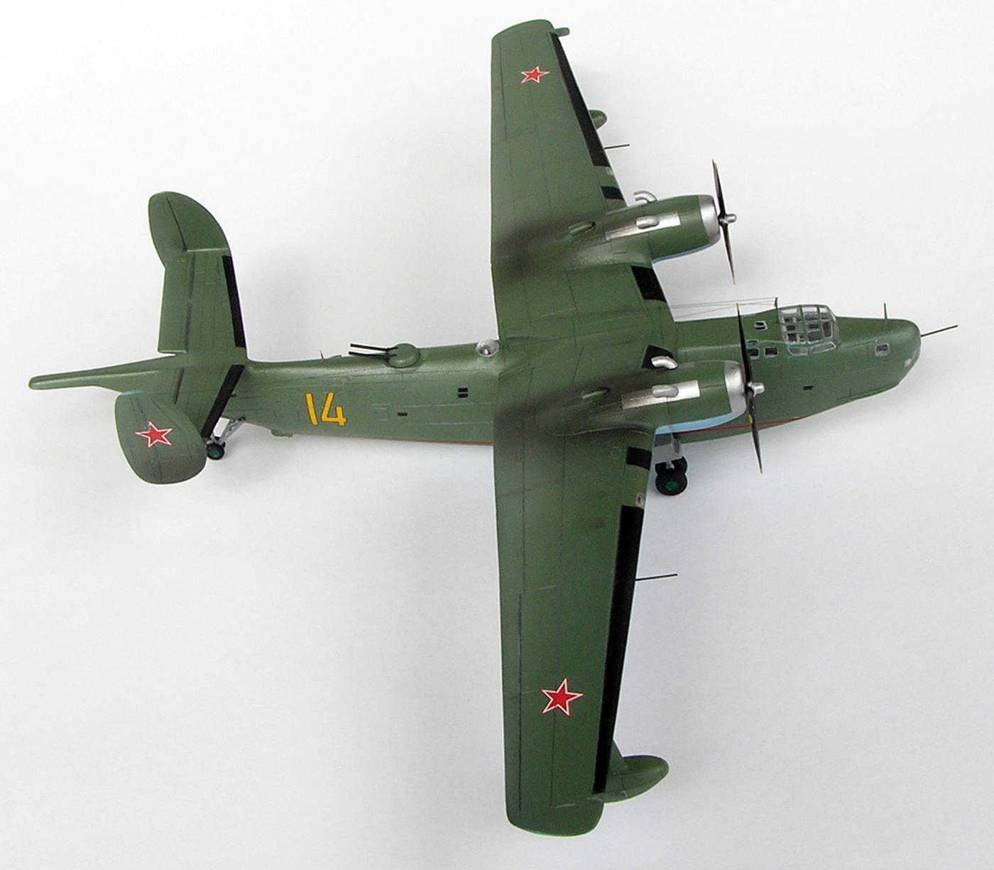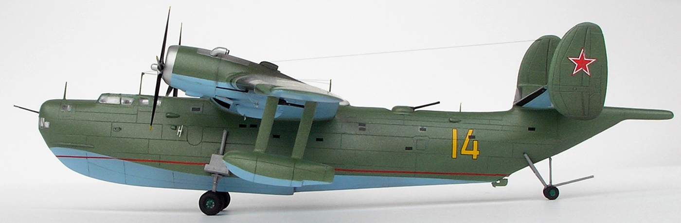 Тема как бы не моя и поэтому возникли некоторые (ничем не подкрепленные) сомненья по выбору цветовой схемы. Самолет морской и послевоенный, по логике должен быть окрашен примерно так в шаровый цвет. А тут зеленый,причем явно темнее чем те же транспортники Ли-2, послевоенной окраски