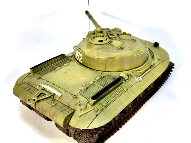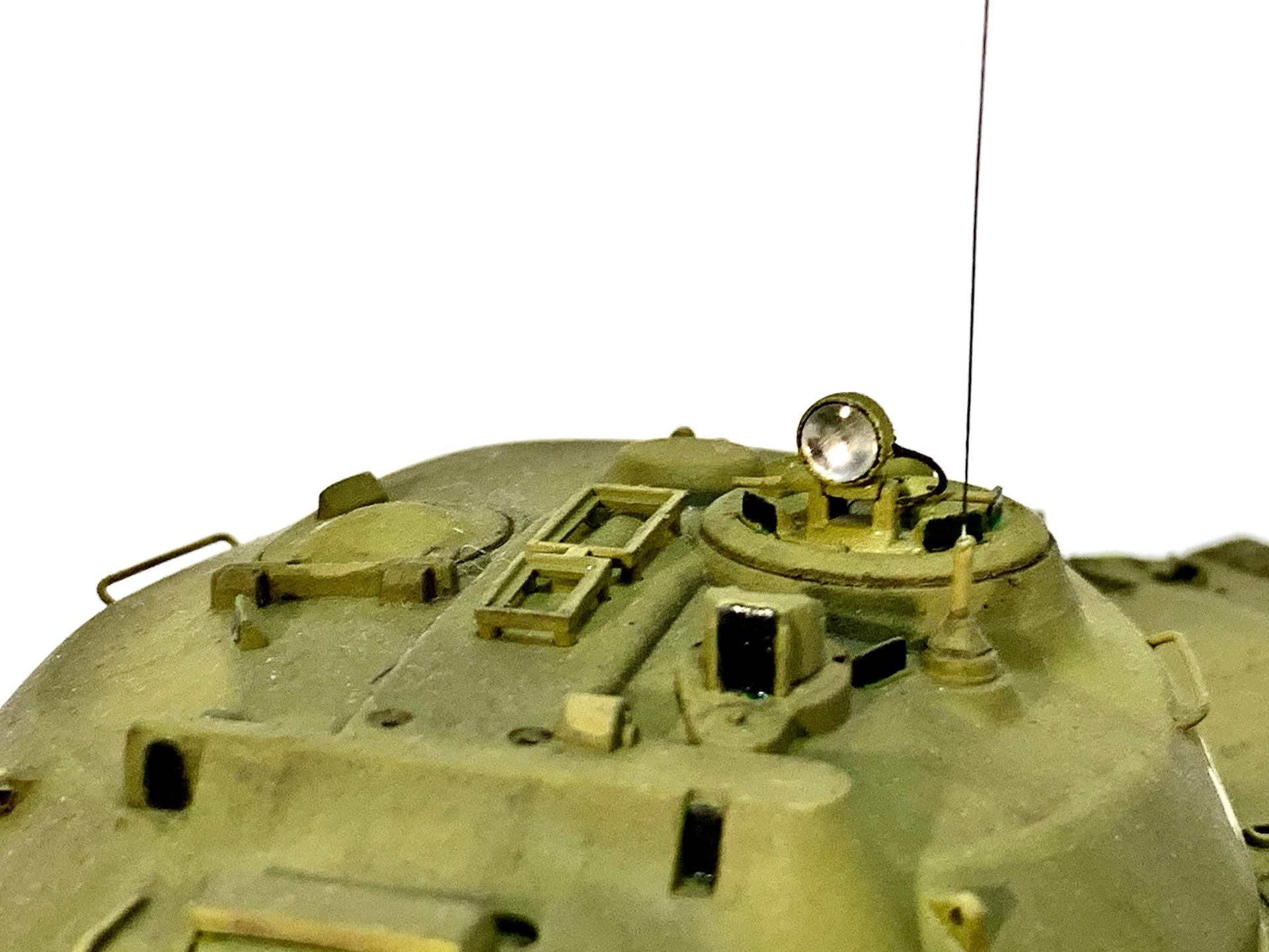 В итоге получился неплохо выглядящий (на мой взгляд) танчик, но все портит упрощённая до нельзя ходовка. Очень жаль что в 43 масштабе не существует альтернативы резиновым гусеницам. С ведущими звёздочками тоже беда: недостаточная длина гусениц не позволяет их нормально установить, из за чего они идут внахлёст ленивцев. И да, я знаю что одна из гусениц перевёрнута.