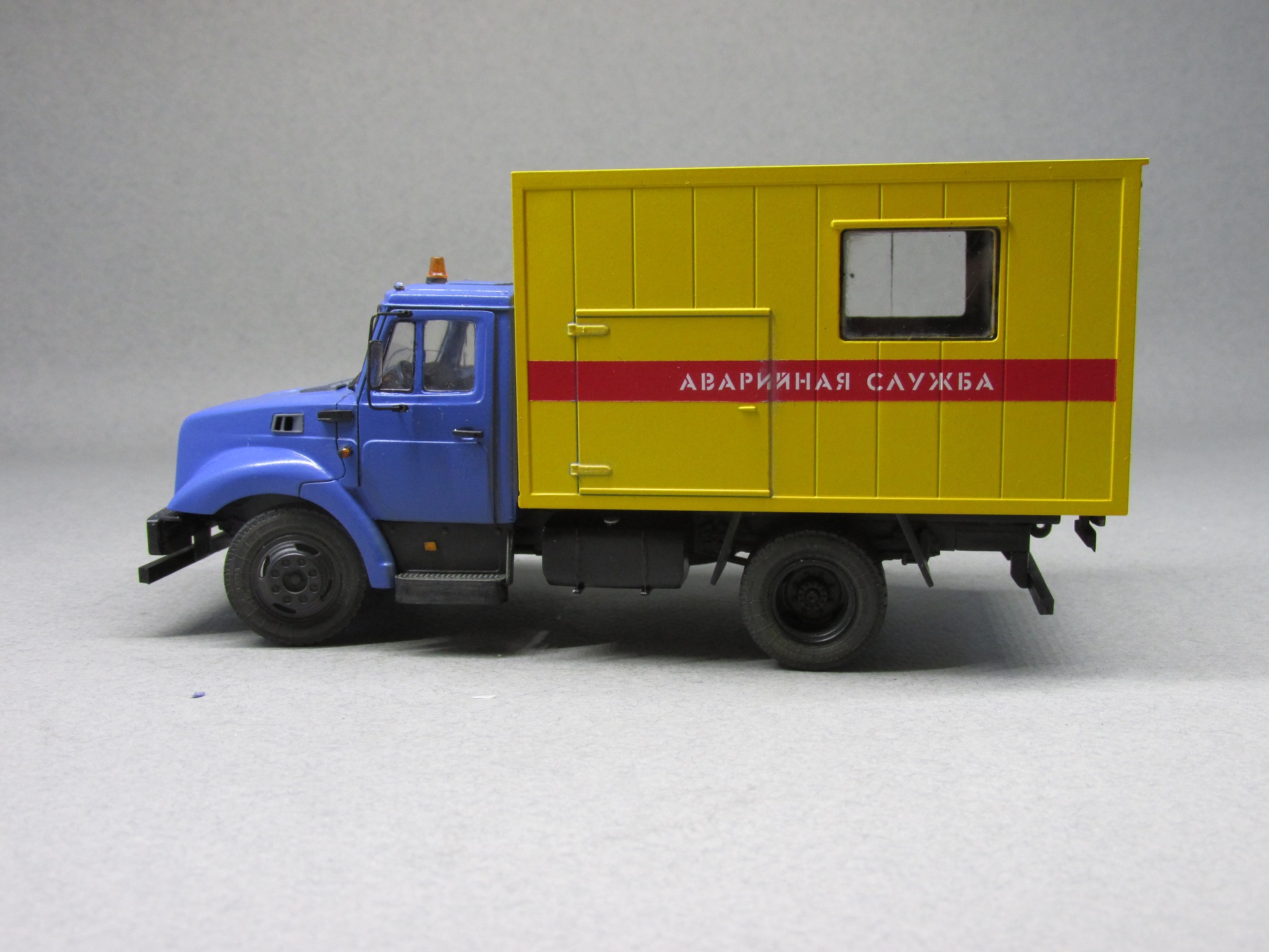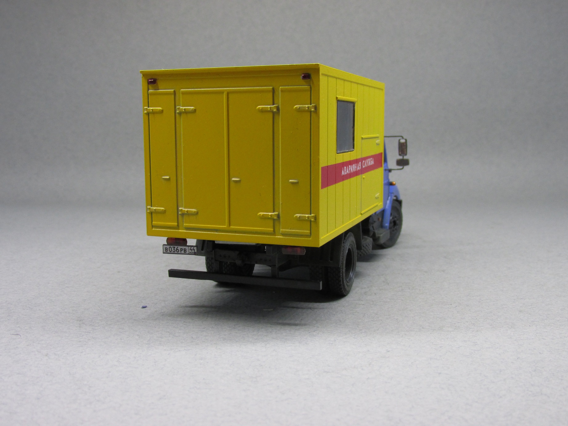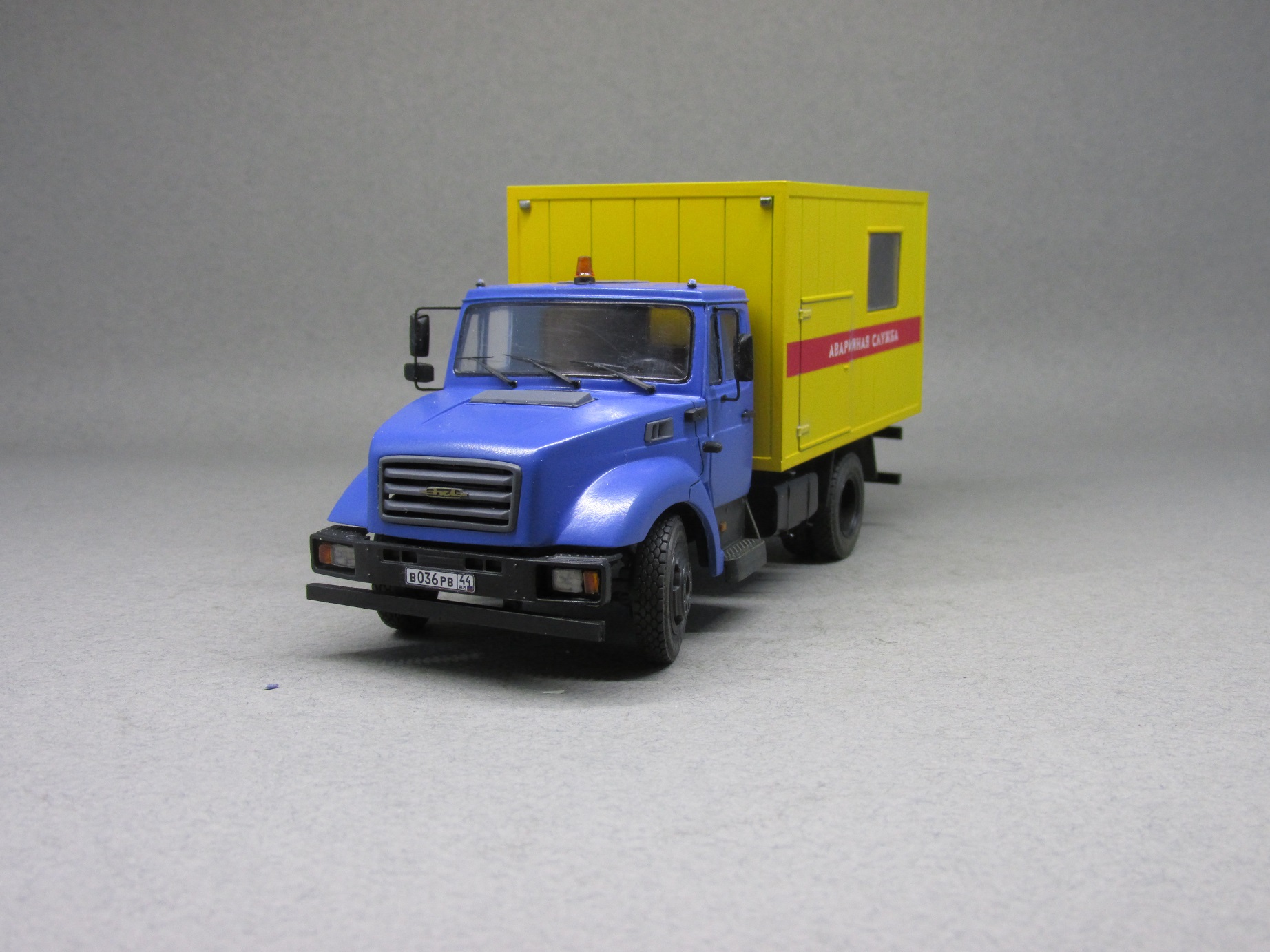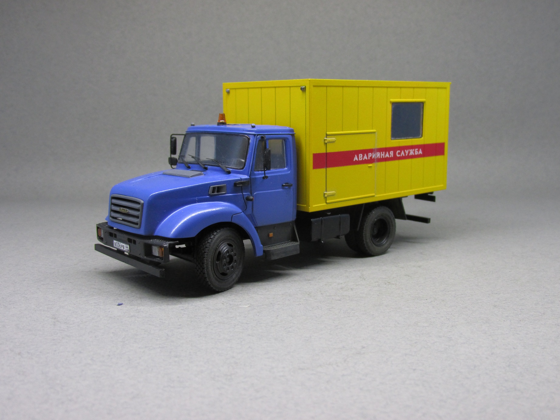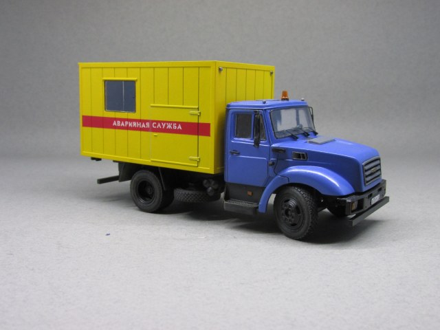 При создании модели использовался набор от компании AVD-models, а также кабина с начинкой от минской компании "Ретролаб". Дополнительно использовал фототравление от Петрограда и колеса от Маестро-моделс. Окрашена модель краской Мотип (Желтая и Медео).