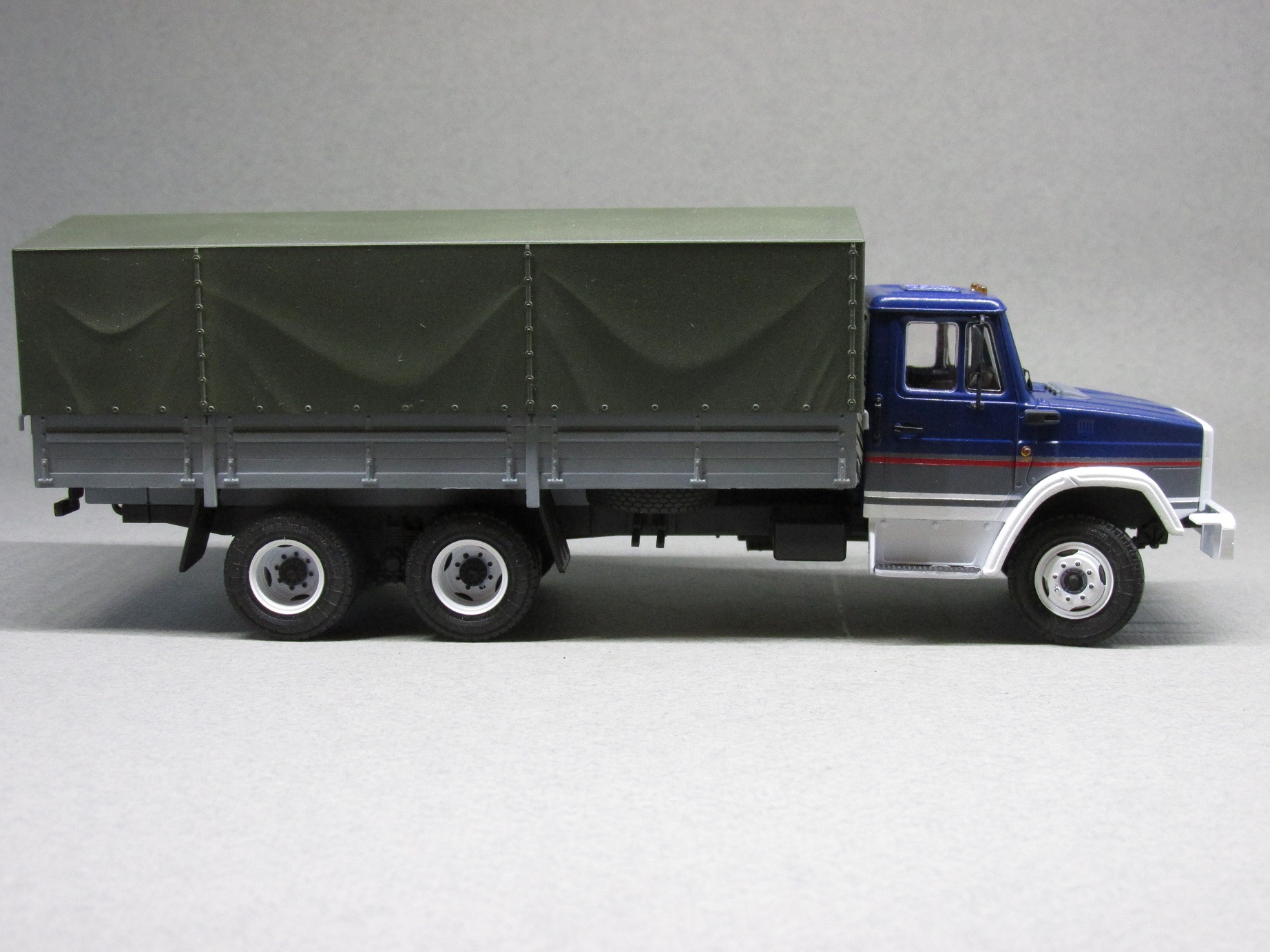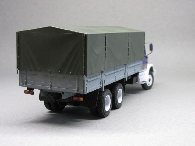 Как то лысо смотрится. ИМХО конечно. Но в Дальнобойщиках был с металлической платформой, со спальником, спойлер на кабине и бампере, и отбойники по бортам очень украсили бы модель. Вот такой лучще бы смотрелся.