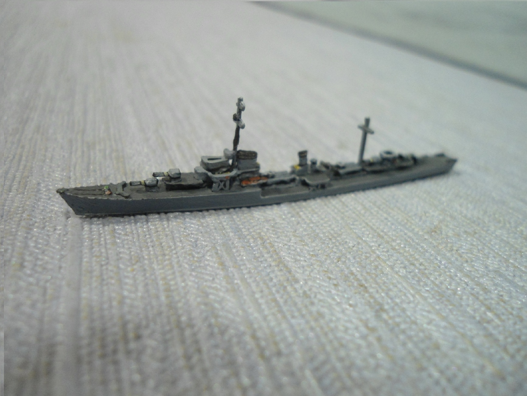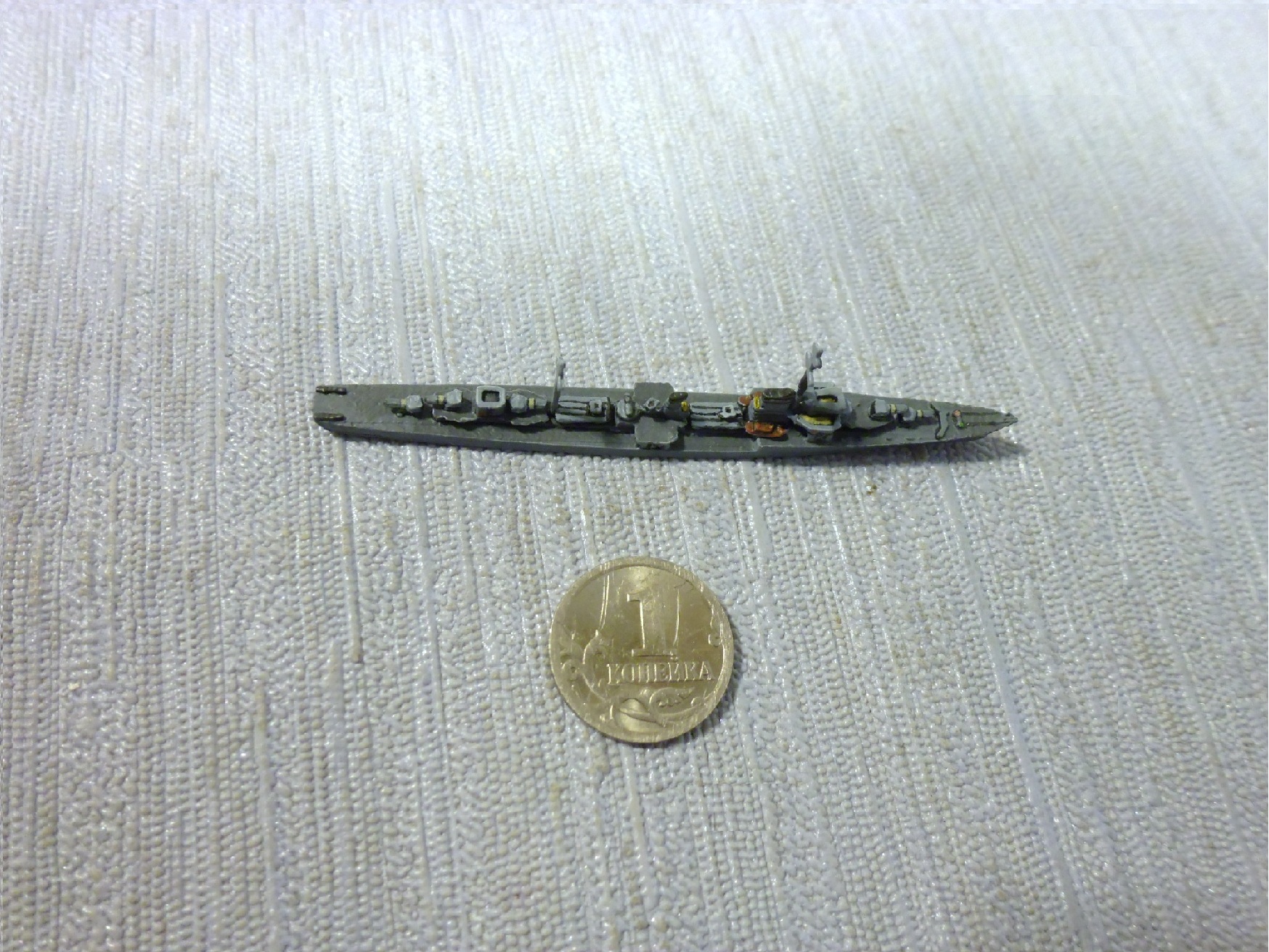 Здравствуйте, коллеги! Хотел бы показать Вам миниатюру немецкого эсминца типа 1936 в масштабе 1/2000. Корабль является частью игровой системы Navy Tactics, в которой существует возможность воспроизводить морские сражения с участием множества кораблей, потому сами корабли делаются очень маленькими. Конкретно этот эсминец в длину чуть больше спички. При том, для столь малого масштаба он имеет весьма высокую детализацию. Корпус и основные надстройки выполнены одной деталью, отпечатанной на 3-d принтере. Отдельными деталями выполнены 5 башен с орудиями главного калибра и 2 мачты.