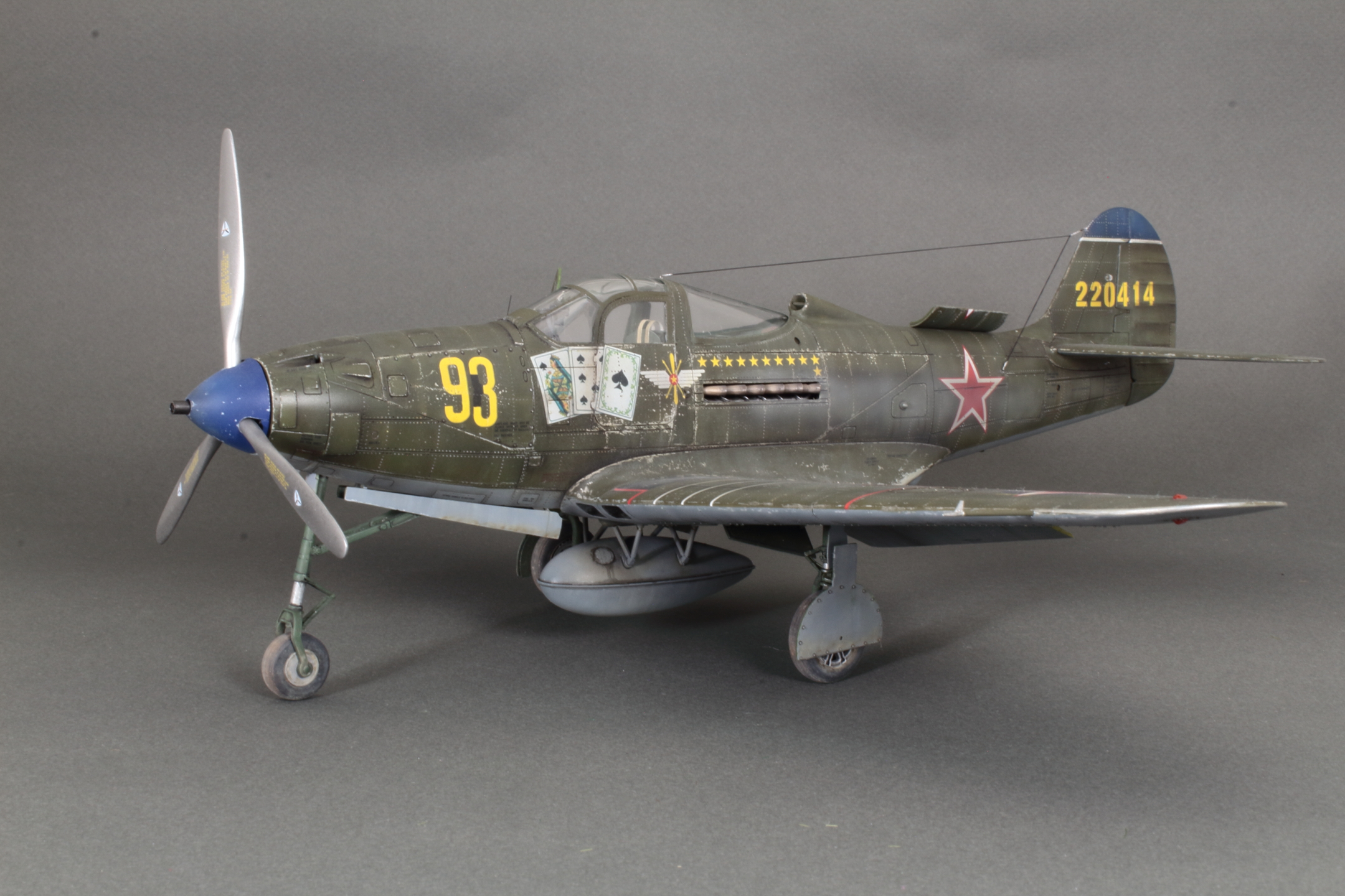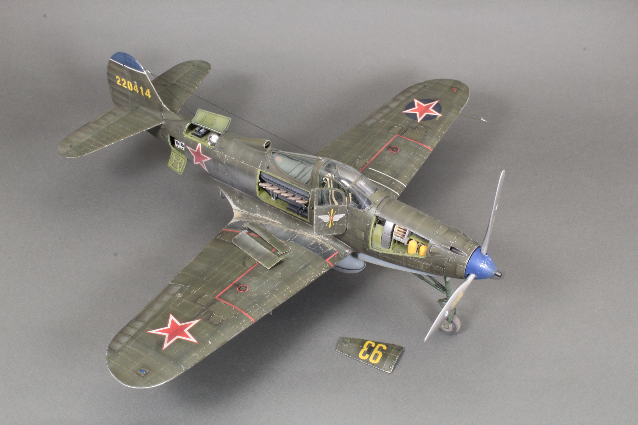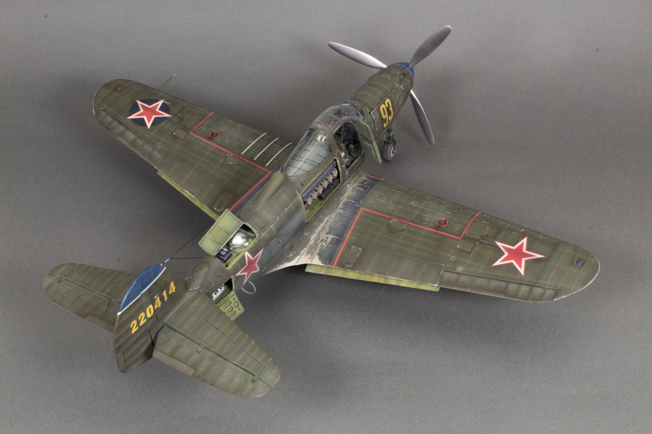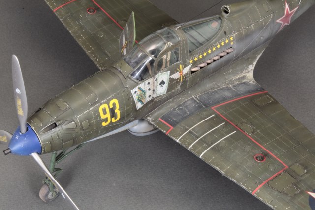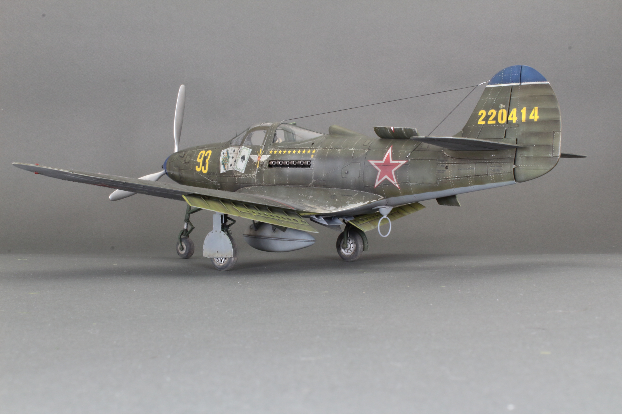 Красивая модель! Очень смотрится. А собака вообще отпад. Понравился окраска снизу. Без вопросов. Сверху для меня чуть сильно изношен самолёт, но тут уж...кто как.Удачи!