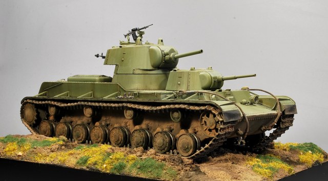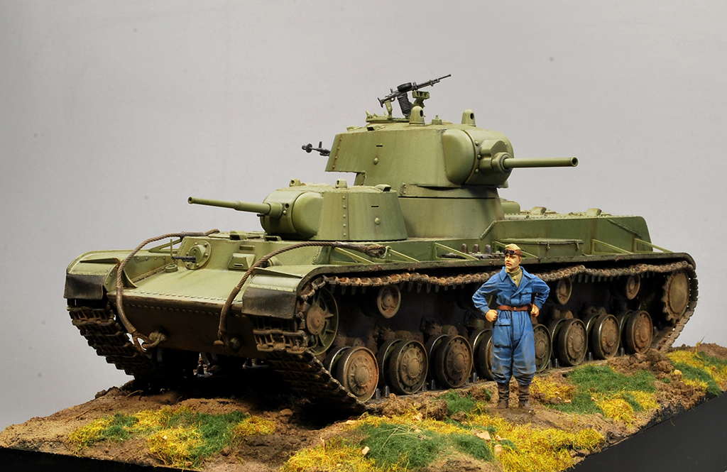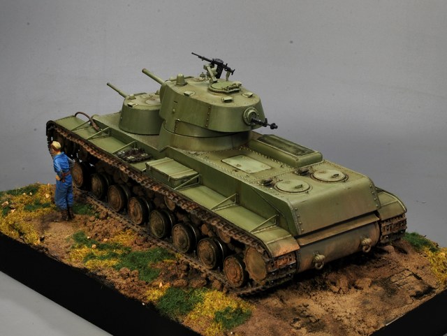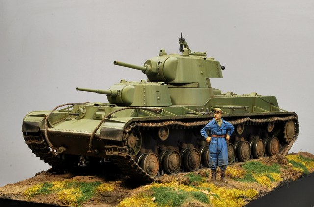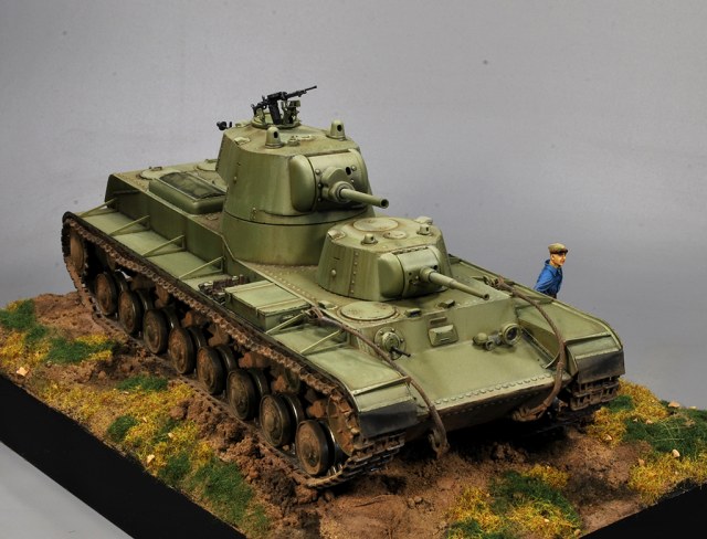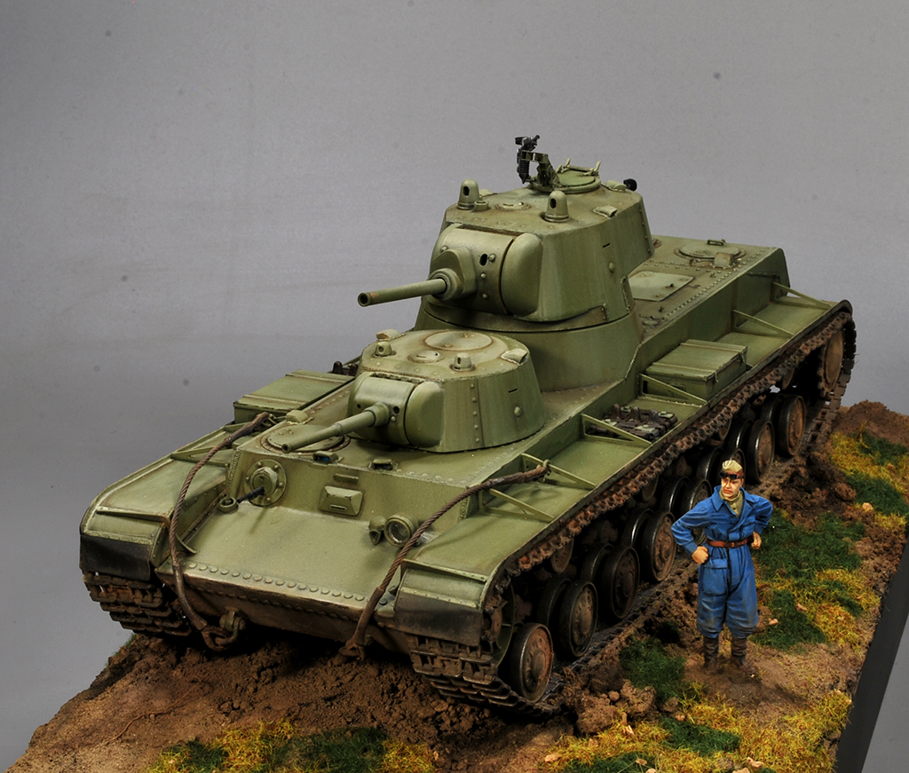 Красивая работа, грунт прям сверхнатурал, и танкист не отстает, стальной объект, хоть и не бросок, но есть, за что глазу зацепиться... что не понравилось, так то сам танк, экое несуразное чудище, недопереКВ, но это не к автору, а конструкторам.