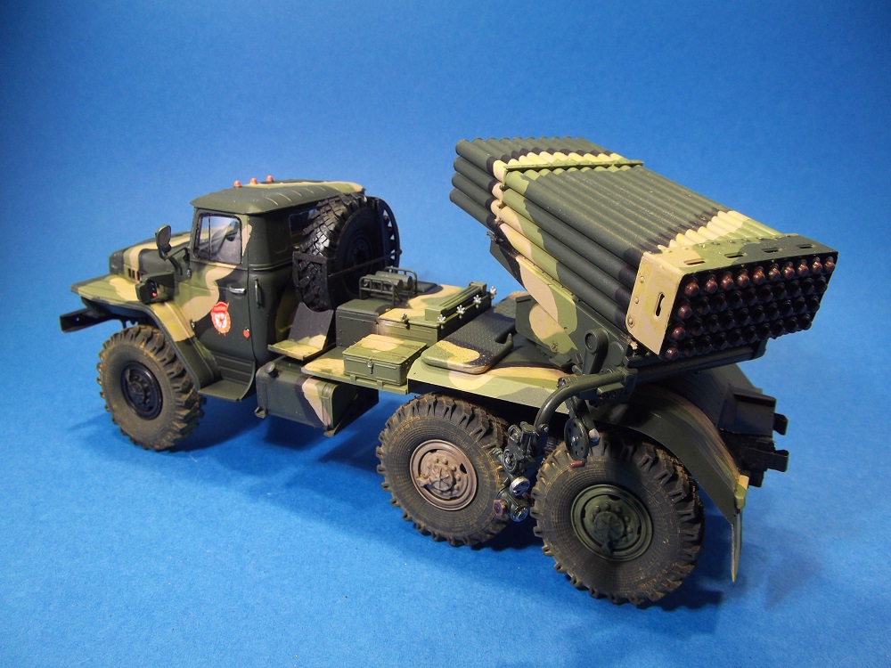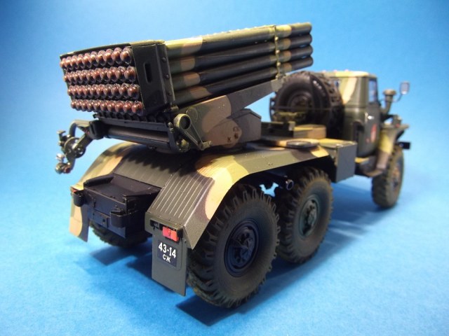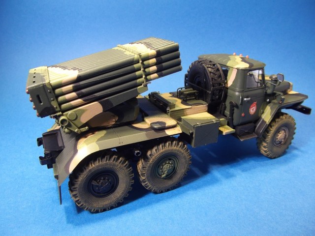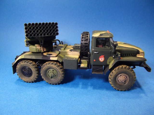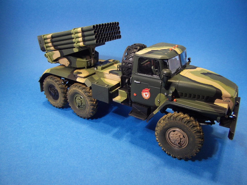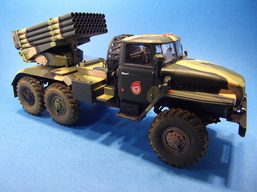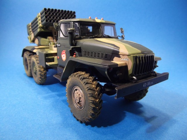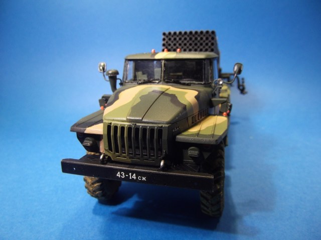 Продолжаю собирать свои УРАЛы, на этот раз ГРАД БМ- 21. Модель из коробки, заменил только фары. Одна от эльф, две передние от звезды.