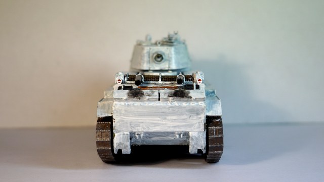 Кормовой пулемет в башне приклеиваю уже после окраски танка в базовый цвет, так как он очень хрупкий - одно неосторожное движение и он сломан. А покрасить его можно и кисточкой.
