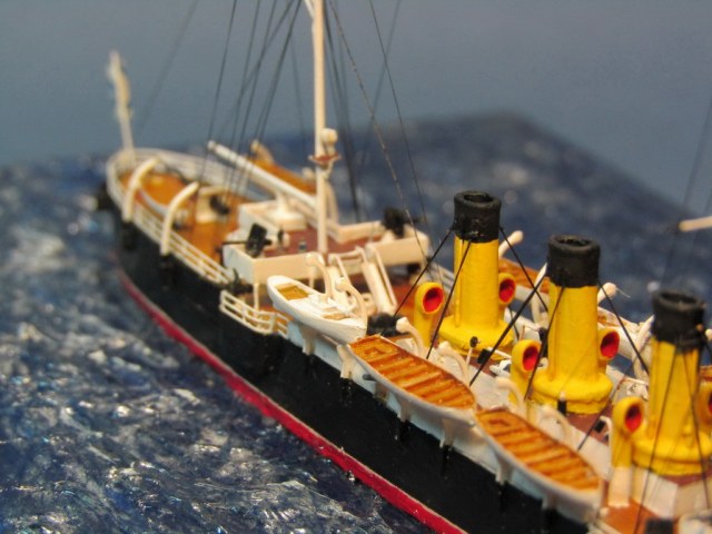 Косяки: накосячил с шлюпбалками, сразу на сухую не померил и приклеил шлюпбалки на штатные места, потом когда пришла вешать катера и баркасы, оказалось что либо баркасы и катера длиннее чем расстояние между шлюпбалками либо неправильно установлены (указаны) места шлюпбалки, учитывая хрупкость и масштаб деталей не стал переделывать оставил как есть. К несчастью фотографии в большом разрешении показывают еще различные огрехи в окраске которые не так заметны на модели.