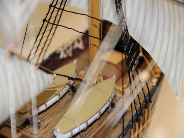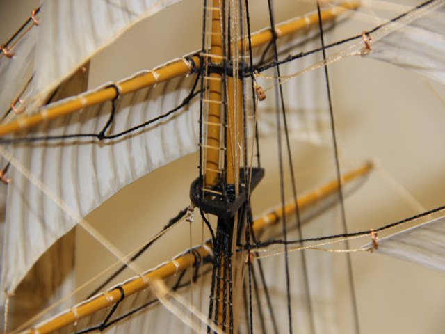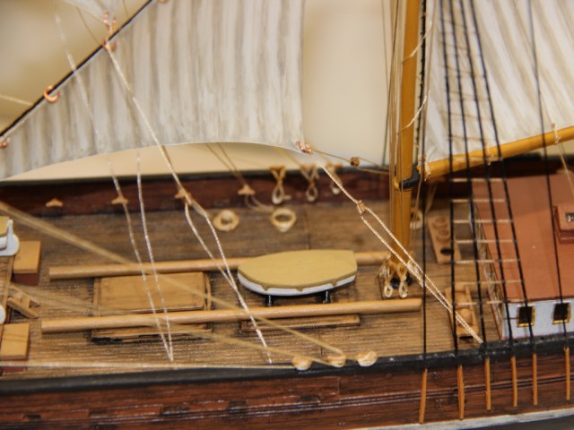 Что касаемо стакселей и кливеров, то установил весь такелаж....для такелажа прямых парусов вооружил только топенанты и брасы, но все на блоках...Согласен, что если вооружить правильные блоки и установить юферсы, то будет куда мощнее!!!! и ДА...оборудование верхней палубы (коробочный вариант) бестолковое...