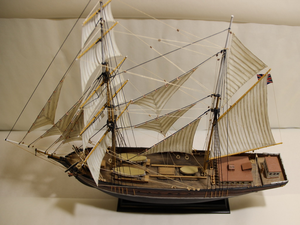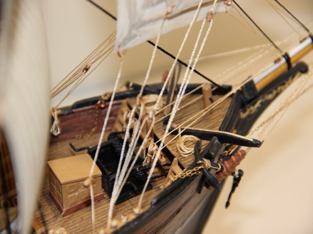 Очистить палубу,убрать эти странные будки что авторы кита понатыкали, сделать рангоут нормального размера,такелаж по уму...можно даже трёх мачтовую шхуну сделать ...намного интереснее будет