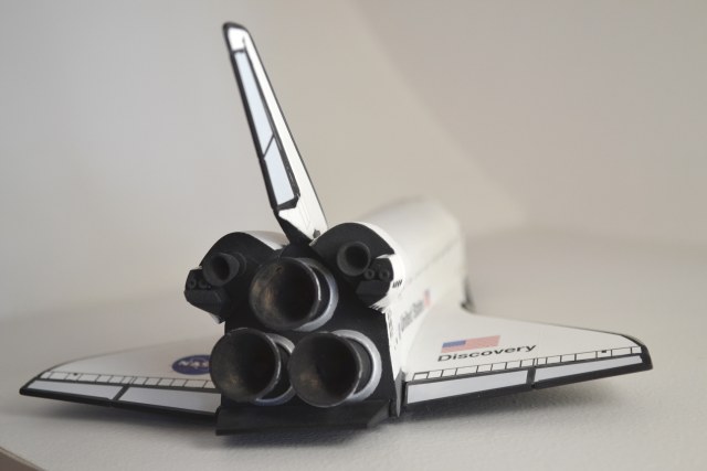Набор даёт возможность собрать орбитер с открытым грузовым отсеком и неким грузом крайне низкого качества внутри, а также с выпущенными шасси, но для этих целей лучше взять один из многочисленных наборов без ускорителей и бака гораздо лучшего качества. Схема покраски в инструкции сильно упрощена, как и сама модель.