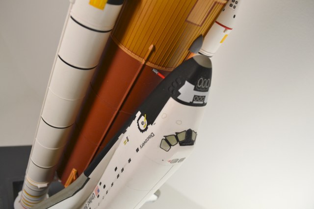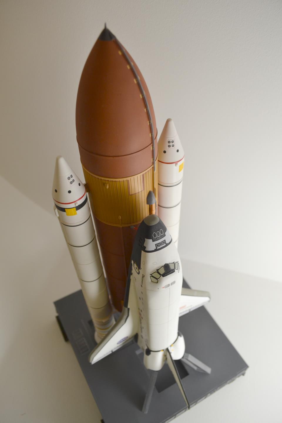 Очень хотел собрать шаттл, причем обязательно систему вместе с ракетой, а не только орбитальный корабль. В связи с этим выбор был крайне невелик, я знаю только модели от revell и dragon (но его видел только в зарубежных магазинах). Этот набор для любителей соединять несоединяемое и поработать напильником: качество довольно сомнительное, ибо набор впервые появился в 70-е, дальше только незначительные изменения и репаки, как я понял. Стыкуемость варьируется от приемлемой до отвратительной, готовьте ведро шпаклёвки. Остекление кабины сделано самым неудачным образом: оно сделано вставкой прозрачного пластика в кривой проём, который необходимо очень сильно шпаклевать, мне это лишь частично удалось, осталось много следов.