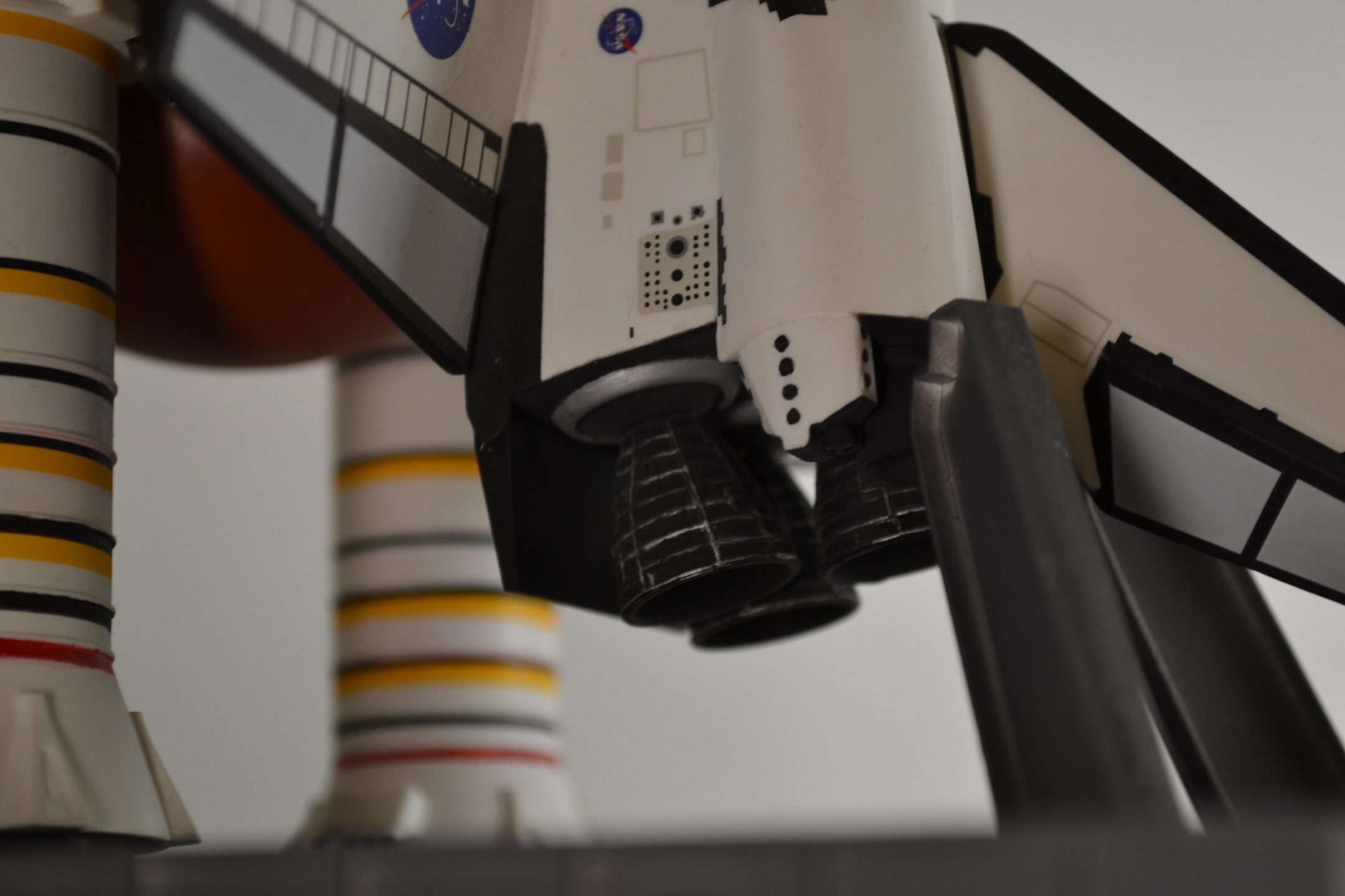 Модель я решил доработать, напечатав на 3d принтере сопла маршевых двигателей (revell очень сильно упростил форму), двигателей OMS (неправильная форма и куча облоя) и задних двигателей RCS (тут revell по какой-то причине сделал 1 сопло вместо двух на сторону, да и выглядели они как огрызки).