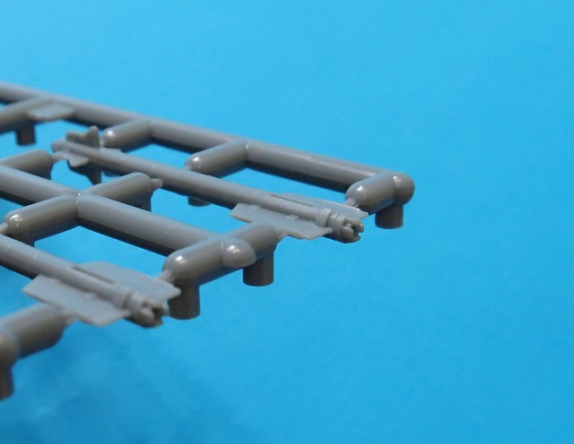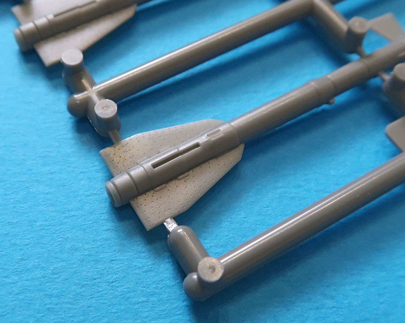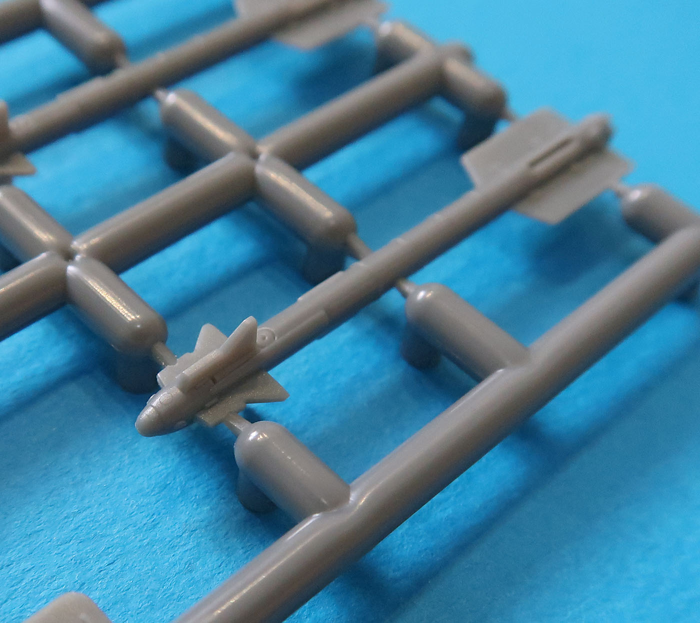 Тоже многоразъемный. Отлично проработаны рельеф и жопки ракет. Но очень толстое переднее оперение. Пожалуй это пока первый минусик модели. На фоне остального откровенно не удались Р-73.
