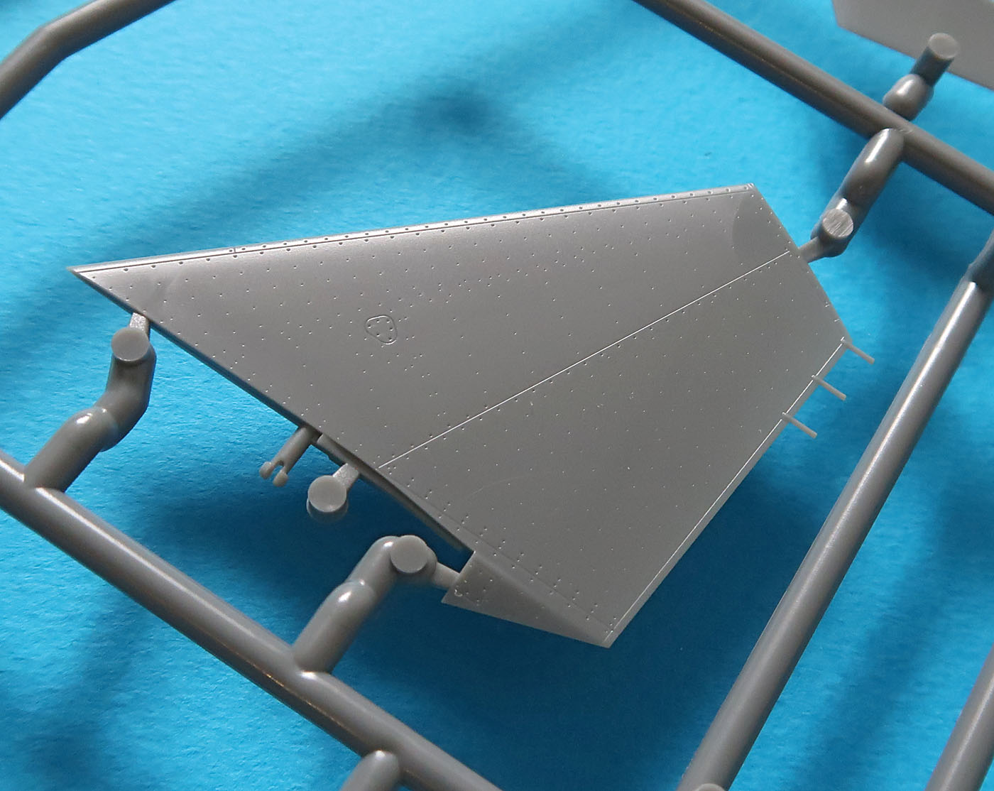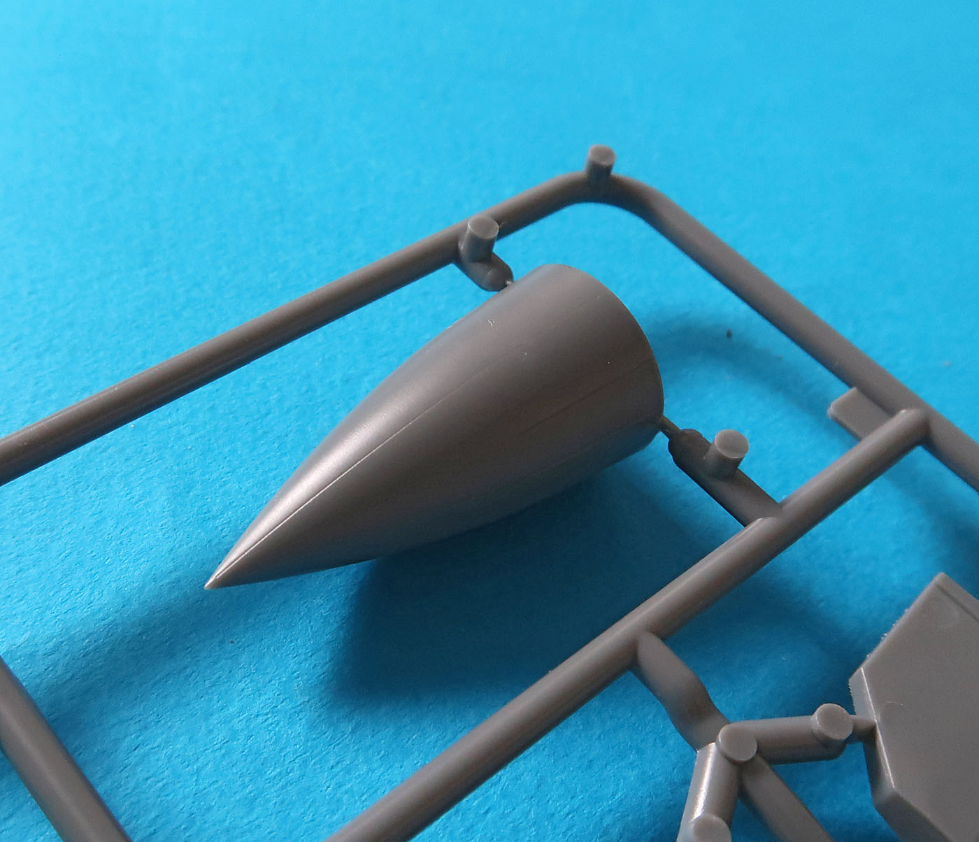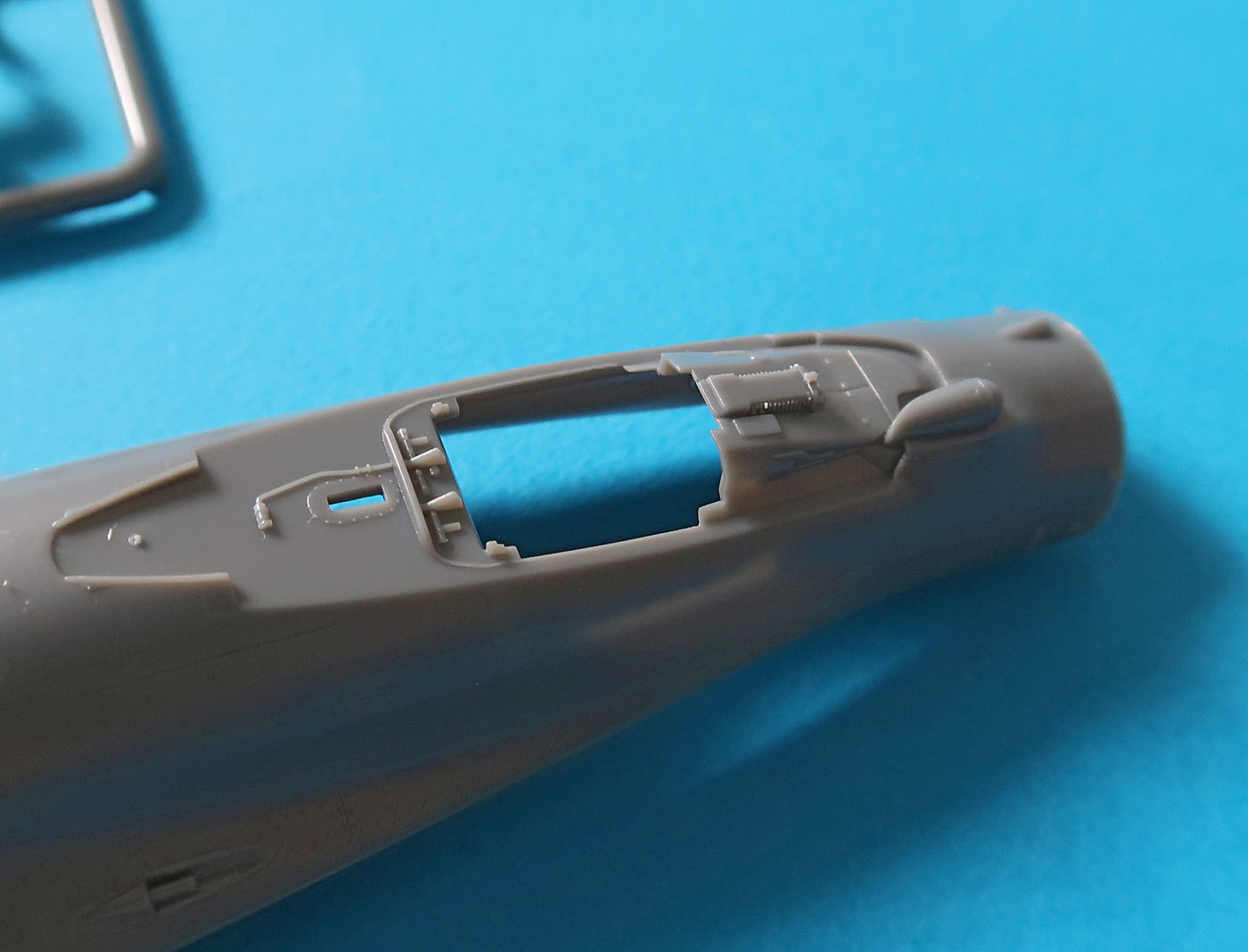 Фонарь очень четкий, красивый и с рельфом на оперении. Но увы - продольный шов не только на откидной части (где это суровая неизбежность ввиду формы прототипа) но и на неподвижной части. А это уже немного расстраивает - тут он ни к чему. На полировку после удаления шва;)