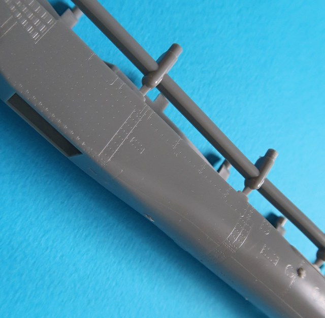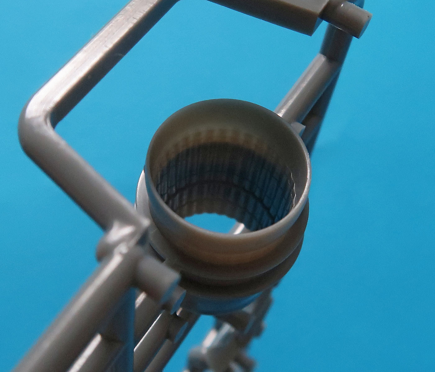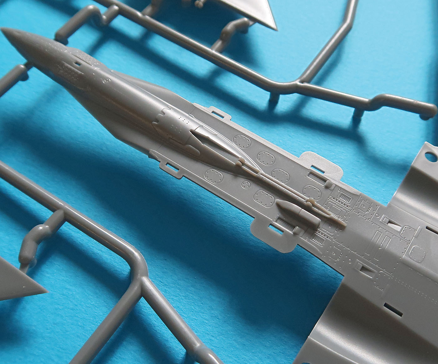 Фонарь очень четкий, красивый и с рельфом на оперении. Но увы - продольный шов не только на откидной части (где это суровая неизбежность ввиду формы прототипа) но и на неподвижной части. А это уже немного расстраивает - тут он ни к чему. На полировку после удаления шва;)
