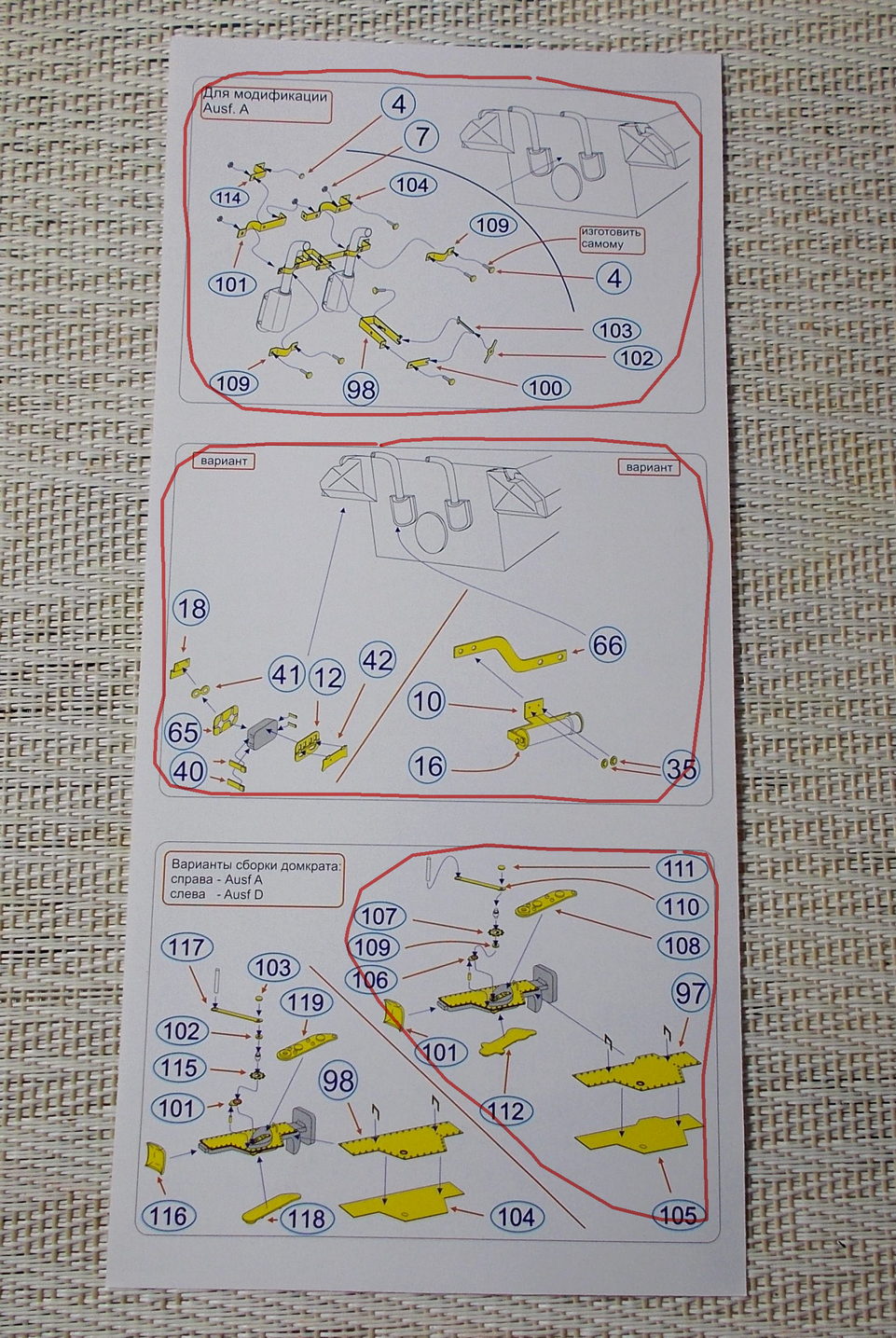 С отсутствием деталей не сталкивался. Все дело в том, что у МД одна инструкция на два набора - для Дшки от Звезды и для Ашки от Менга. Они отличаются между собой платами с сетками и с домкратом и кронштейнами выхлопных труб. Не очень ясно, почему МД не выпускает ещё один набор на Д от Менга - для него придётся брать набор для Д от Звезды и отдельно сетки.