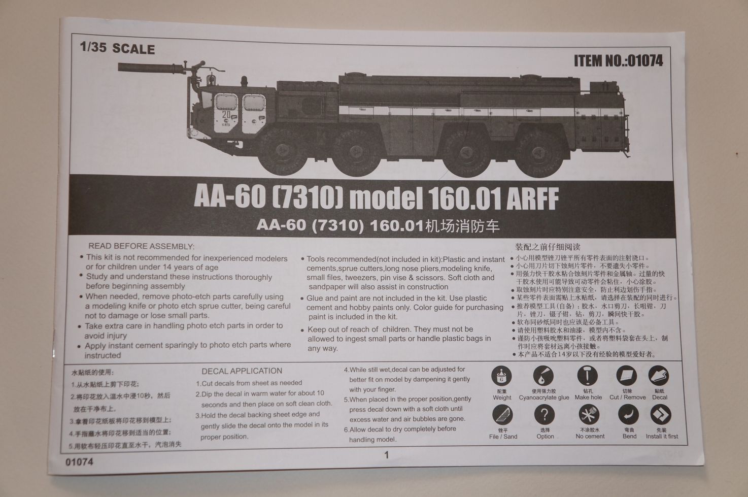Некоторое время назад вышел набор аэродромного пожарного автомобиля от Trumpeter: AA-60 (7310) 160.01. Как только появился анонс (примерно в октябре 2019 года)сразу же возникло желание его приобрести, но это оказалось не так то просто. В результате только к концу апреля он наконец-то доехал.