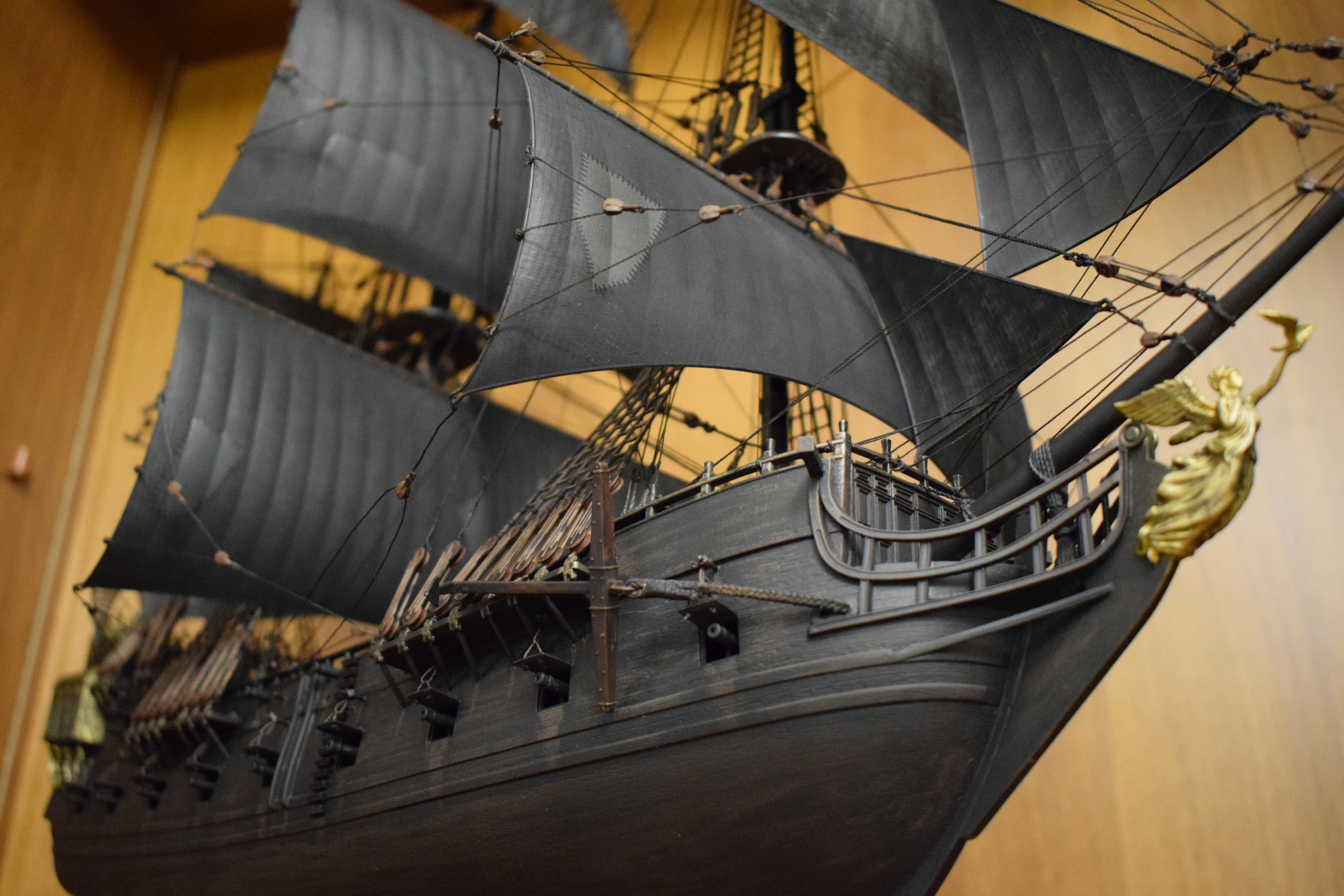 И, напоследок. Модель в целом очень приятная, собиралась без особенных трудностей и извращений. Особенно порадовали паруса. Отлиты качественно, и не было ни малейшего желания ставить вместо них тканевые.