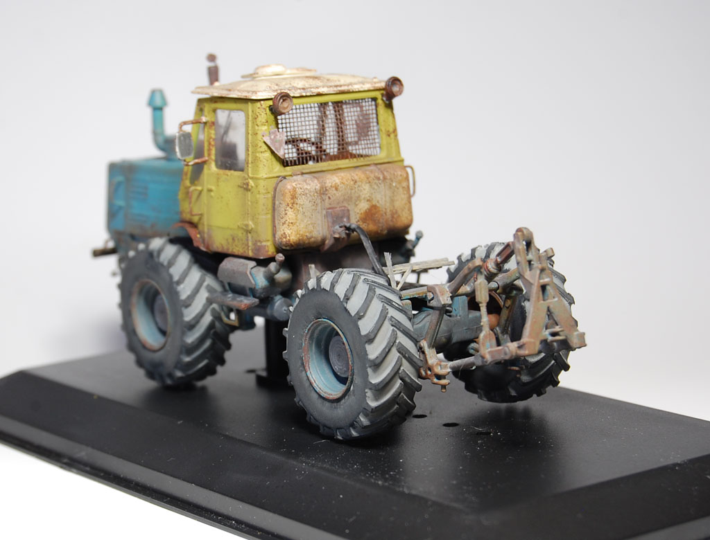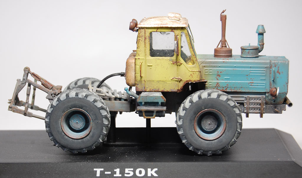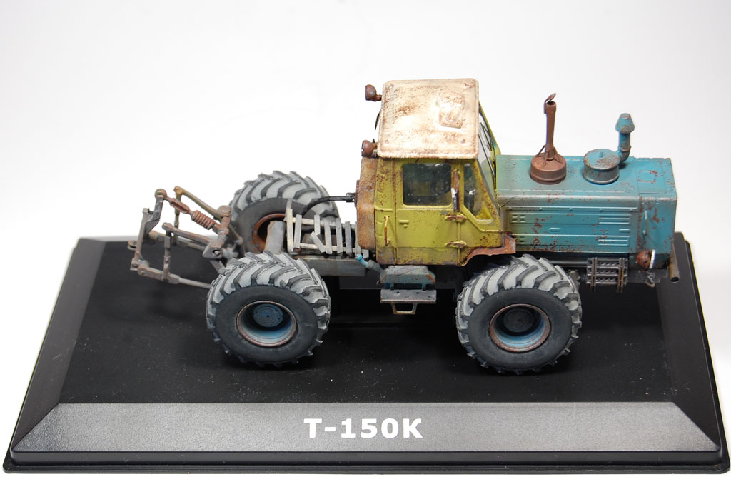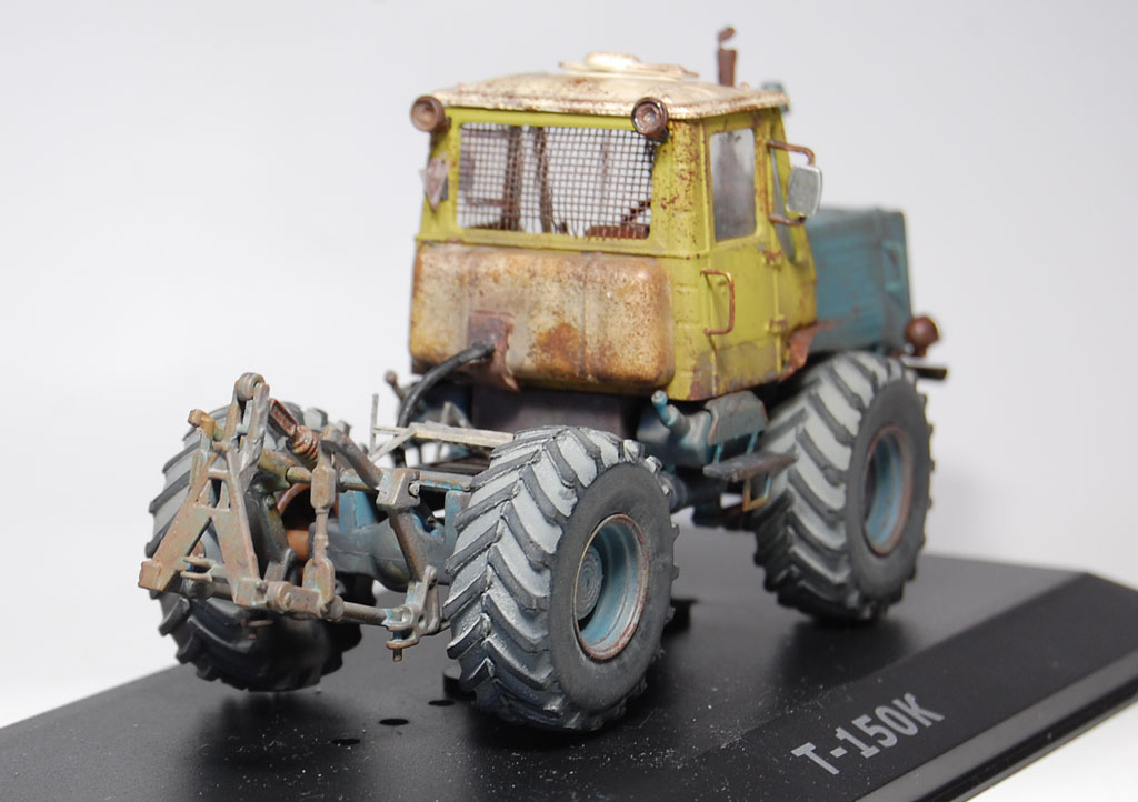 Здравия всем!Закончил и сфотографировал трактор!)Т-150,Ашет,1/43.Из доработок:крылья-фольга,шланг-от наушников,балка спереди-ушная палочка и какой то пластик)